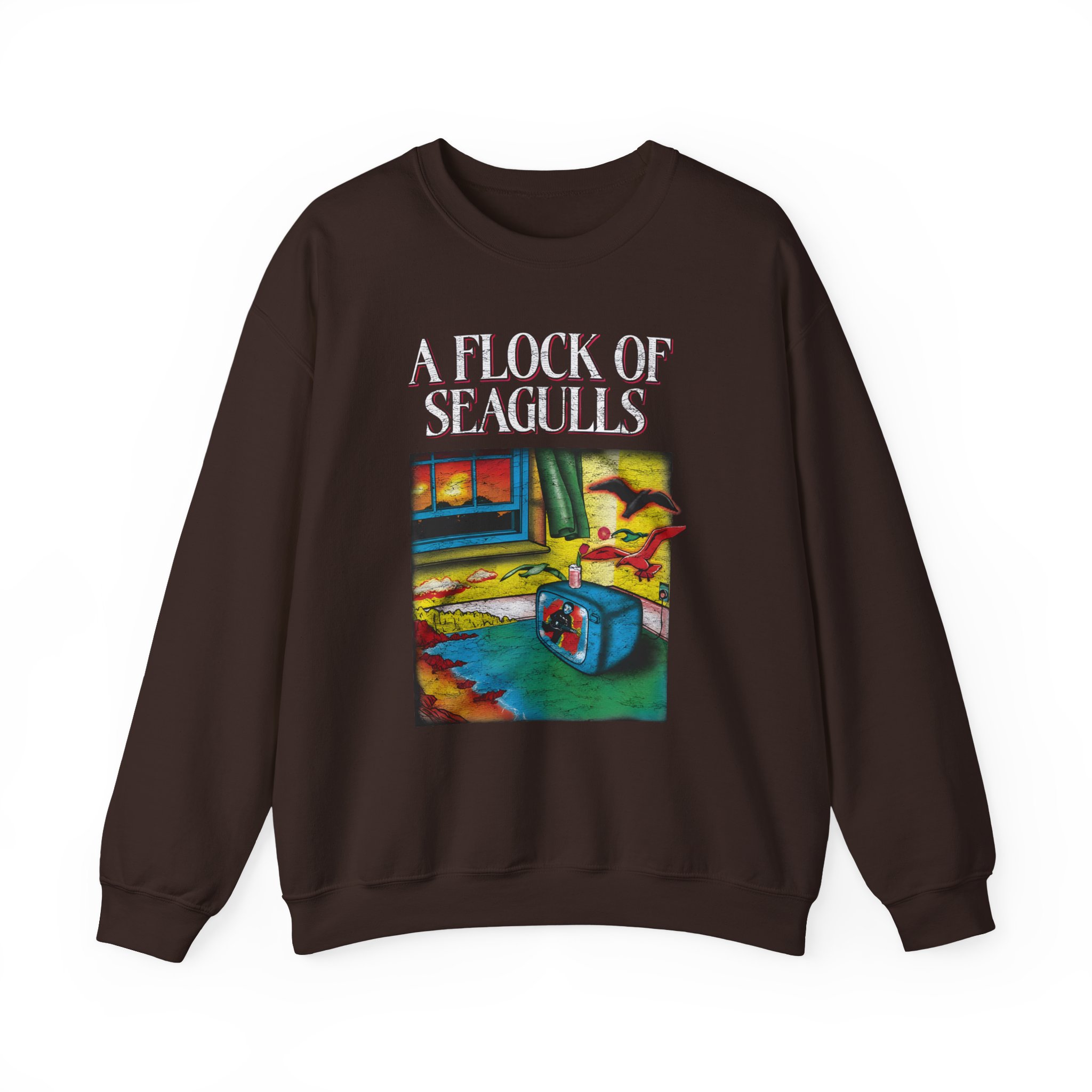 The Gildan 18000 sweatshirt is A Flock of Seagulls I Ran Tour unisex heavy blend crewneck made from a 50/50 cotton-polyester fabric, combining softness with lasting durability. Its smooth surface supports crisp, vibrant prints and embroidery, while the ribbed-knit collar and reinforced cuffs help it keep its shape over time. A seamless body design reduces irritation and adds to overall comfort. Practical, sturdy, and print-friendly, the Gildan 18000 sweatshirt remains a top choice for custom apparel.