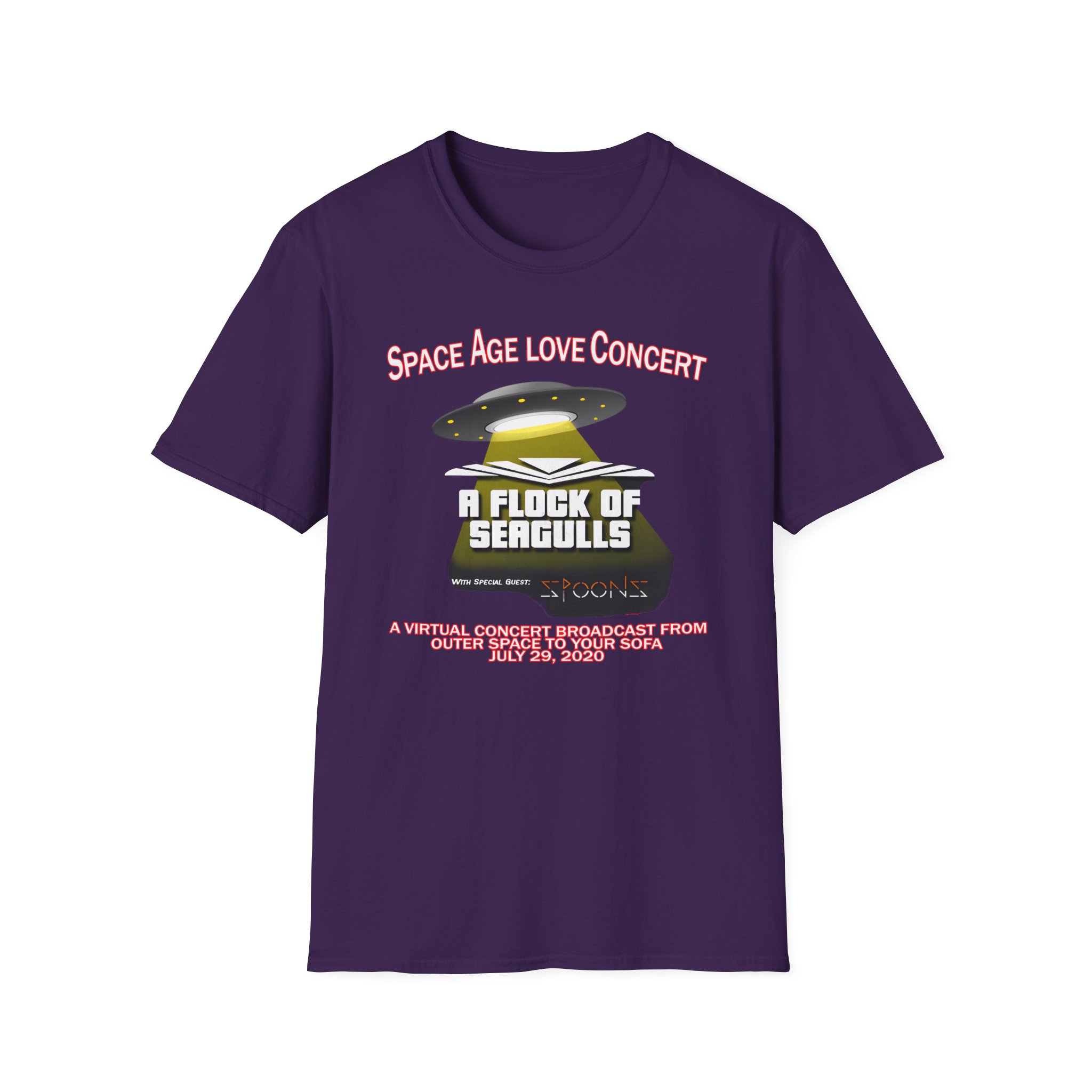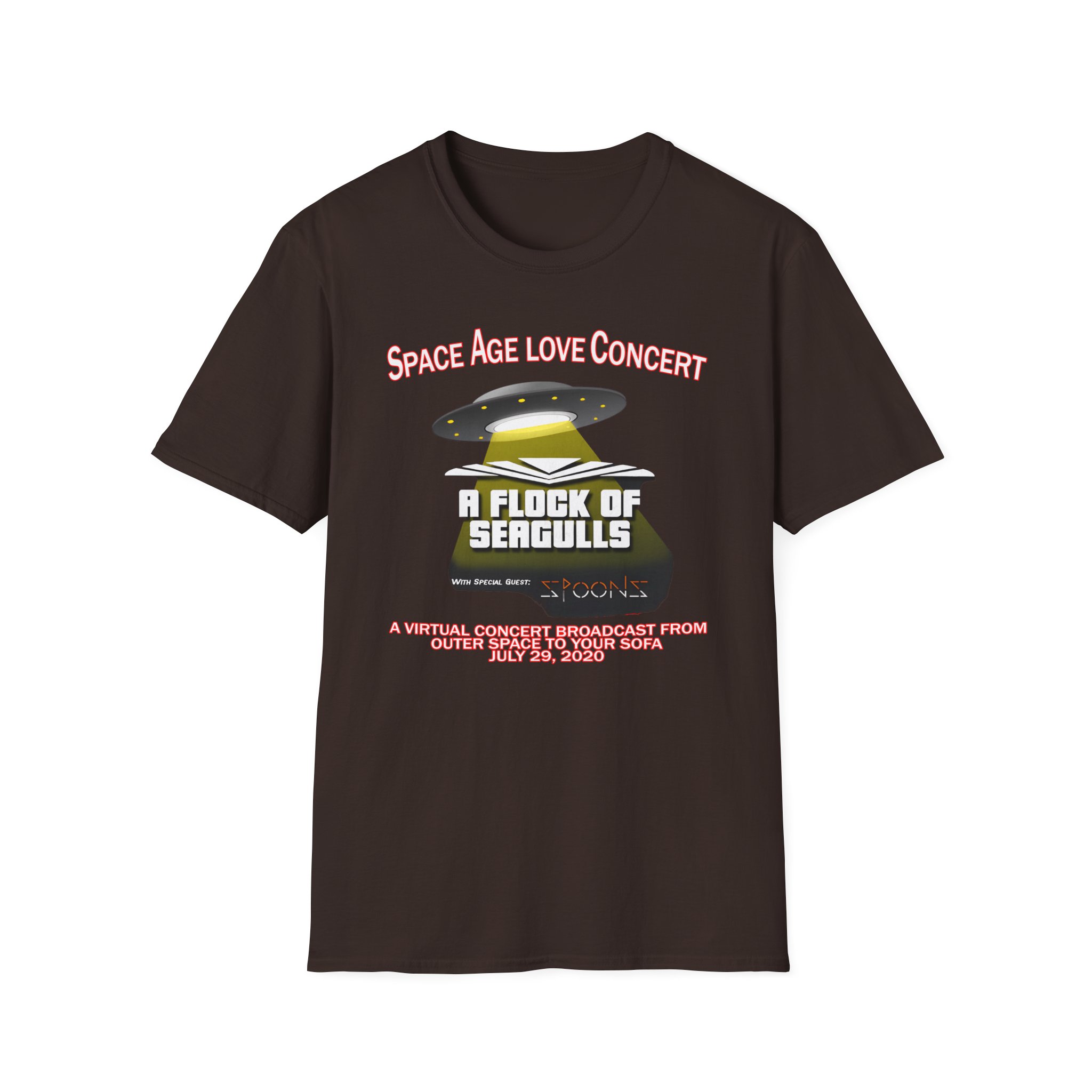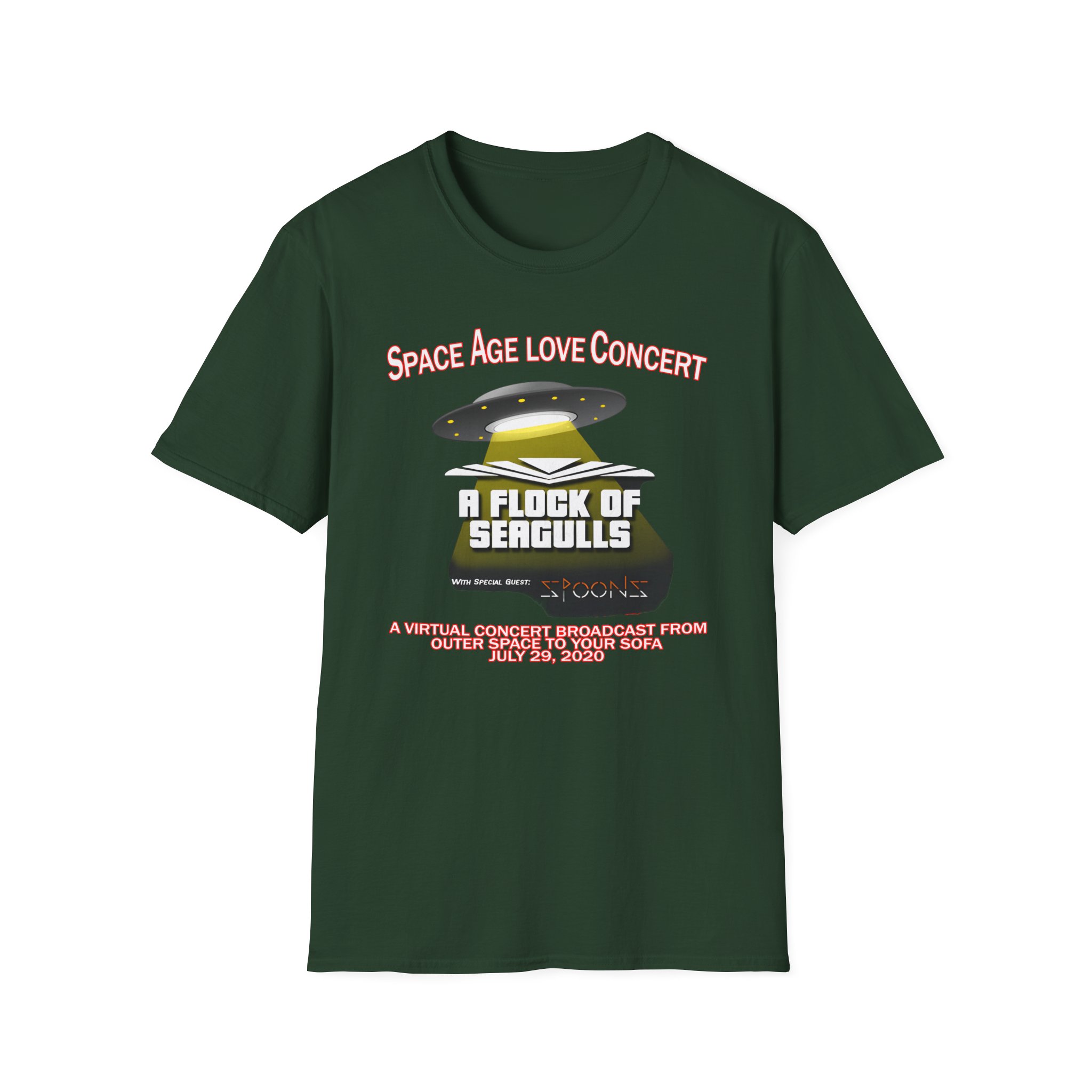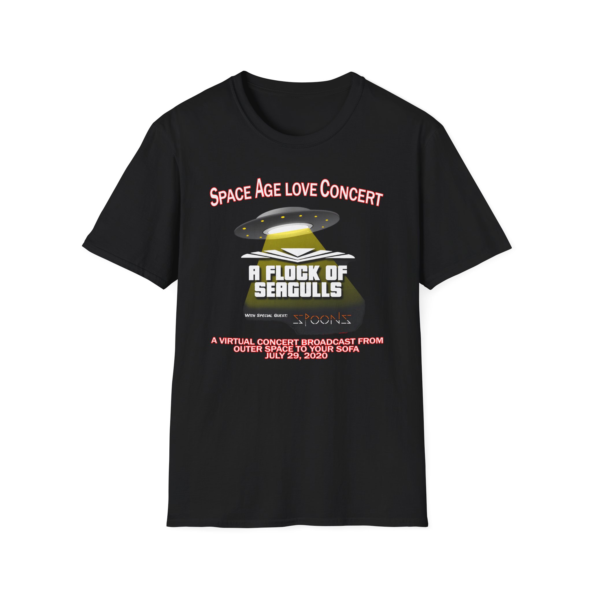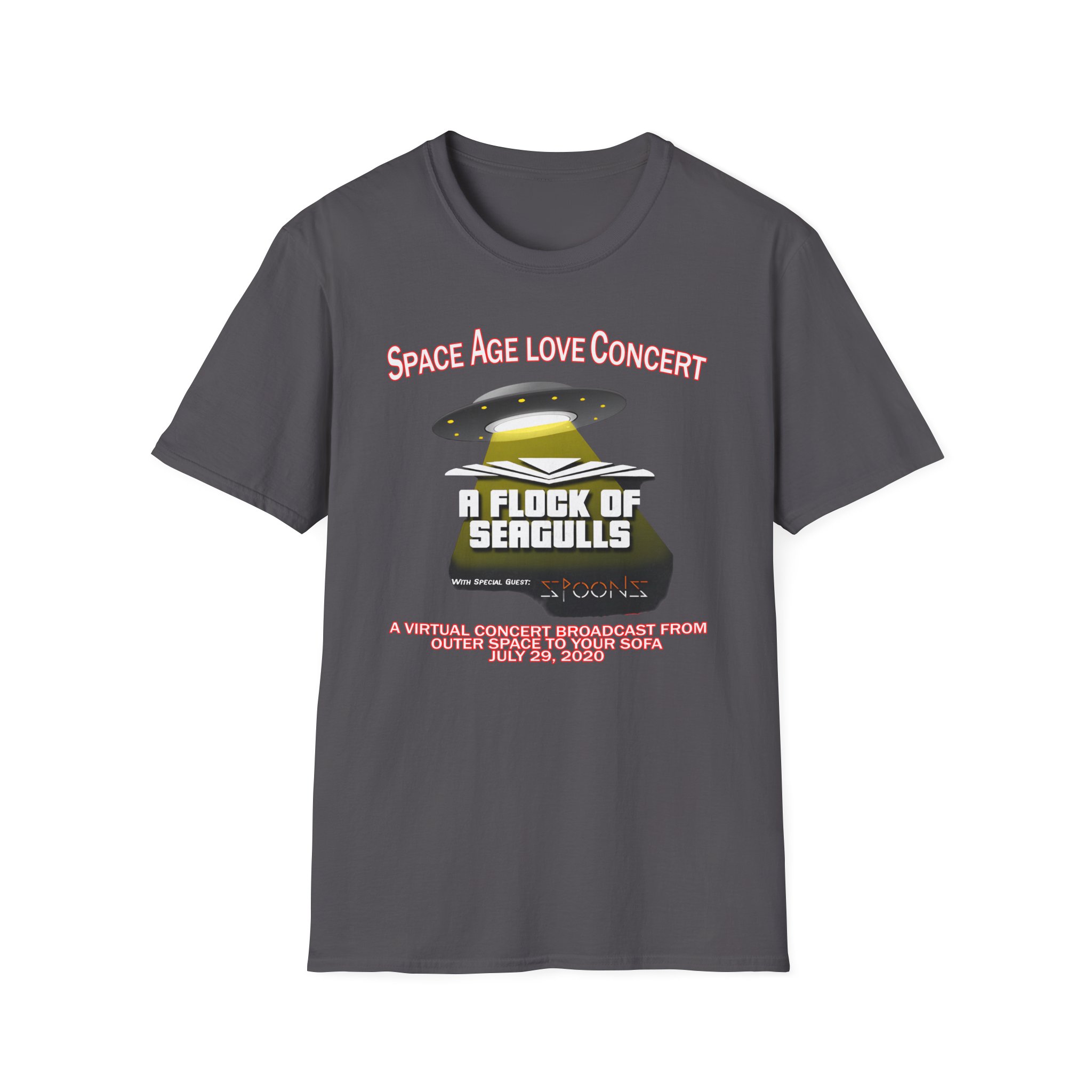 This lightweight, classic-fit tee carries a vintage tour-shirt look with hand-lettered script reading “A Flock of Seagulls Space Age Love Concert” Soft ring-spun cotton and smooth printing make the graphic sit cleanly on the chest. Wear it to backyard shows, late-night drives, or when you want to bring a bit of road-worn Americana to a simple outfit. The crew neckline and tubular knit keep the silhouette neat, while shoulder tape and a ribbed collar hold the shape after many washes. It’s breathable, low-profile, and made to age with you—subtle black flecks appear on the Natural color for a lived-in feel.