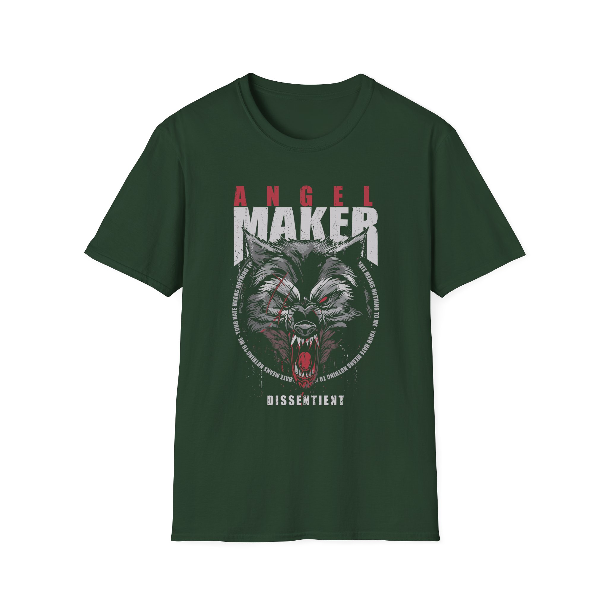 This lightweight, classic-fit tee carries a vintage tour-shirt look with hand-lettered script reading “Angelmaker Battle Wolf” Soft ring-spun cotton and smooth printing make the graphic sit cleanly on the chest. Wear it to backyard shows, late-night drives, or when you want to bring a bit of road-worn Americana to a simple outfit. The crew neckline and tubular knit keep the silhouette neat, while shoulder tape and a ribbed collar hold the shape after many washes. It’s breathable, low-profile, and made to age with you—subtle black flecks appear on the Natural color for a lived-in feel.