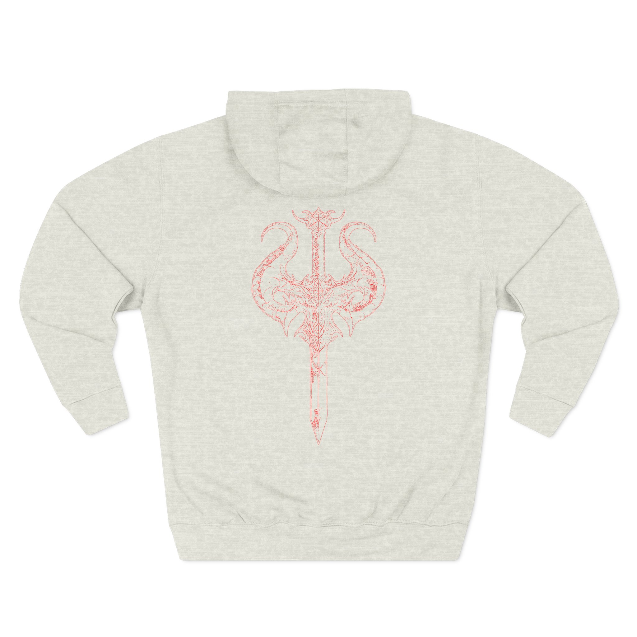 This Angelmaker Death Knight charcoal fleece hoodie settles into your rotation like an old friend — soft, weighty, and quietly bold. The three-panel hood and adjustable drawcord frame your face on blustery mornings. A roomy kangaroo pocket keeps hands warm and holds what you need for a quick walk or a late-night errand. The front artwork sits low and distressed, giving the piece a lived-in, slightly rebellious vibe that works whether you’re heading to a gig, a practice, or a coffee run. Built with sturdy double-needle seams and a soft 3-end fleece interior, it wears well over years of wear and washes while keeping its shape.