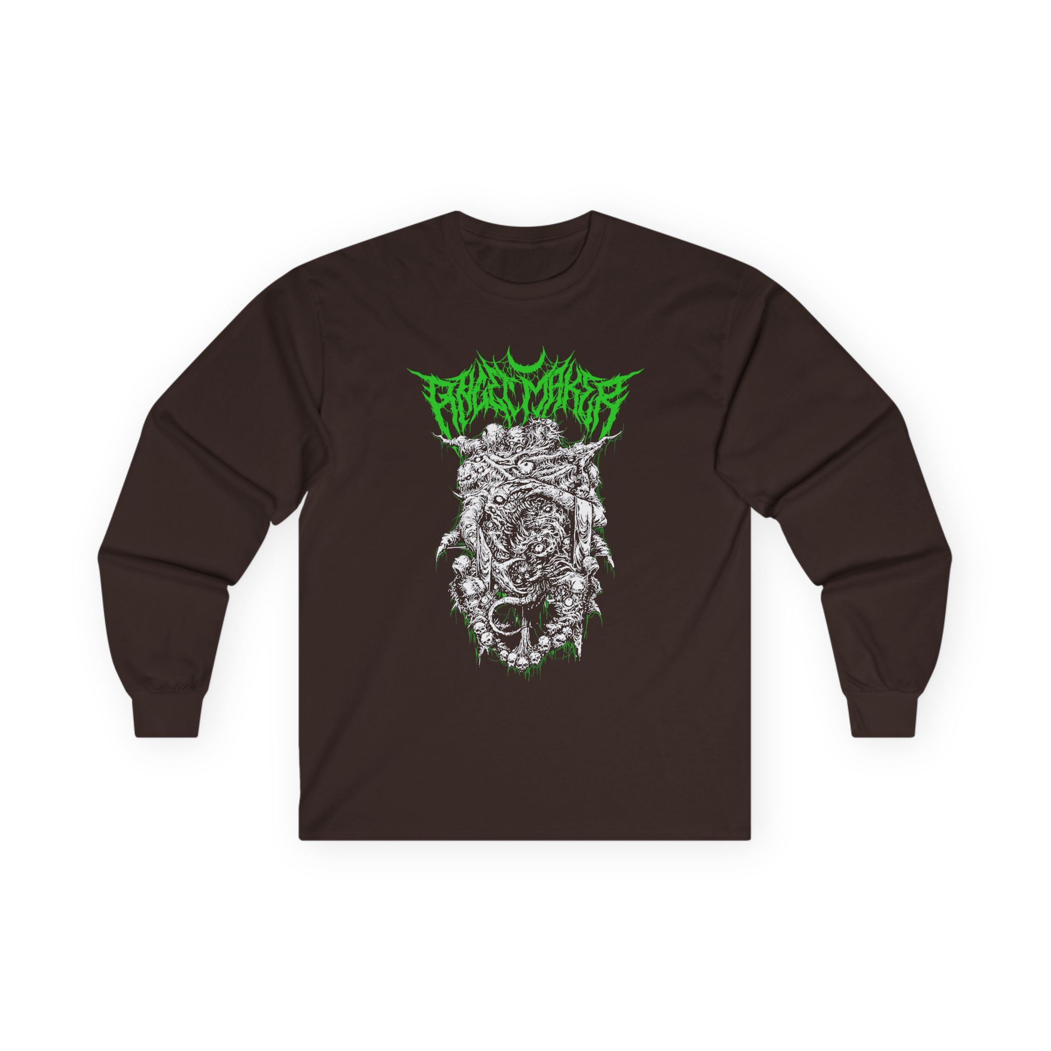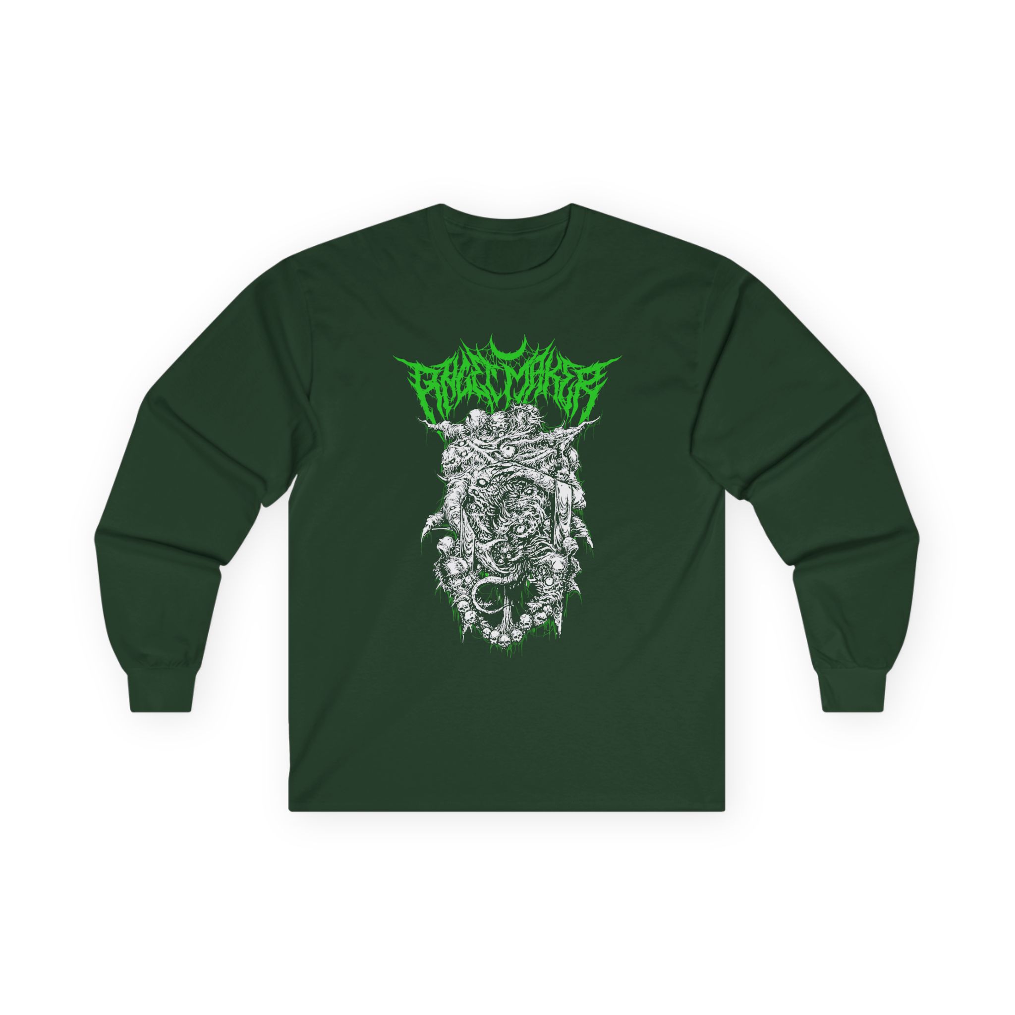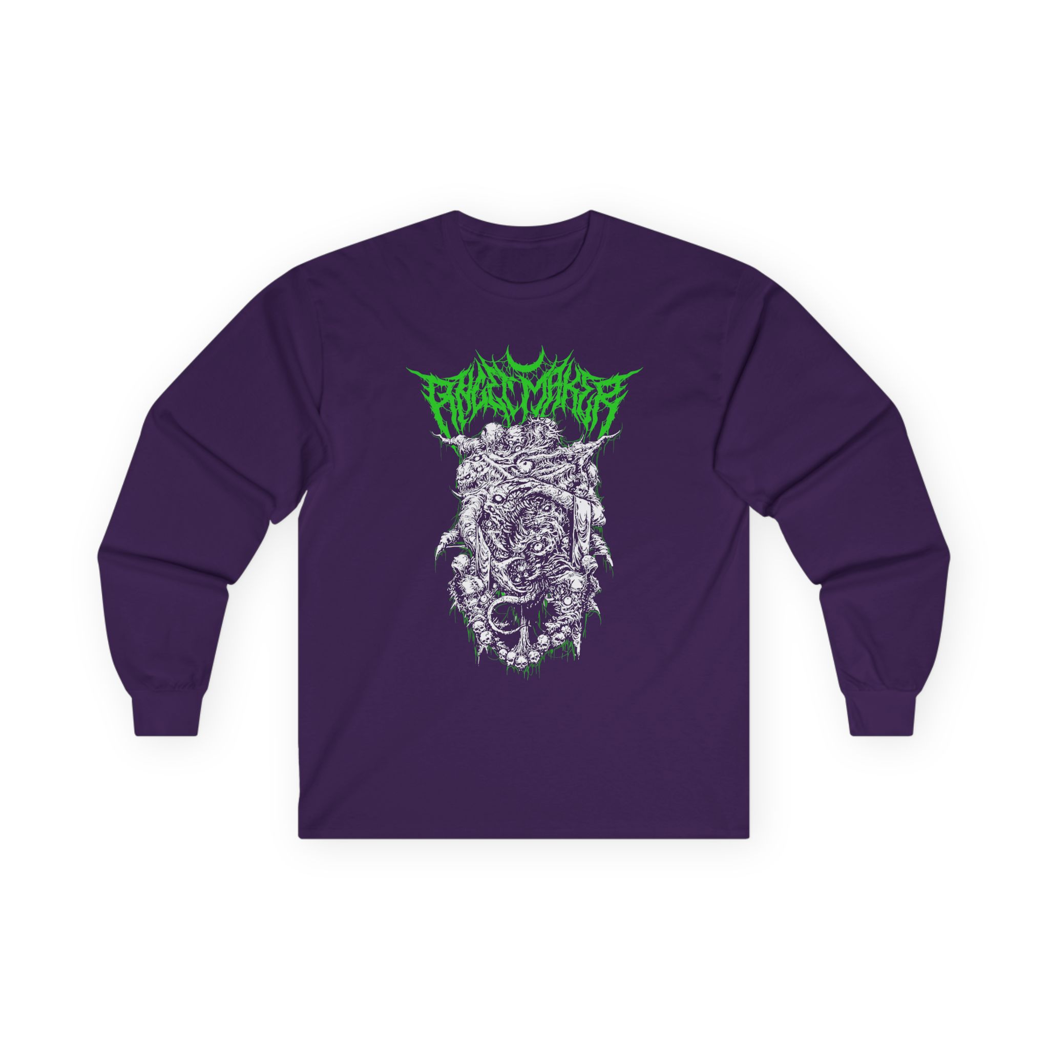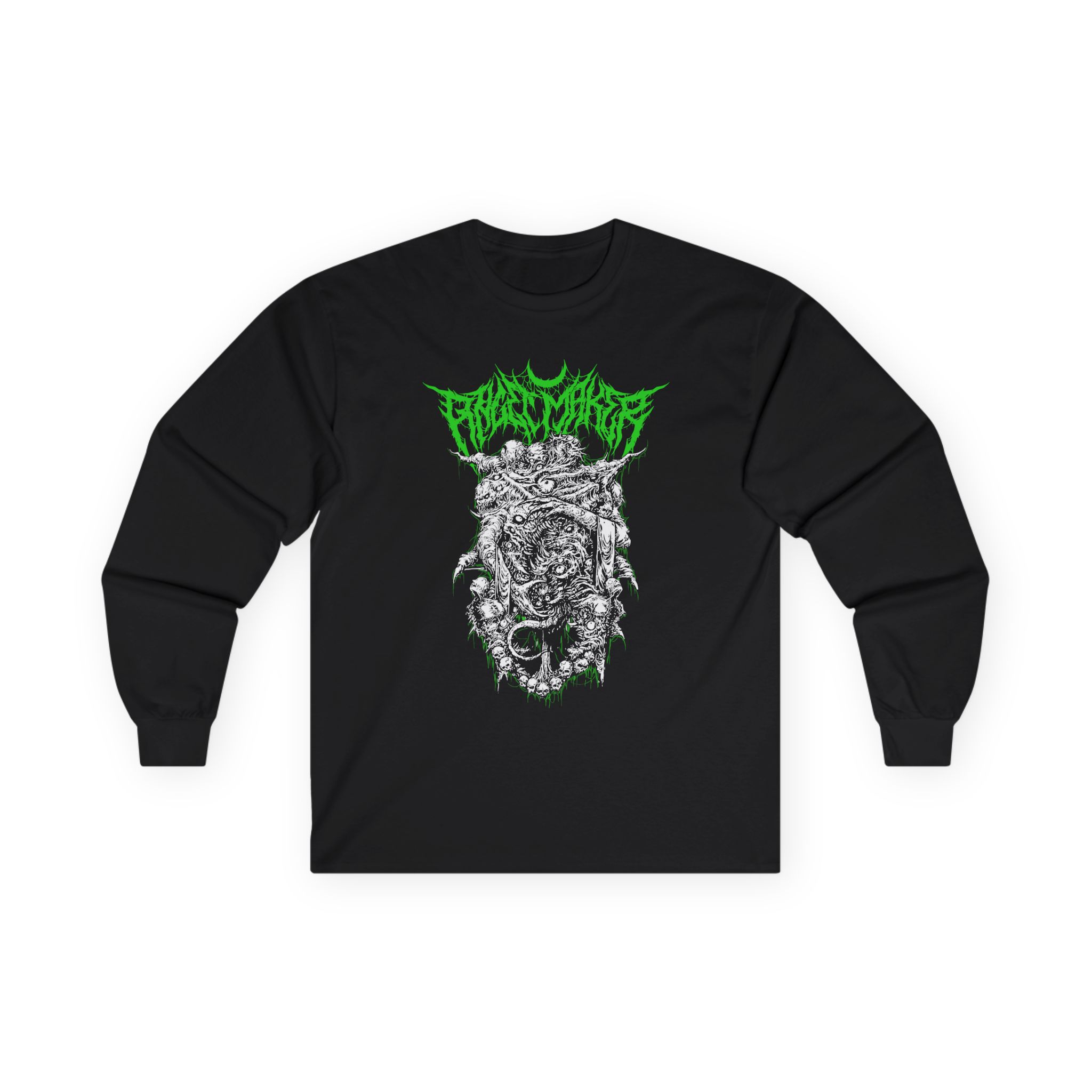 This Angelmaker Slam long-sleeve tee brings vintage concert vibes to everyday wear. Soft yet substantial cotton and a classic, slightly boxy fit create a lived-in feel that layers well under jackets or stands alone. The front art—bold mirrored sunglasses, a painted blue nose and red lips—feels like a snapshot from an ’80s tour poster. Wear it to record-store hangs, low-key gigs, or when you want a guarded nod to music history without shouting. It’s the kind of shirt that feels like it already remembers a hundred nights out.