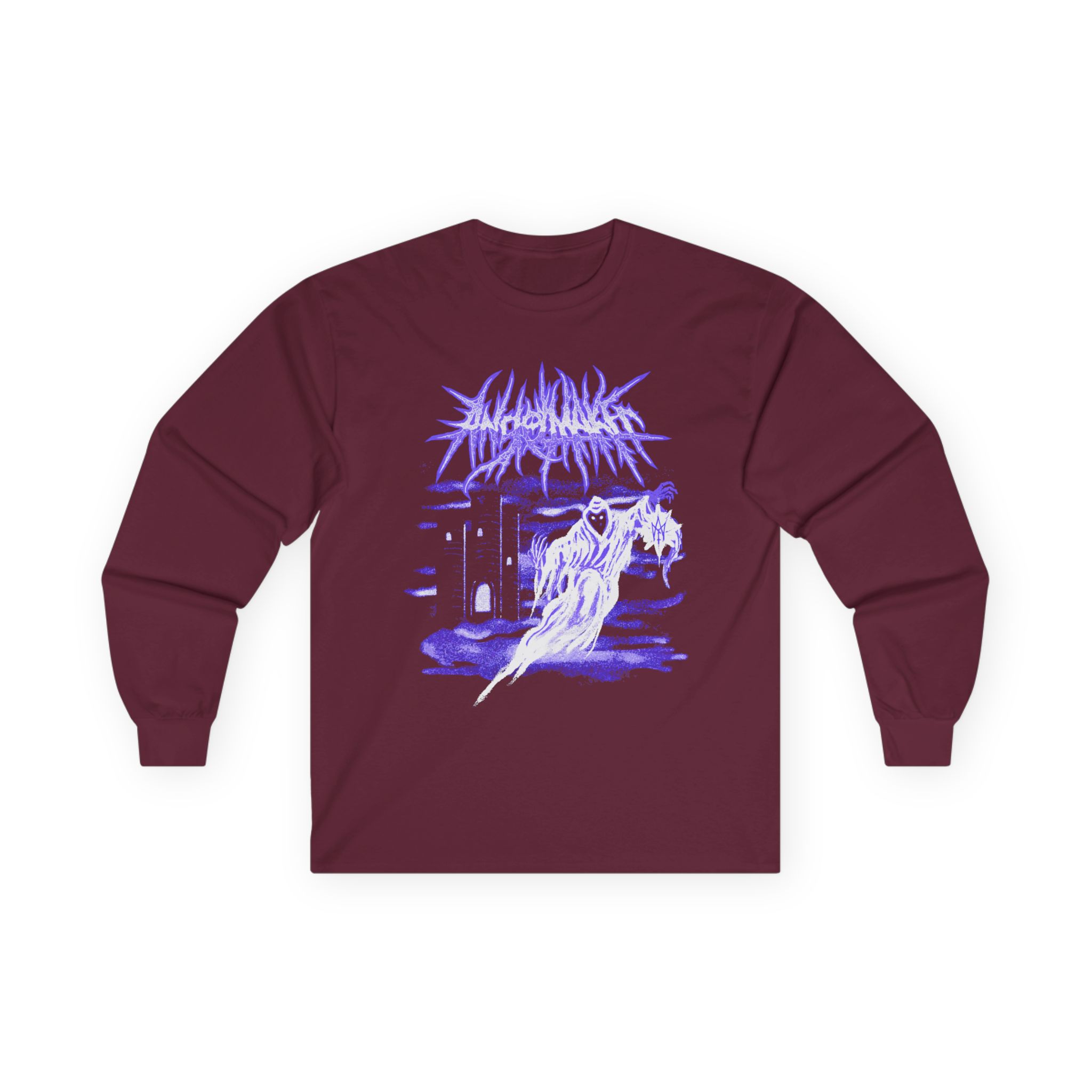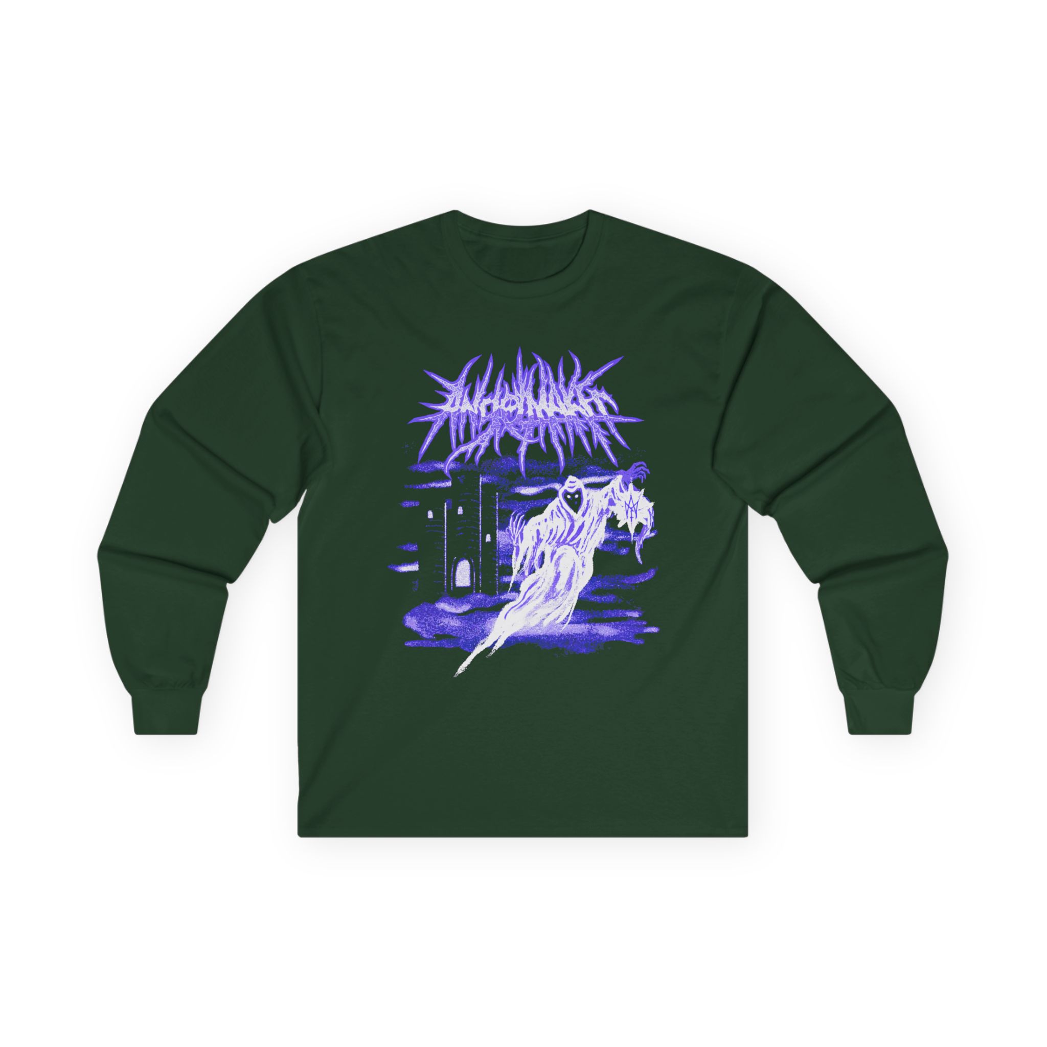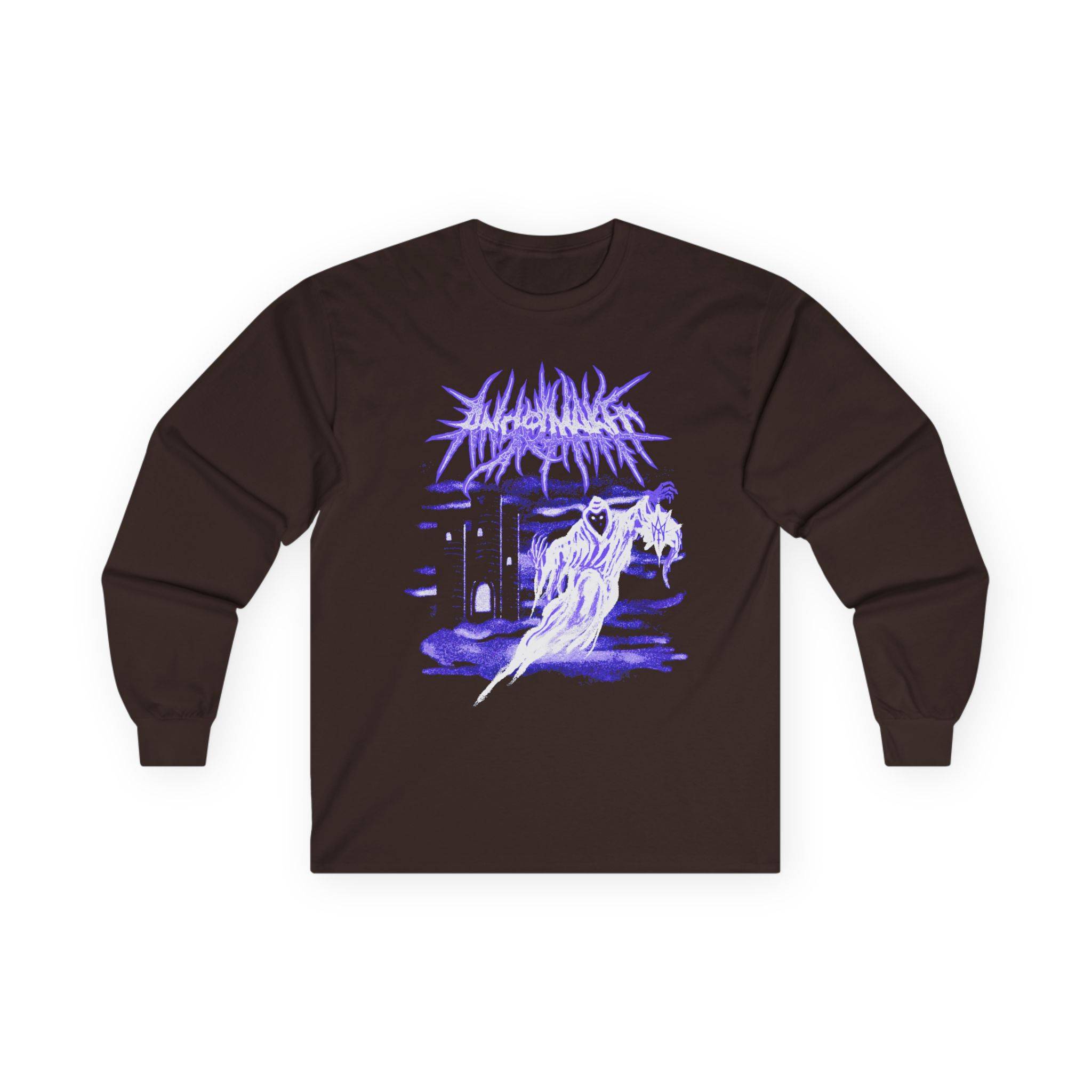 This Angelmaker Spooky long-sleeve tee brings vintage concert vibes to everyday wear. Soft yet substantial cotton and a classic, slightly boxy fit create a lived-in feel that layers well under jackets or stands alone. The front art—bold mirrored sunglasses, a painted blue nose and red lips—feels like a snapshot from an ’80s tour poster. Wear it to record-store hangs, low-key gigs, or when you want a guarded nod to music history without shouting. It’s the kind of shirt that feels like it already remembers a hundred nights out.