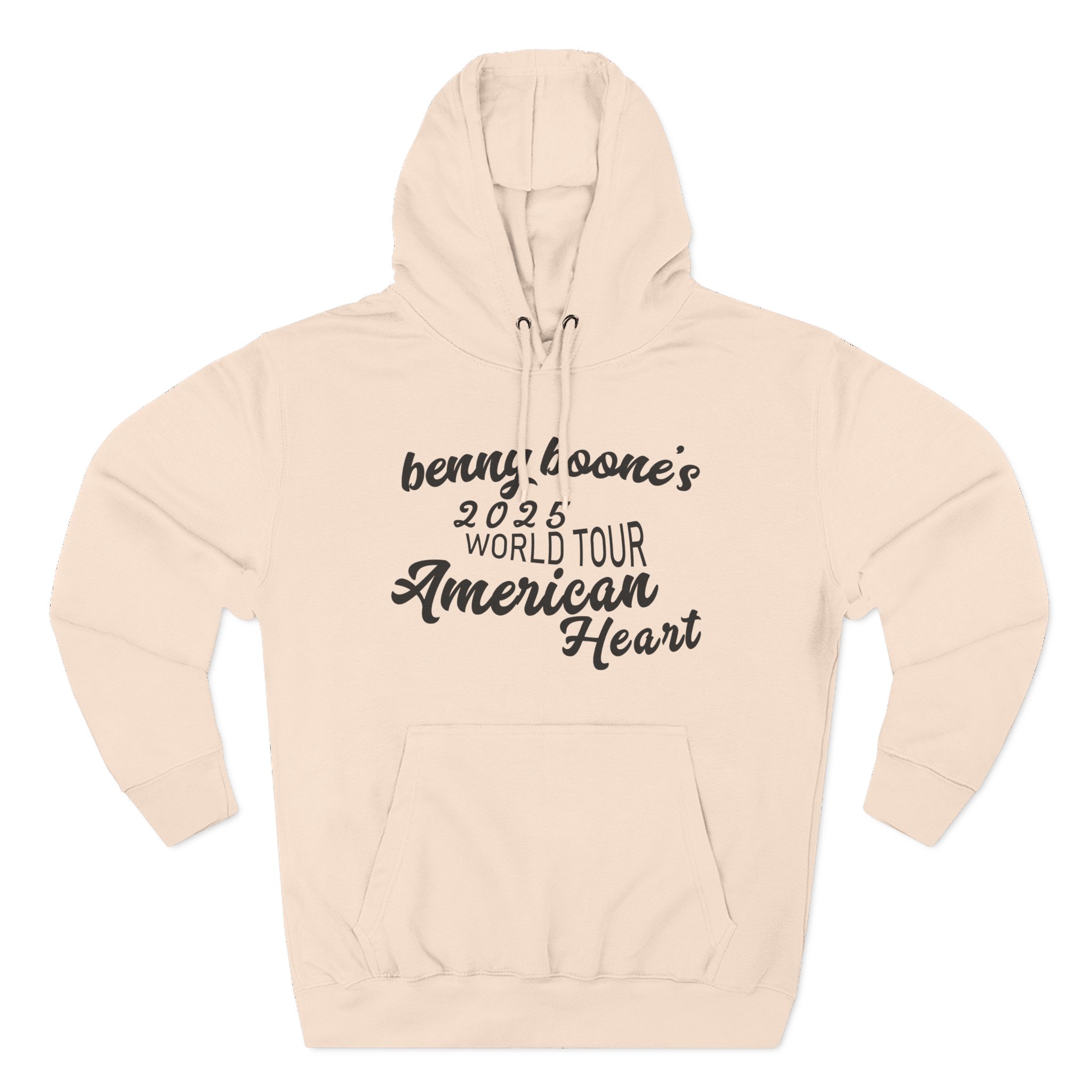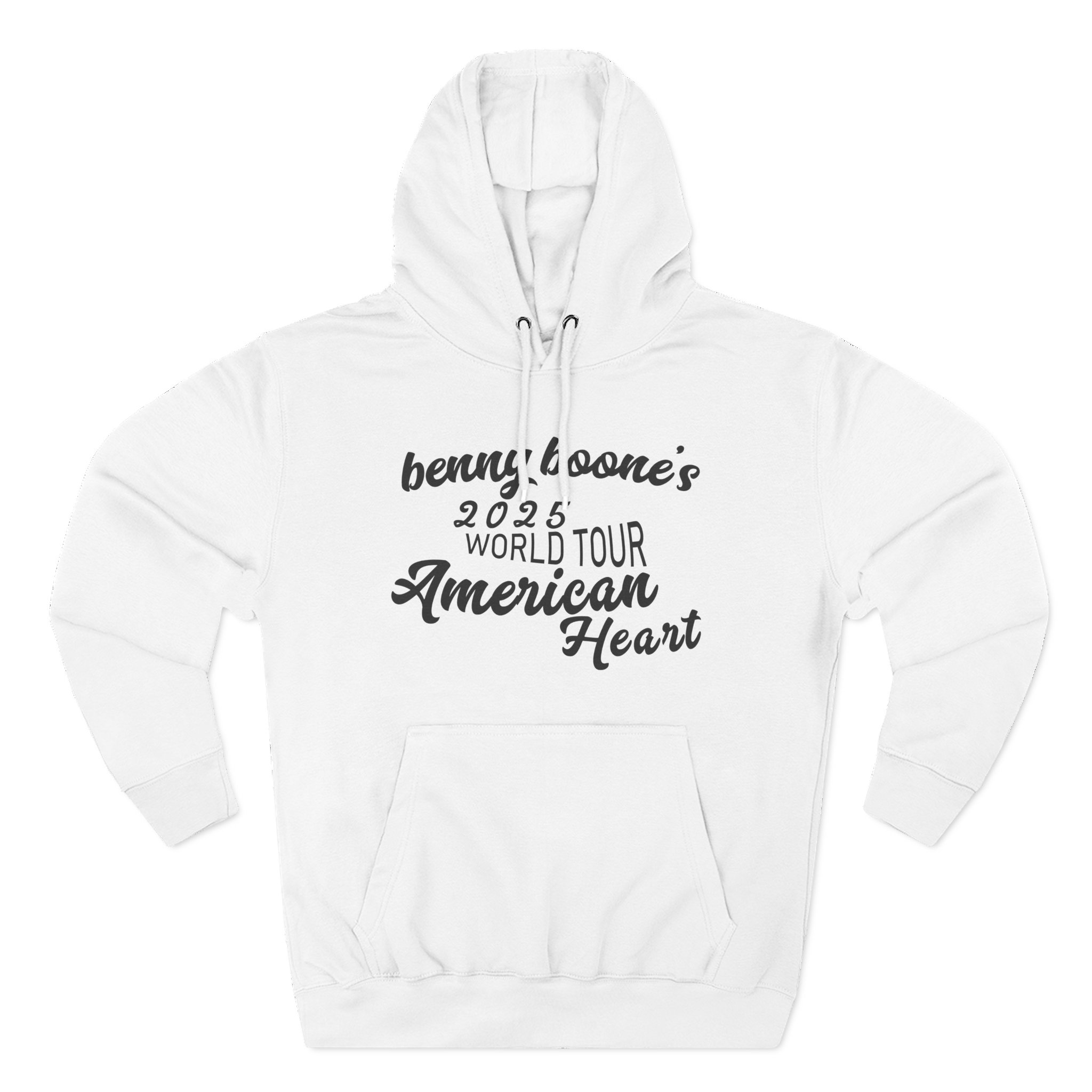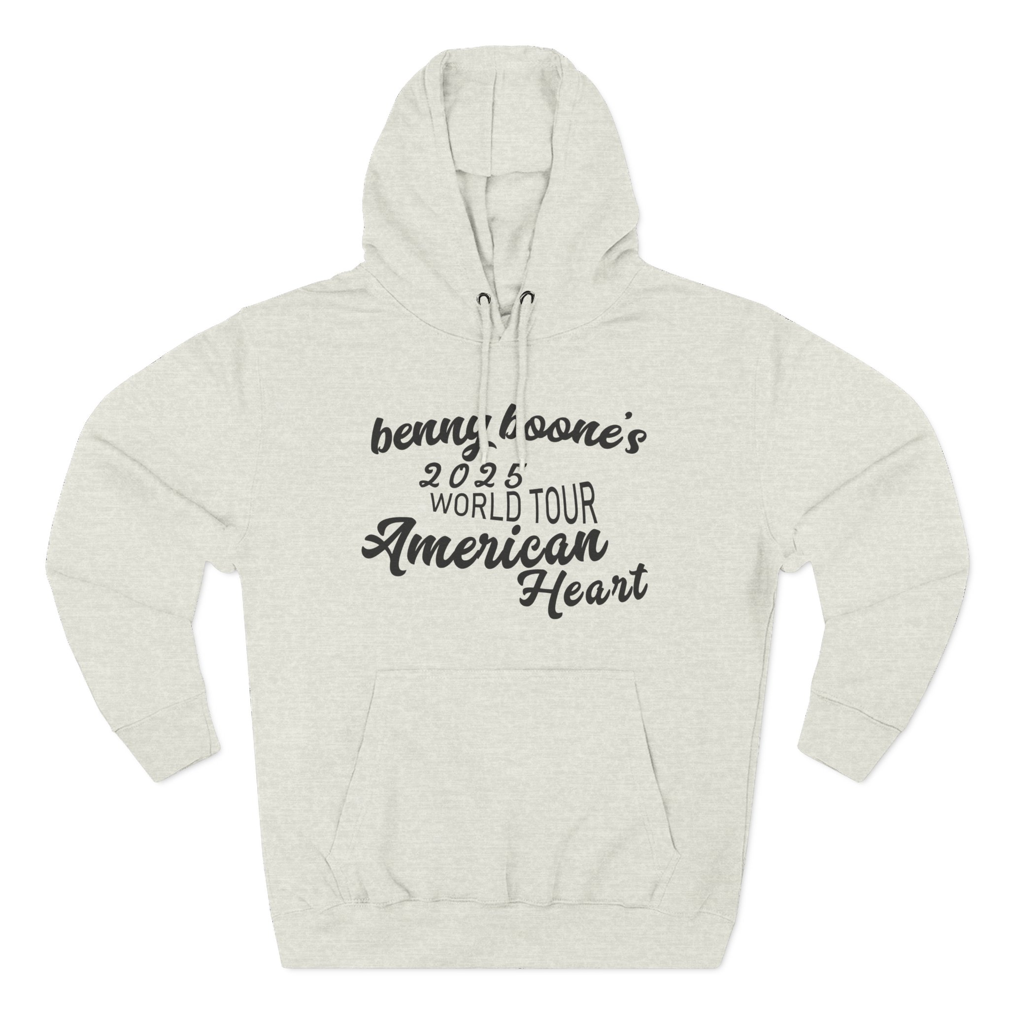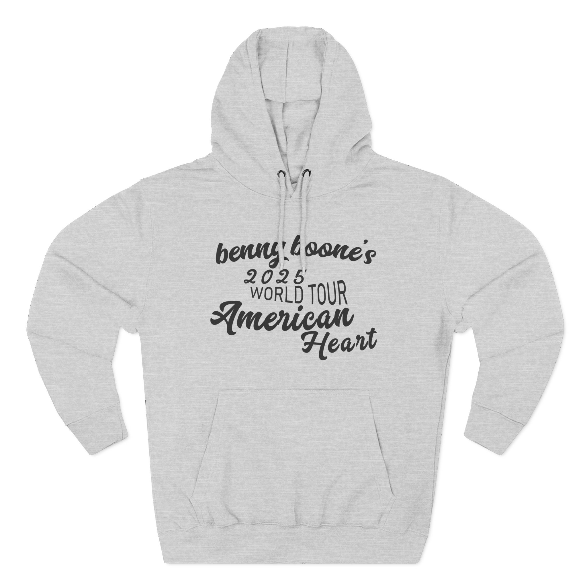 This Benson Boone American Heart charcoal fleece hoodie settles into your rotation like an old friend — soft, weighty, and quietly bold. The three-panel hood and adjustable drawcord frame your face on blustery mornings. A roomy kangaroo pocket keeps hands warm and holds what you need for a quick walk or a late-night errand. The front artwork sits low and distressed, giving the piece a lived-in, slightly rebellious vibe that works whether you’re heading to a gig, a practice, or a coffee run. Built with sturdy double-needle seams and a soft 3-end fleece interior, it wears well over years of wear and washes while keeping its shape.