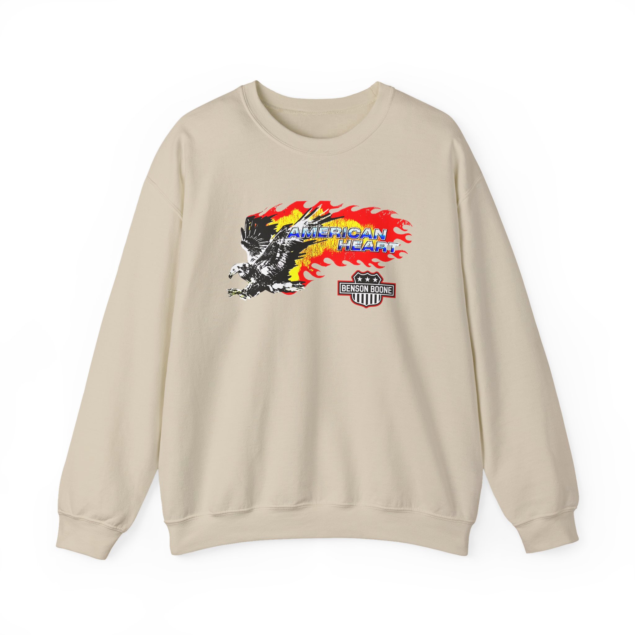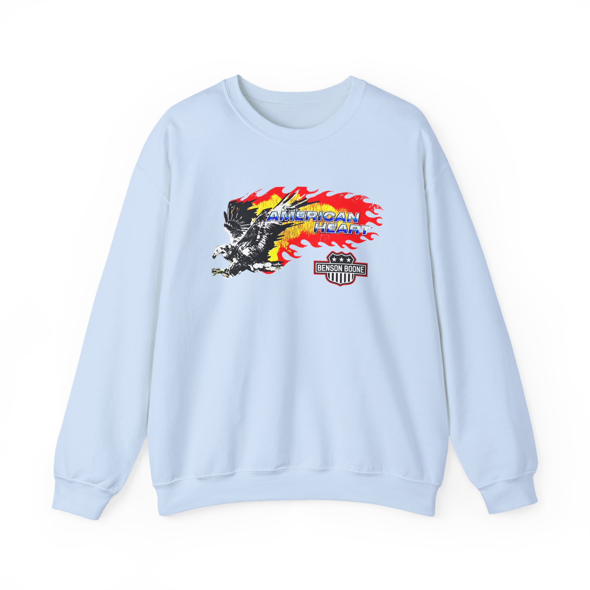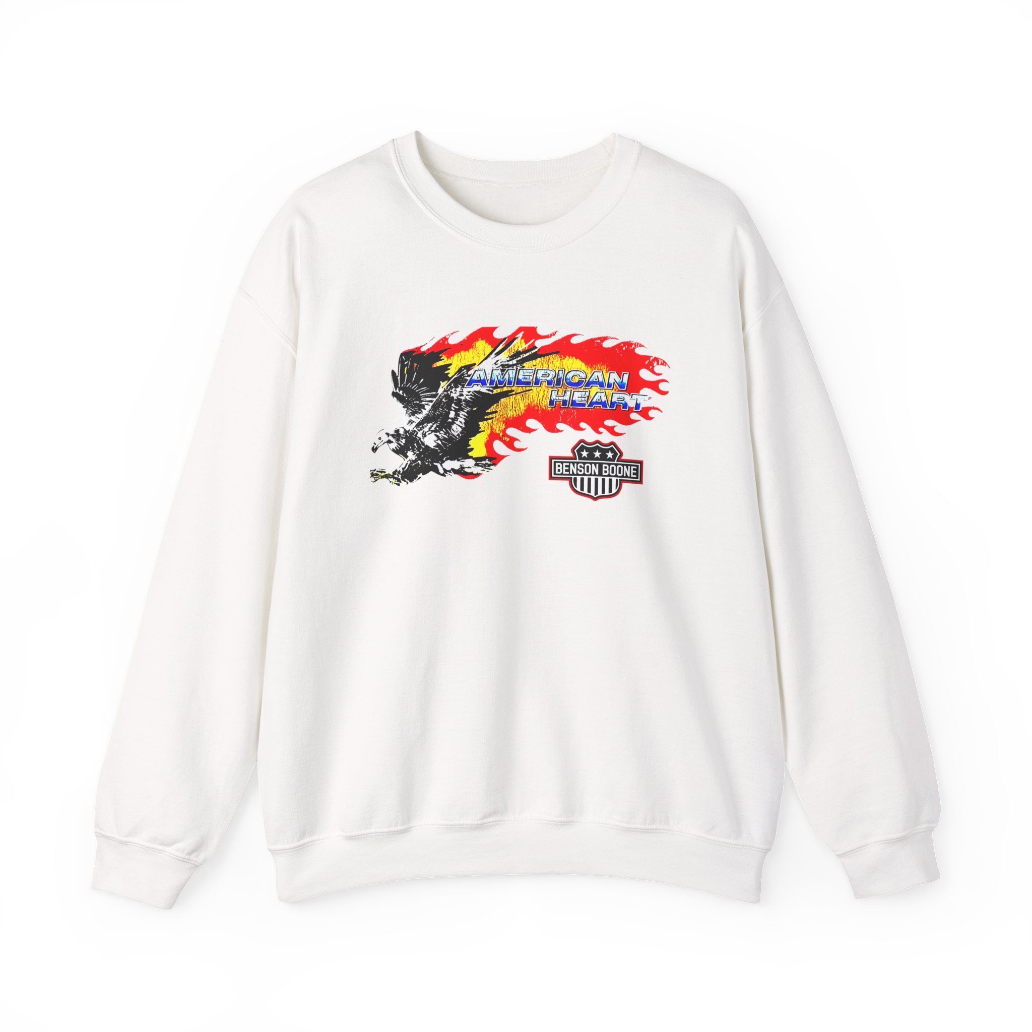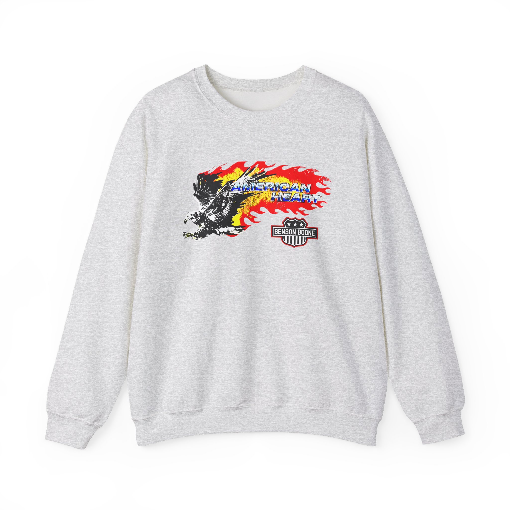 The Gildan 18000 sweatshirt is a Benson Boone American Heart unisex heavy blend crewneck made from a 50/50 cotton-polyester fabric, combining softness with lasting durability. Its smooth surface supports crisp, vibrant prints and embroidery, while the ribbed-knit collar and reinforced cuffs help it keep its shape over time. A seamless body design reduces irritation and adds to overall comfort. Practical, sturdy, and print-friendly, the Gildan 18000 sweatshirt remains a top choice for custom apparel.