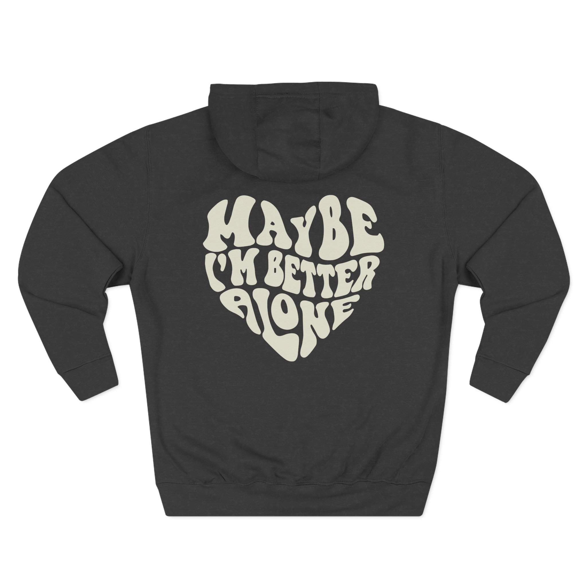 This Benson Boone Maybe I Am Better Alone charcoal fleece hoodie settles into your rotation like an old friend — soft, weighty, and quietly bold. The three-panel hood and adjustable drawcord frame your face on blustery mornings. A roomy kangaroo pocket keeps hands warm and holds what you need for a quick walk or a late-night errand. The front artwork sits low and distressed, giving the piece a lived-in, slightly rebellious vibe that works whether you’re heading to a gig, a practice, or a coffee run. Built with sturdy double-needle seams and a soft 3-end fleece interior, it wears well over years of wear and washes while keeping its shape.