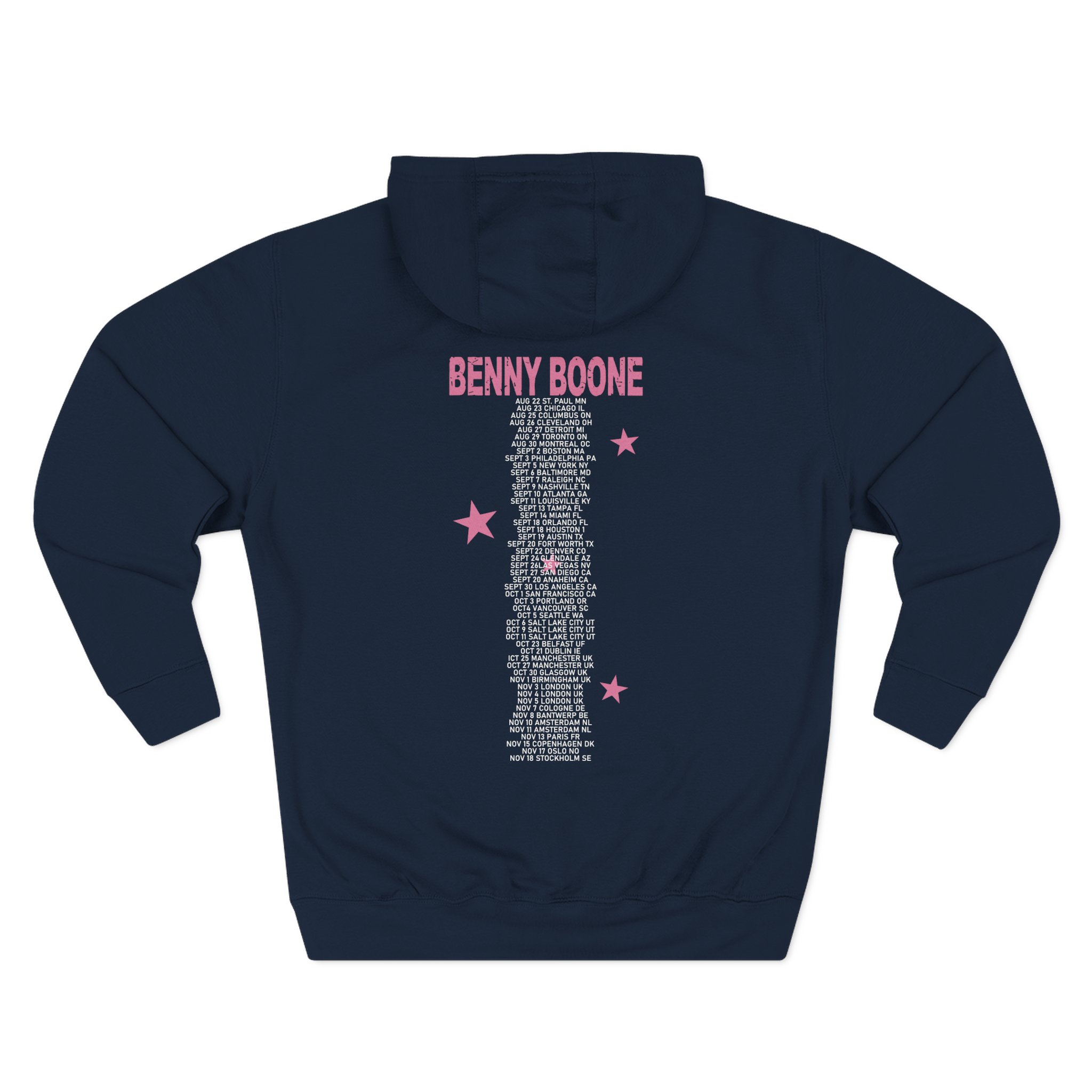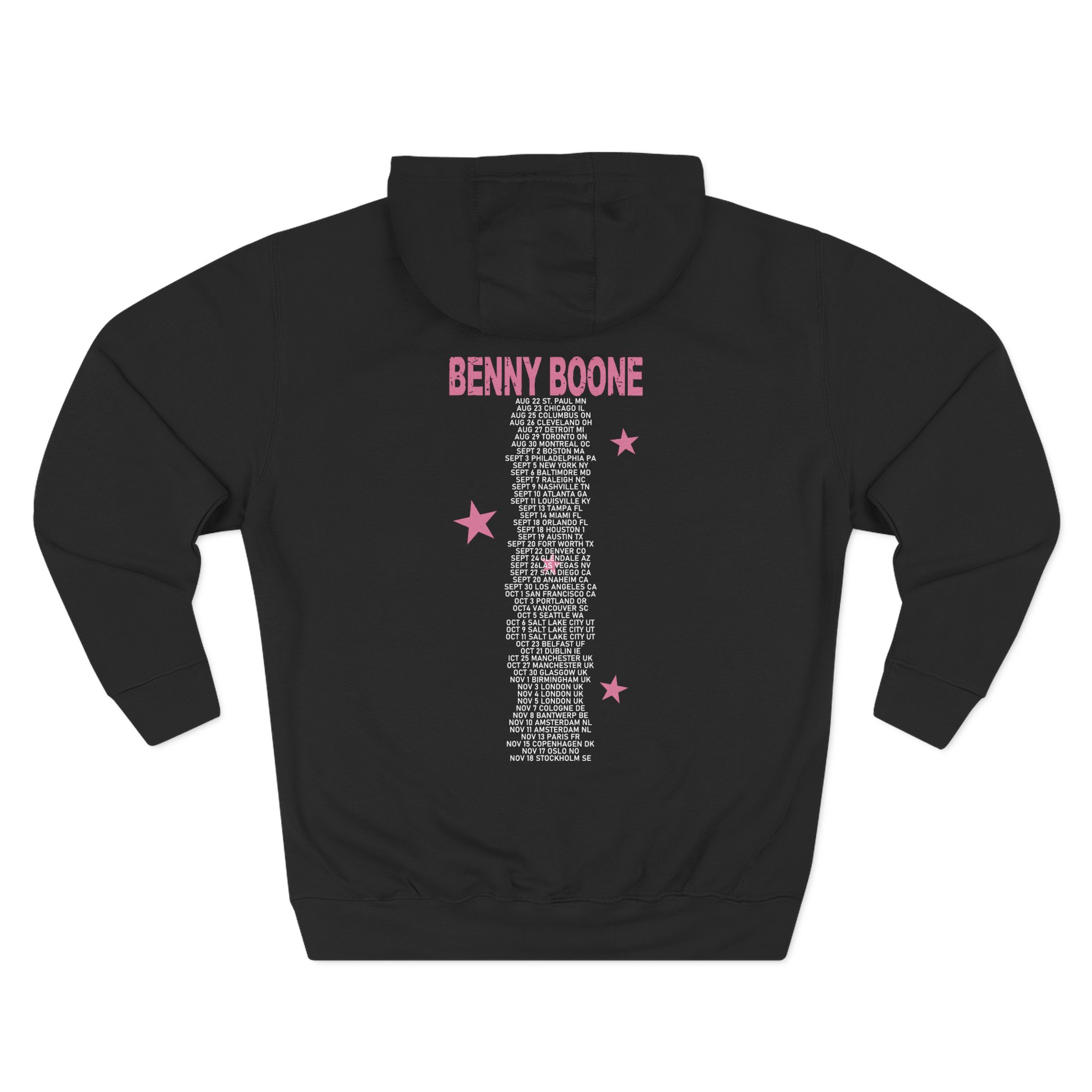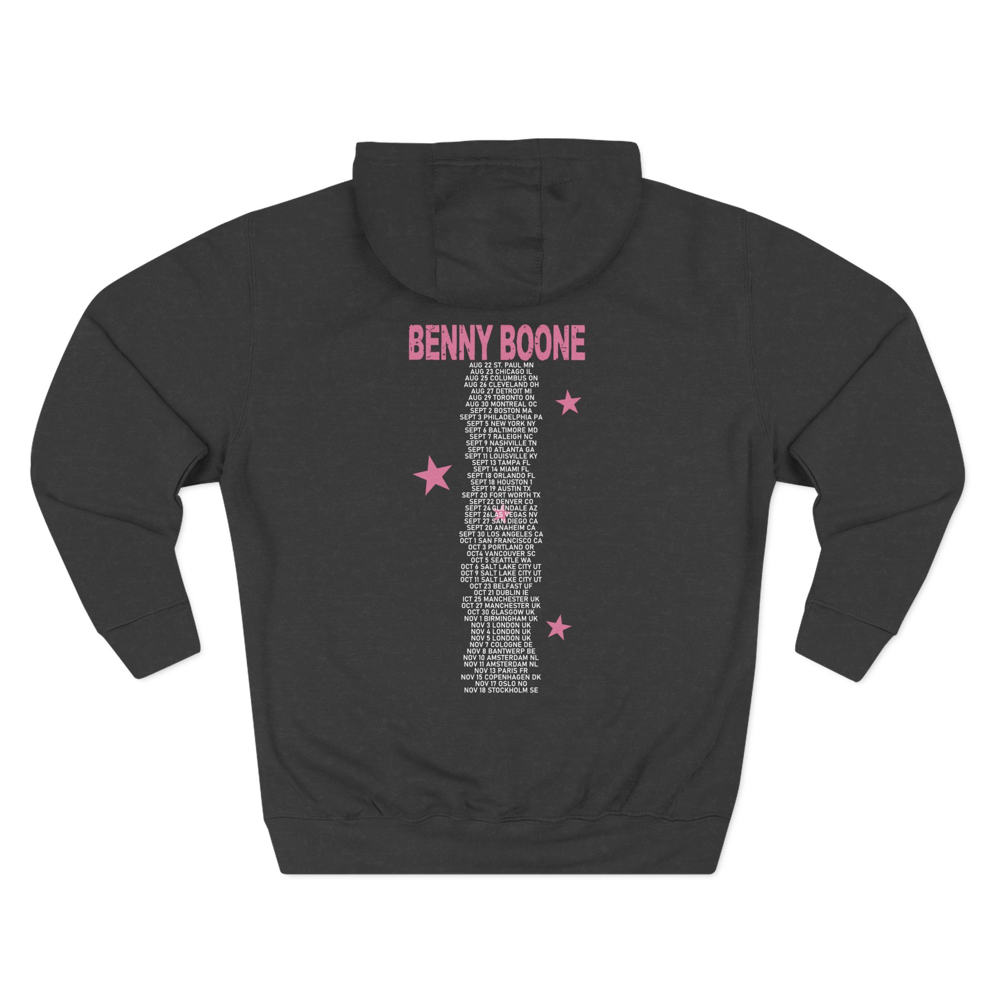 This Benson Boone Portrait charcoal fleece hoodie settles into your rotation like an old friend — soft, weighty, and quietly bold. The three-panel hood and adjustable drawcord frame your face on blustery mornings. A roomy kangaroo pocket keeps hands warm and holds what you need for a quick walk or a late-night errand. The front artwork sits low and distressed, giving the piece a lived-in, slightly rebellious vibe that works whether you’re heading to a gig, a practice, or a coffee run. Built with sturdy double-needle seams and a soft 3-end fleece interior, it wears well over years of wear and washes while keeping its shape.