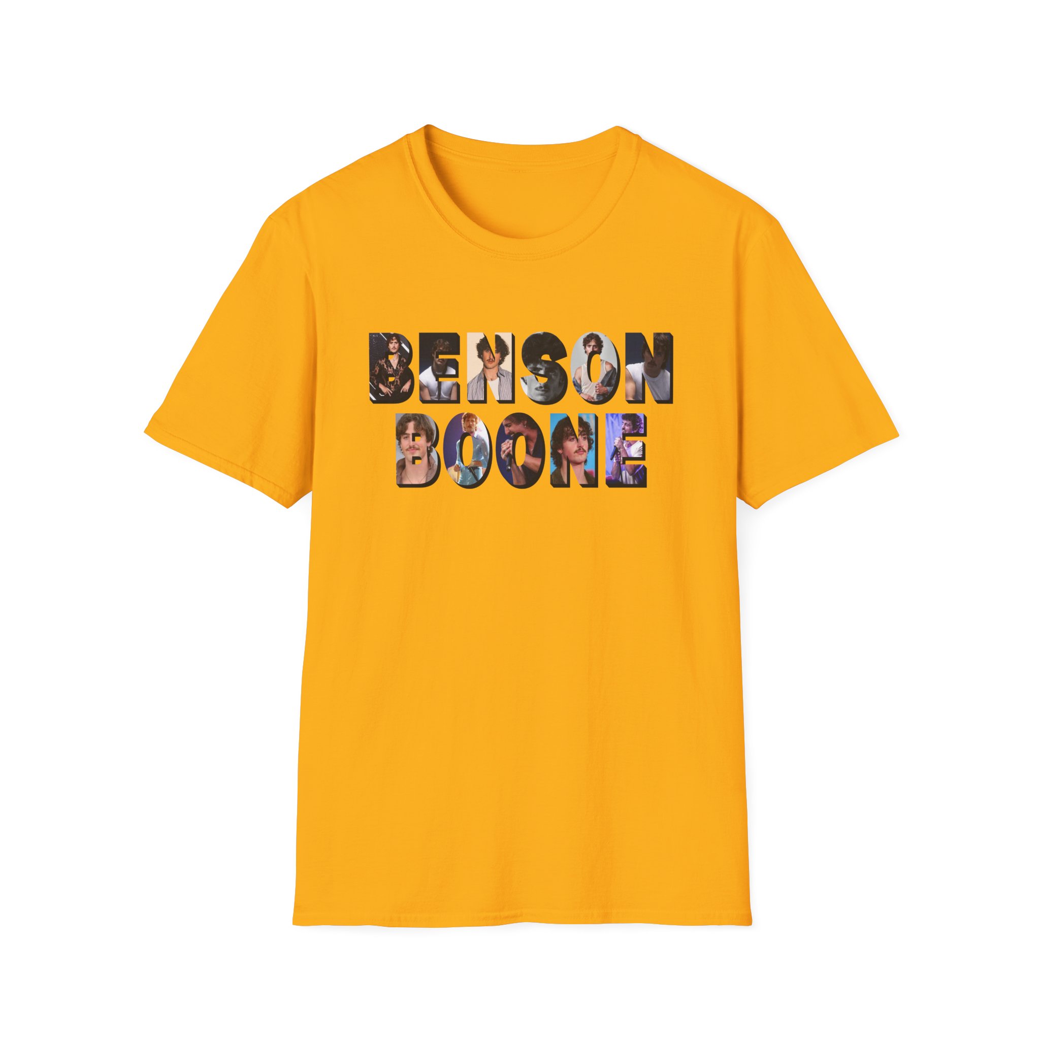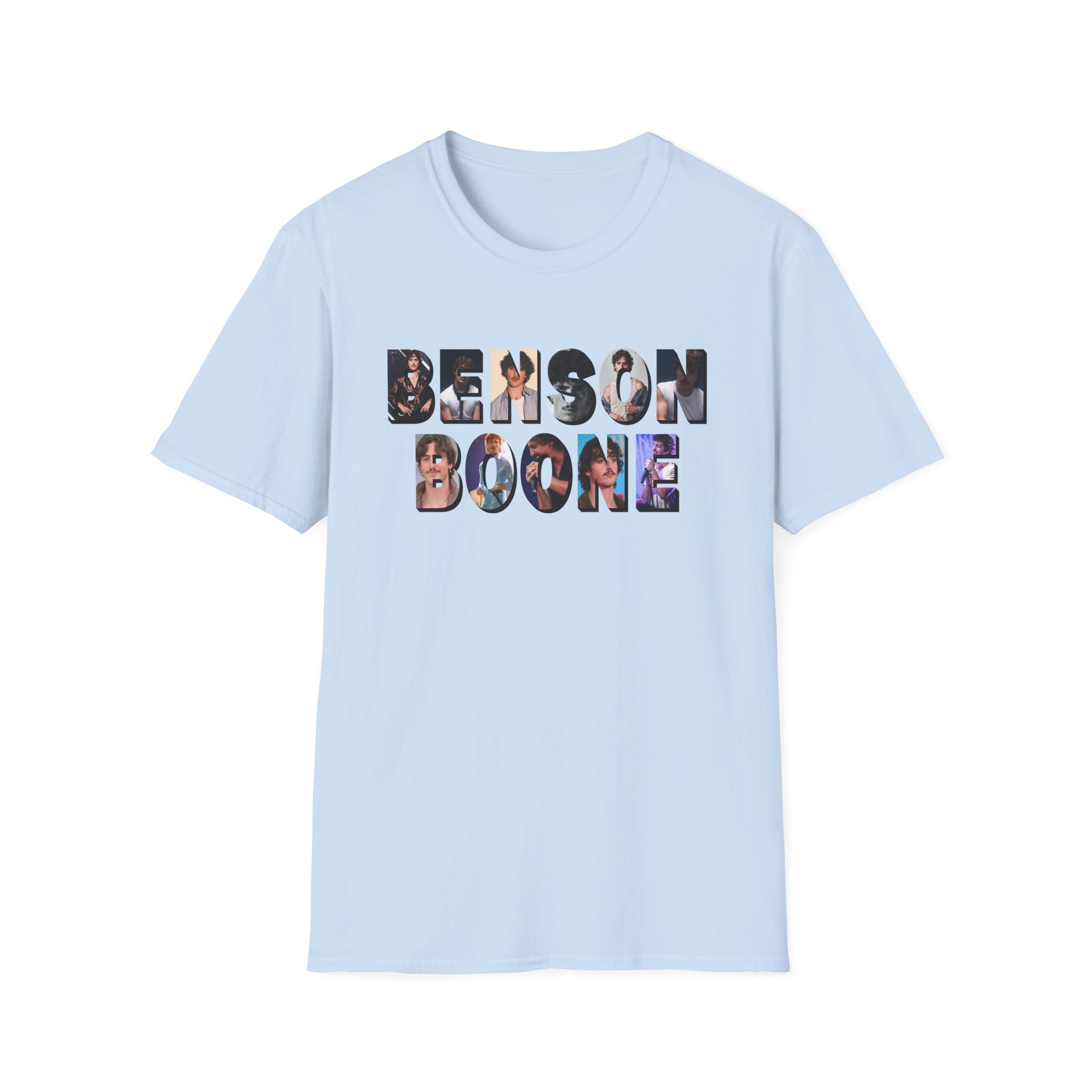 This lightweight, classic-fit tee carries a vintage tour-shirt look with hand-lettered script reading “Benson Boone” Soft ring-spun cotton and smooth printing make the graphic sit cleanly on the chest. Wear it to backyard shows, late-night drives, or when you want to bring a bit of road-worn Americana to a simple outfit. The crew neckline and tubular knit keep the silhouette neat, while shoulder tape and a ribbed collar hold the shape after many washes. It’s breathable, low-profile, and made to age with you—subtle black flecks appear on the Natural color for a lived-in feel.