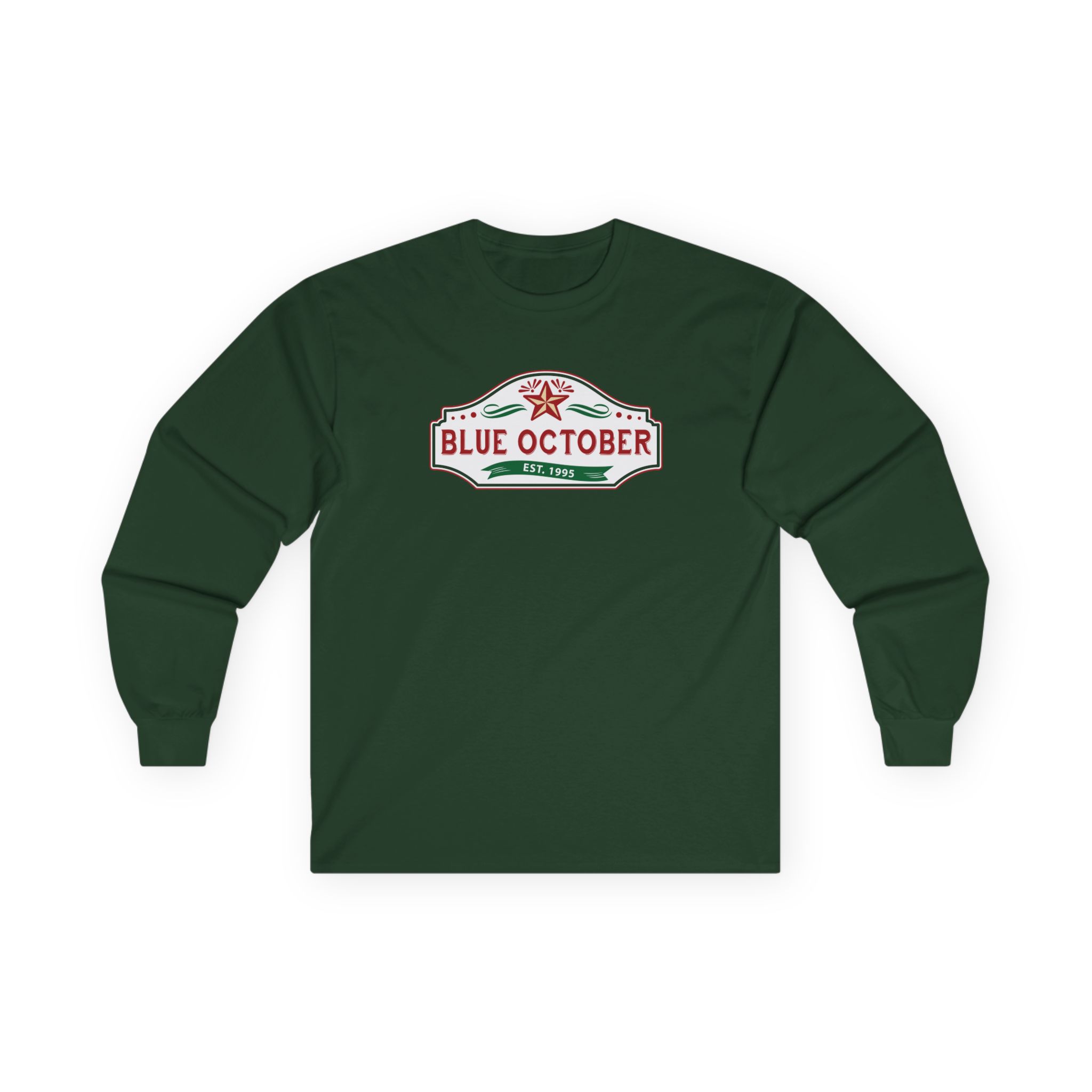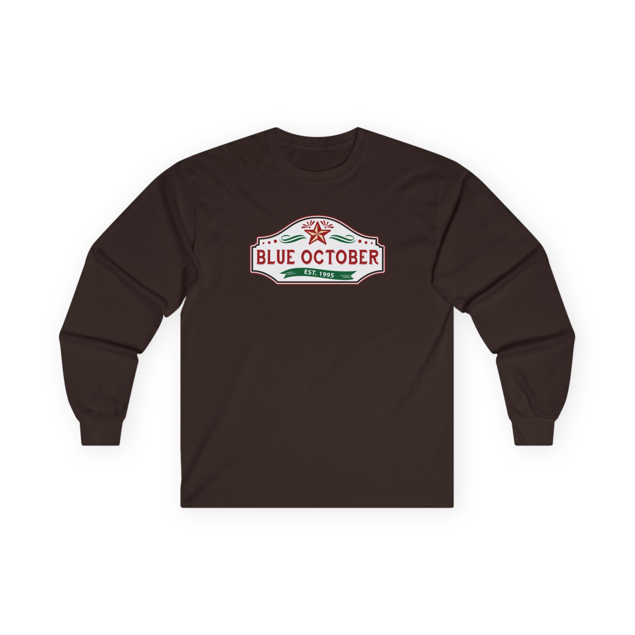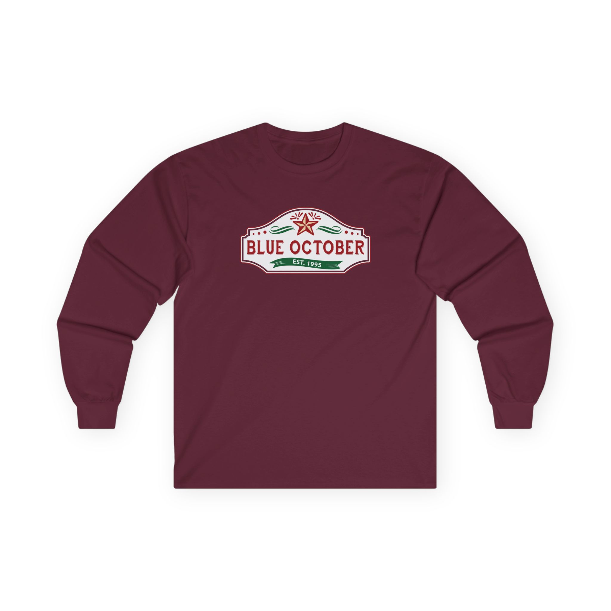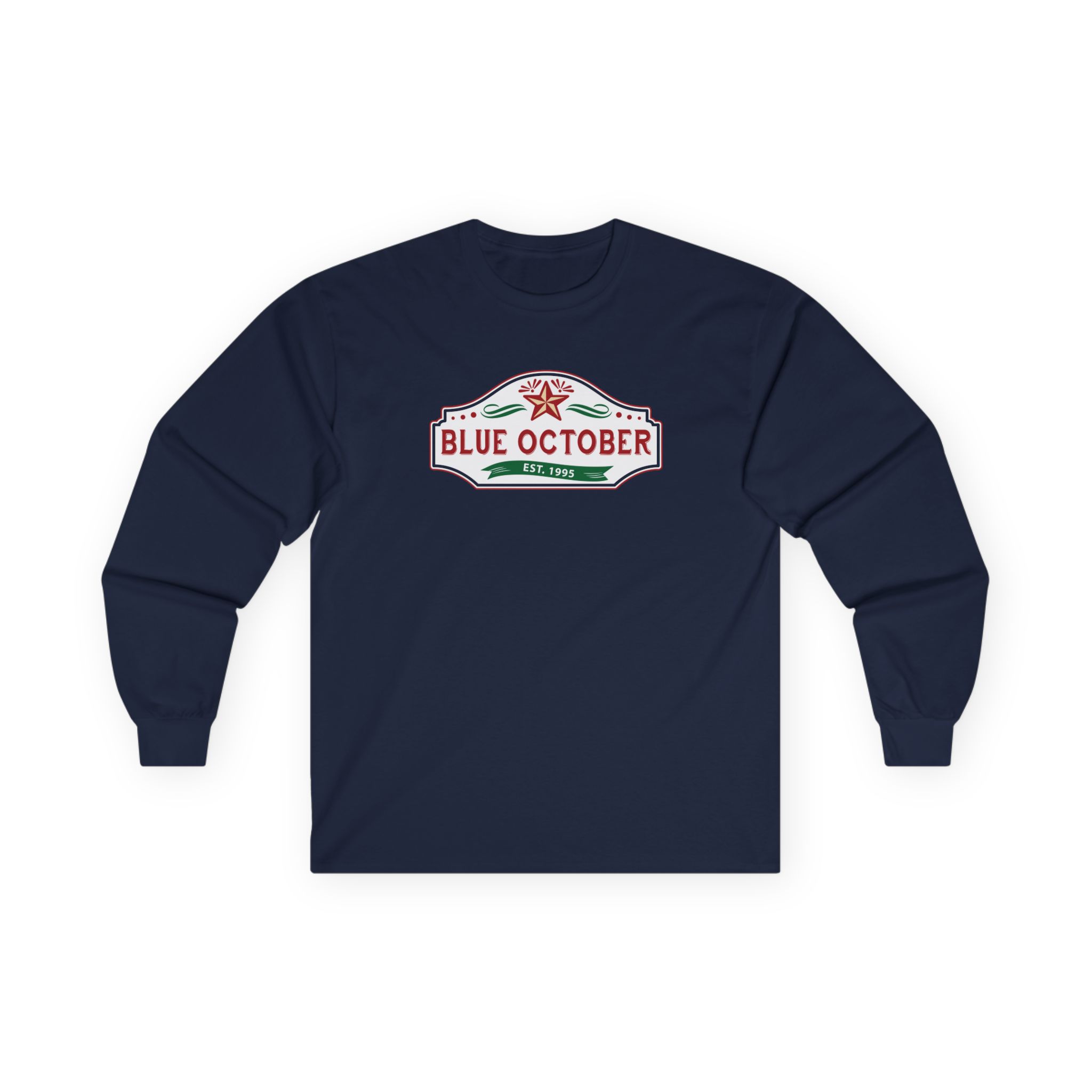 This Blue October Est 1995 long-sleeve tee brings vintage concert vibes to everyday wear. Soft yet substantial cotton and a classic, slightly boxy fit create a lived-in feel that layers well under jackets or stands alone. The front art—bold mirrored sunglasses, a painted blue nose and red lips—feels like a snapshot from an ’80s tour poster. Wear it to record-store hangs, low-key gigs, or when you want a guarded nod to music history without shouting. It’s the kind of shirt that feels like it already remembers a hundred nights out.