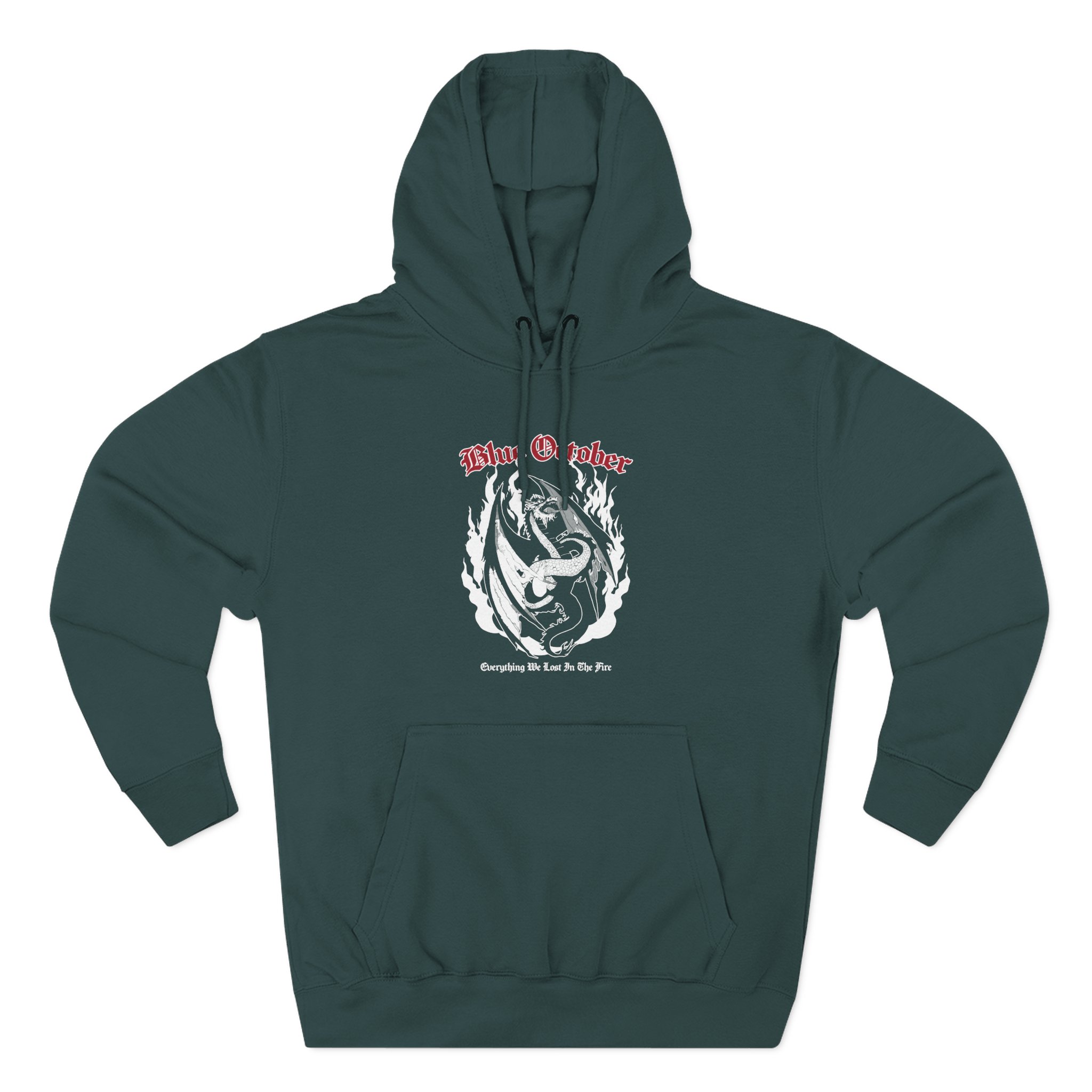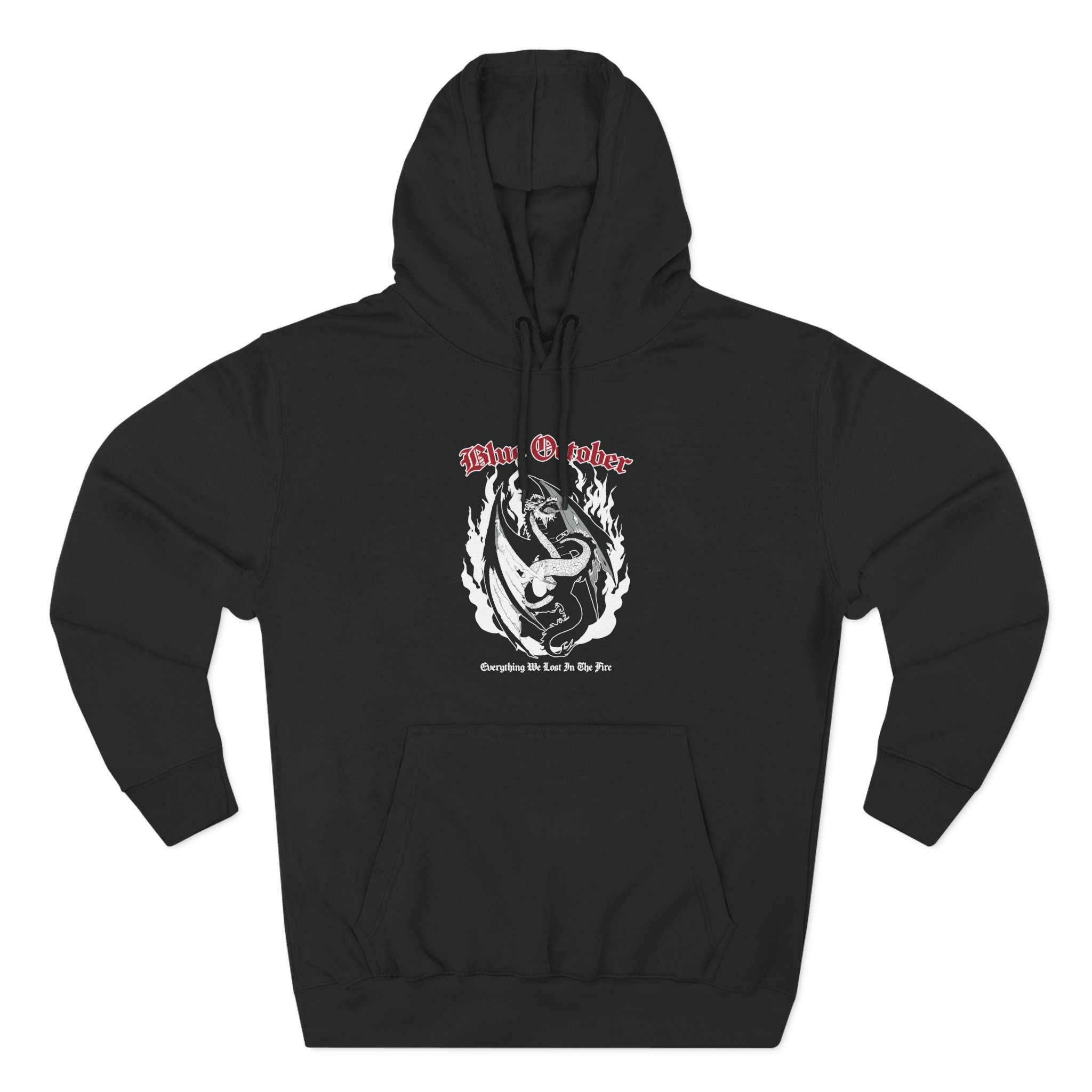 This Blue October Ewlitf Dragon charcoal fleece hoodie settles into your rotation like an old friend — soft, weighty, and quietly bold. The three-panel hood and adjustable drawcord frame your face on blustery mornings. A roomy kangaroo pocket keeps hands warm and holds what you need for a quick walk or a late-night errand. The front artwork sits low and distressed, giving the piece a lived-in, slightly rebellious vibe that works whether you’re heading to a gig, a practice, or a coffee run. Built with sturdy double-needle seams and a soft 3-end fleece interior, it wears well over years of wear and washes while keeping its shape.