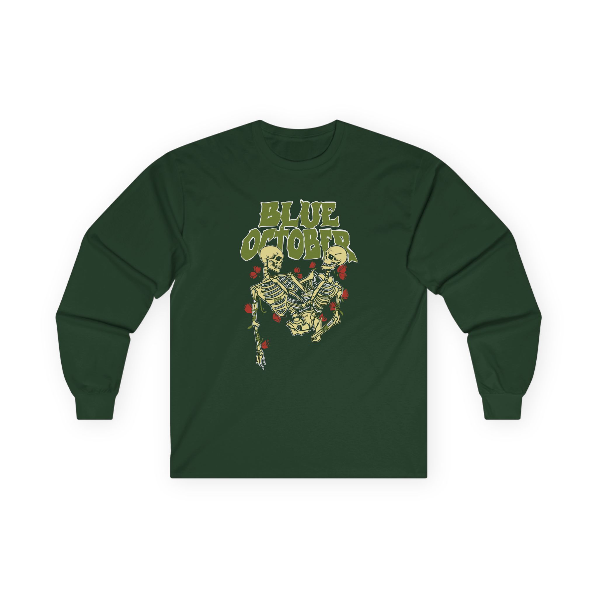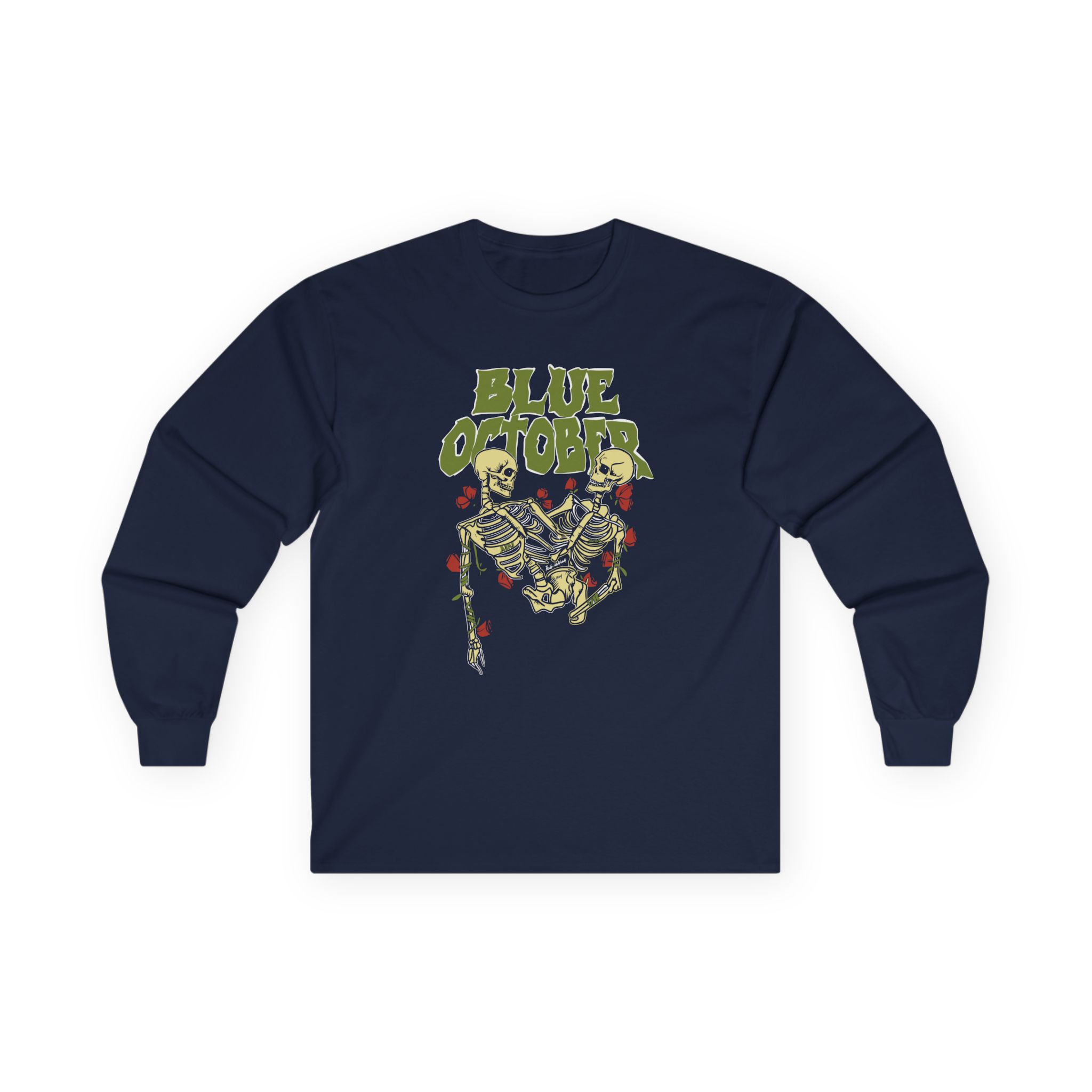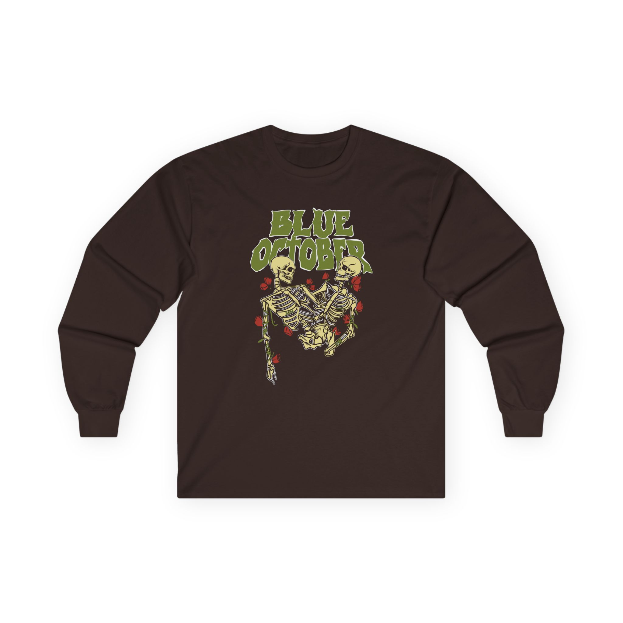 This Blue October Skeleton Buddies long-sleeve tee brings vintage concert vibes to everyday wear. Soft yet substantial cotton and a classic, slightly boxy fit create a lived-in feel that layers well under jackets or stands alone. The front art—bold mirrored sunglasses, a painted blue nose and red lips—feels like a snapshot from an ’80s tour poster. Wear it to record-store hangs, low-key gigs, or when you want a guarded nod to music history without shouting. It’s the kind of shirt that feels like it already remembers a hundred nights out.