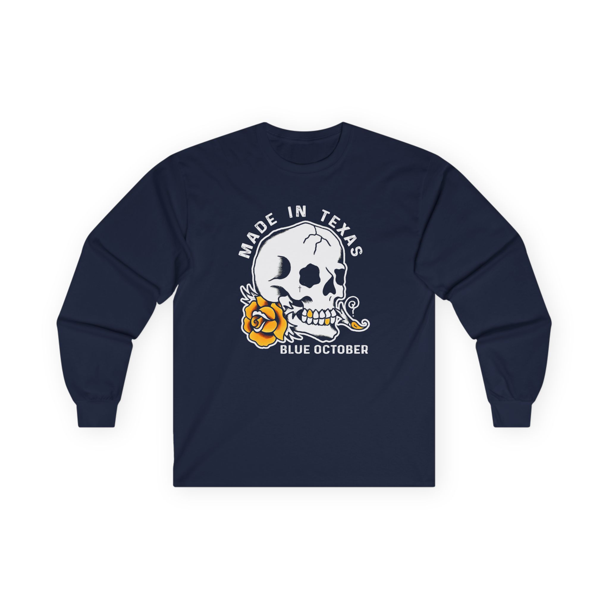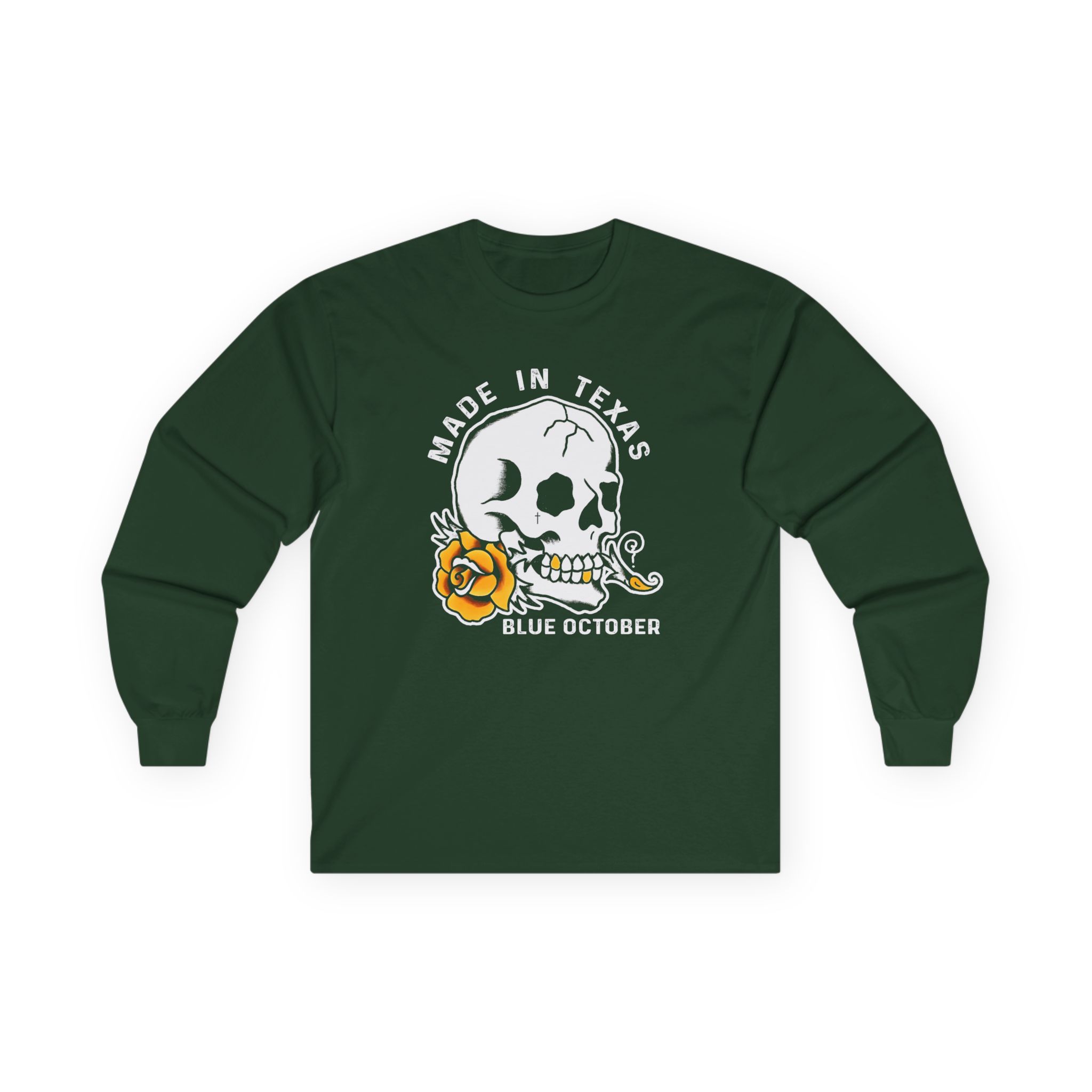 This Blue October Skull Rose long-sleeve tee brings vintage concert vibes to everyday wear. Soft yet substantial cotton and a classic, slightly boxy fit create a lived-in feel that layers well under jackets or stands alone. The front art—bold mirrored sunglasses, a painted blue nose and red lips—feels like a snapshot from an ’80s tour poster. Wear it to record-store hangs, low-key gigs, or when you want a guarded nod to music history without shouting. It’s the kind of shirt that feels like it already remembers a hundred nights out.
