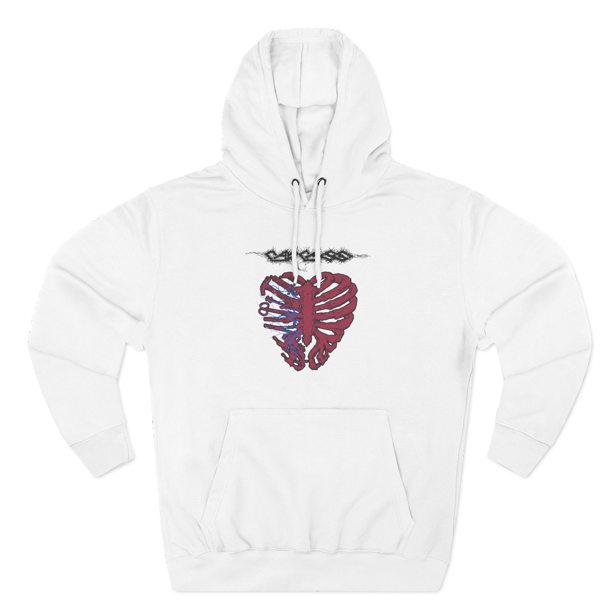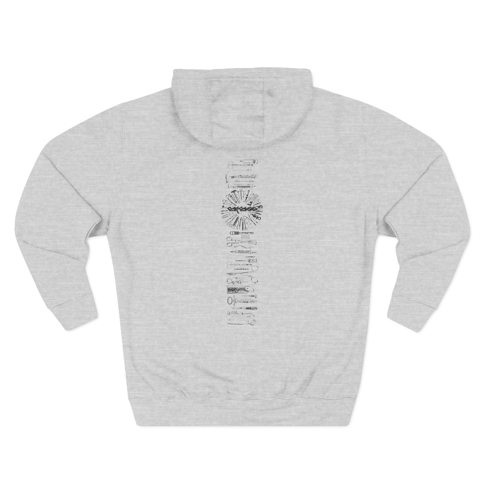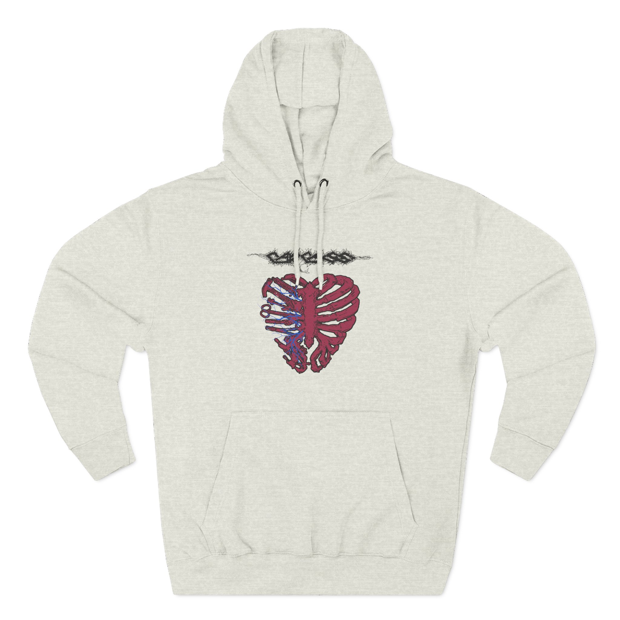 This Carcass charcoal fleece hoodie settles into your rotation like an old friend — soft, weighty, and quietly bold. The three-panel hood and adjustable drawcord frame your face on blustery mornings. A roomy kangaroo pocket keeps hands warm and holds what you need for a quick walk or a late-night errand. The front artwork sits low and distressed, giving the piece a lived-in, slightly rebellious vibe that works whether you’re heading to a gig, a practice, or a coffee run. Built with sturdy double-needle seams and a soft 3-end fleece interior, it wears well over years of wear and washes while keeping its shape.
