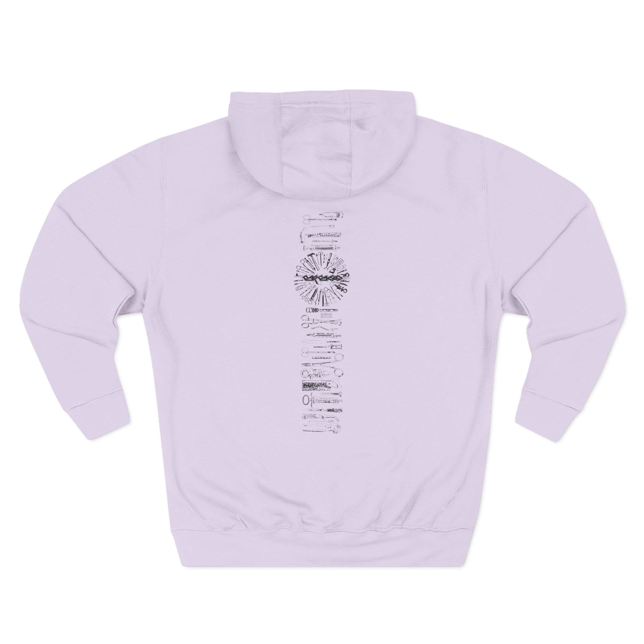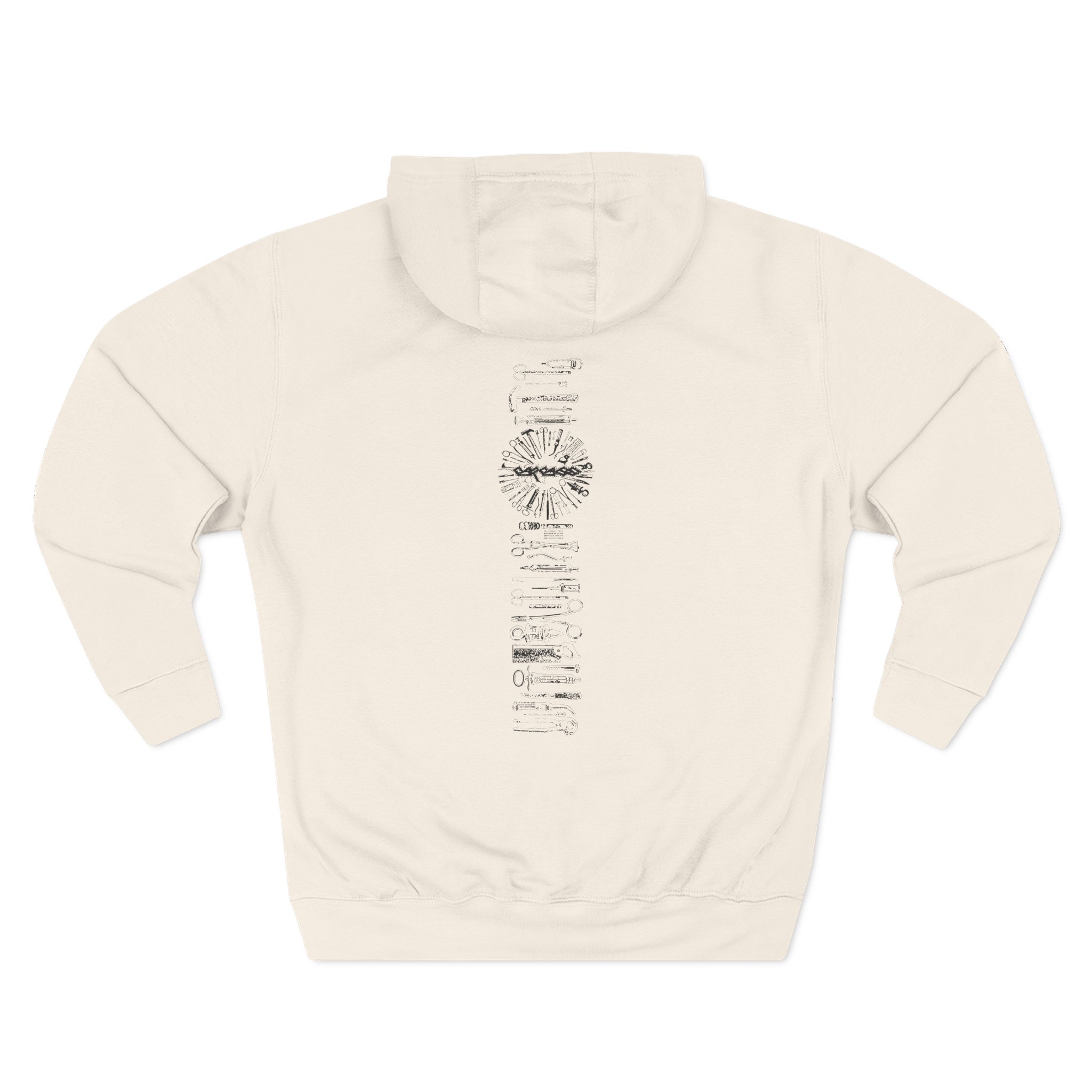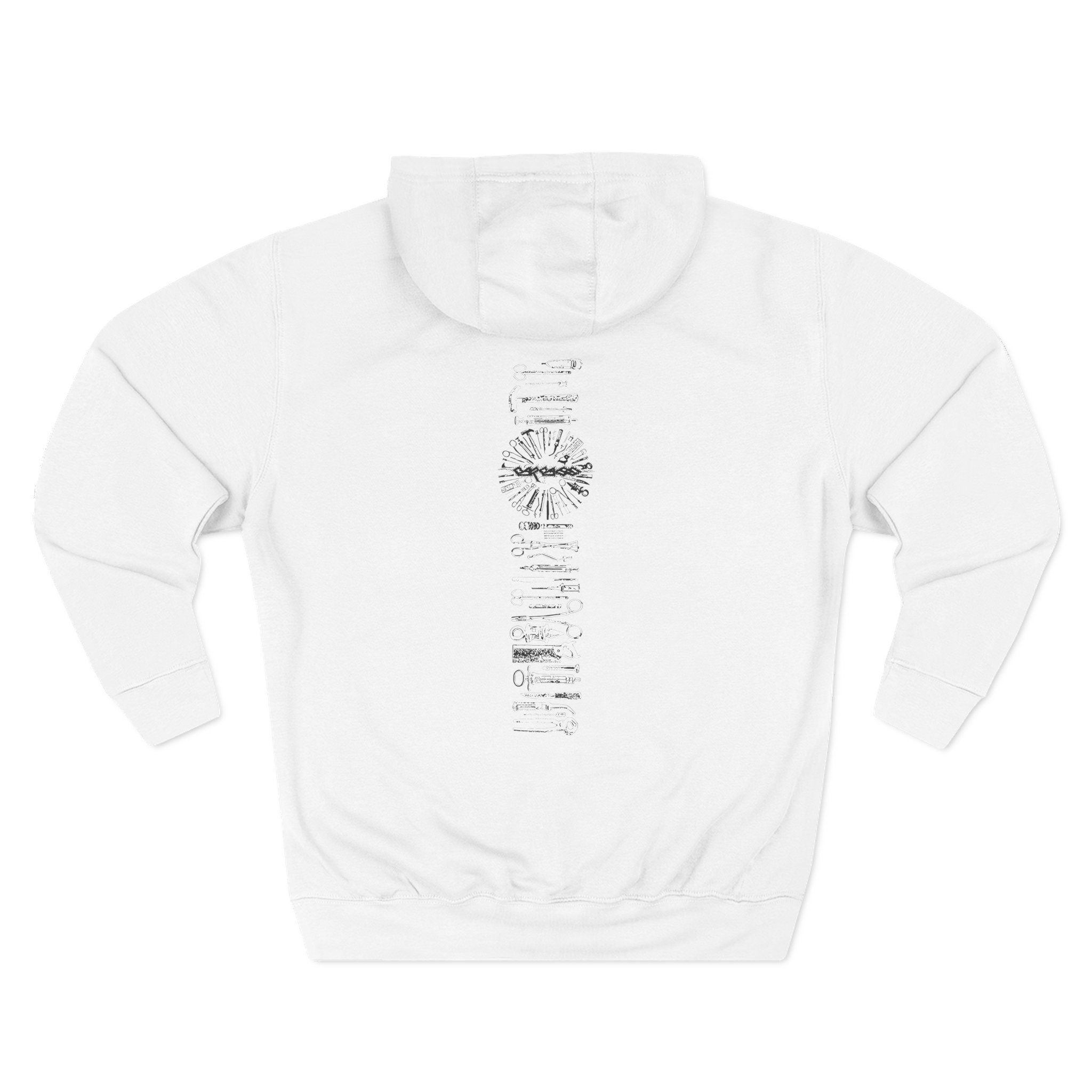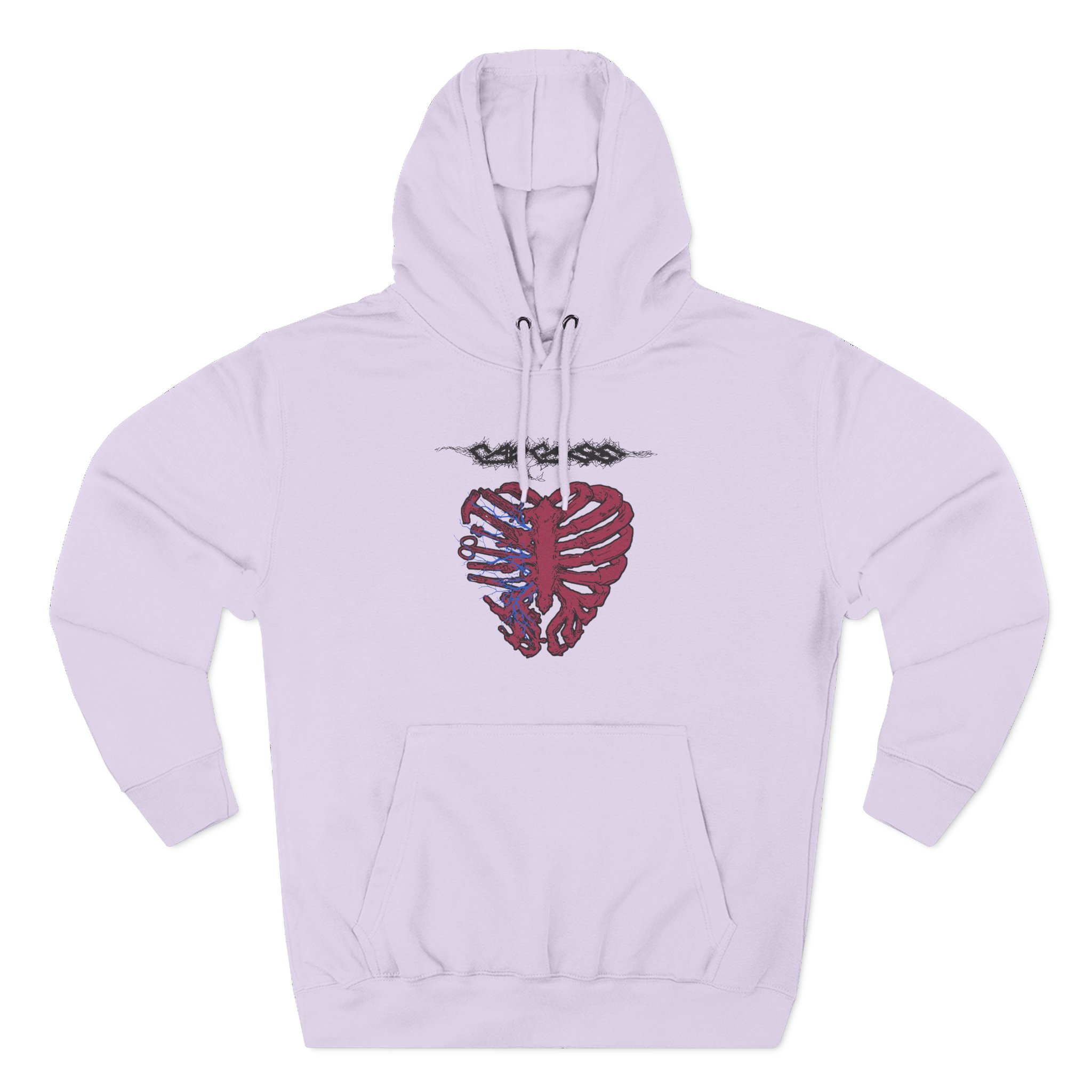 This Carcass charcoal fleece hoodie settles into your rotation like an old friend — soft, weighty, and quietly bold. The three-panel hood and adjustable drawcord frame your face on blustery mornings. A roomy kangaroo pocket keeps hands warm and holds what you need for a quick walk or a late-night errand. The front artwork sits low and distressed, giving the piece a lived-in, slightly rebellious vibe that works whether you’re heading to a gig, a practice, or a coffee run. Built with sturdy double-needle seams and a soft 3-end fleece interior, it wears well over years of wear and washes while keeping its shape.