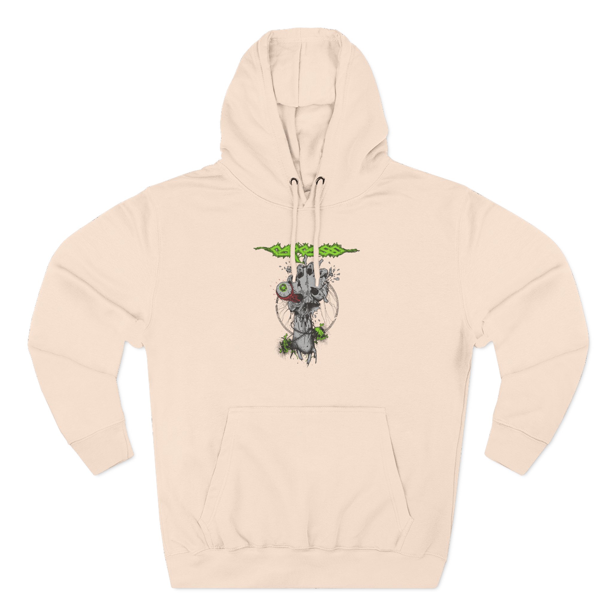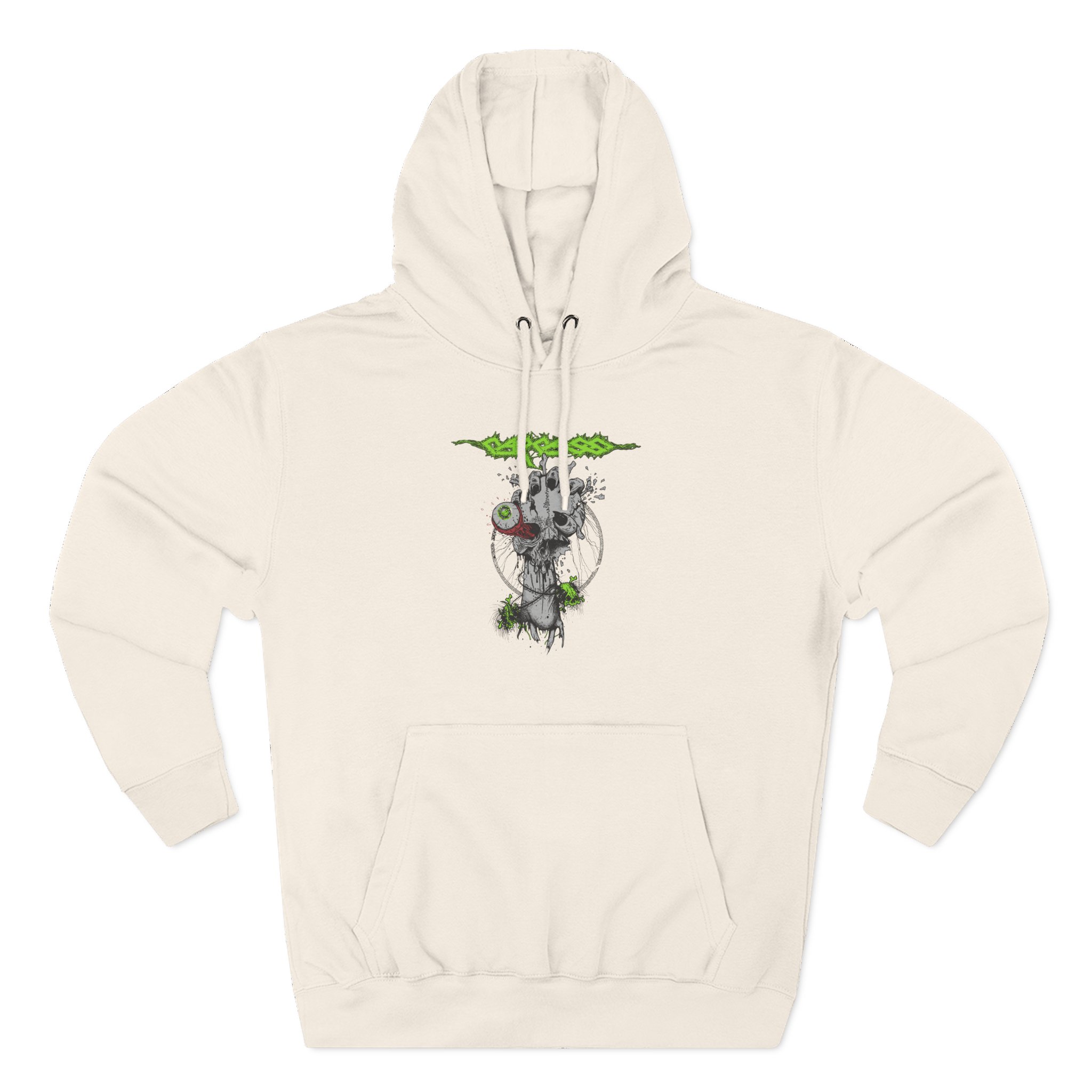 Wear it when you want durable comfort with personality: layered under a coat at fall shows, stretched out on a van floor after a long drive, or pulled up during early-morning soundchecks. The regular fit and thoughtful details — twill neck tape, tear-away label, metal grommets on the hood — make getting ready effortless. This is clothing for people who value texture, longevity, and subtle attitude.