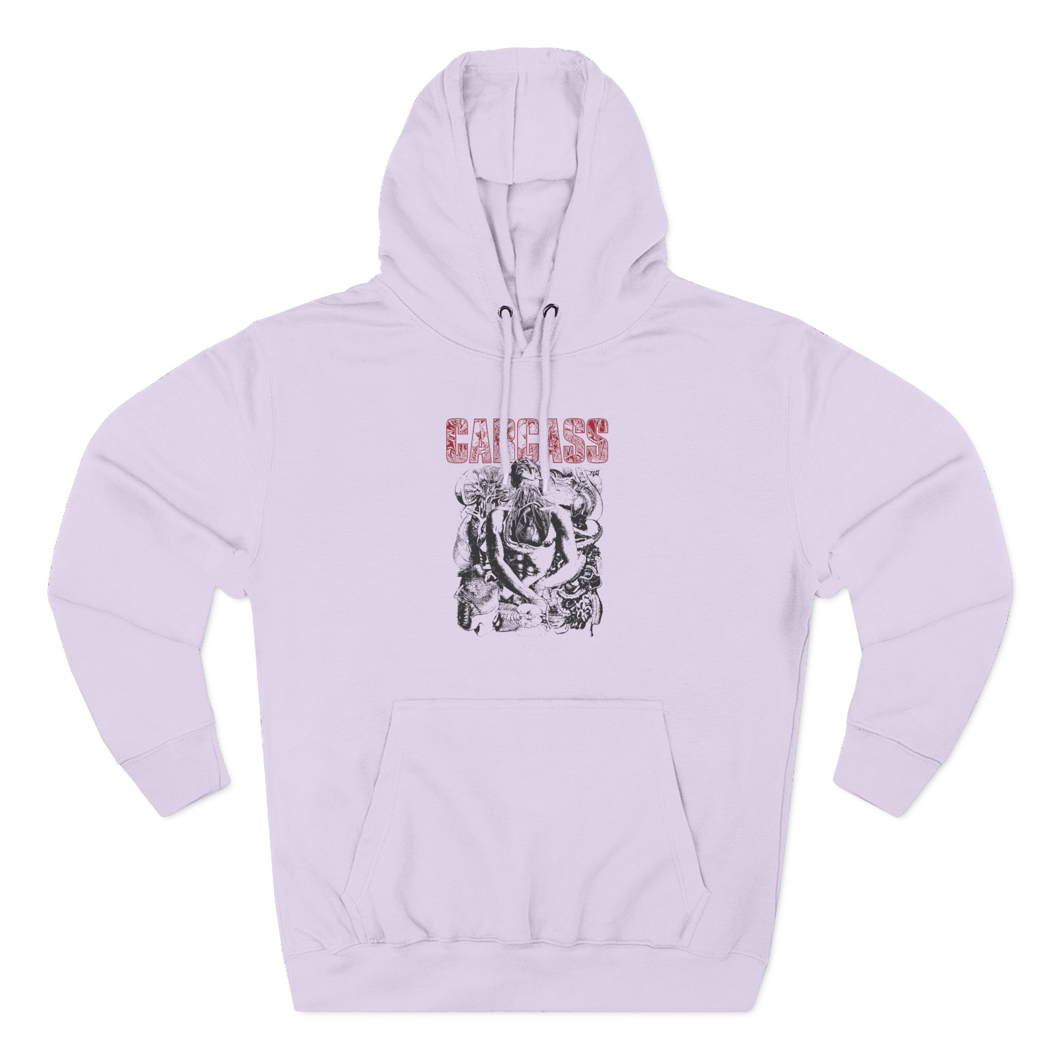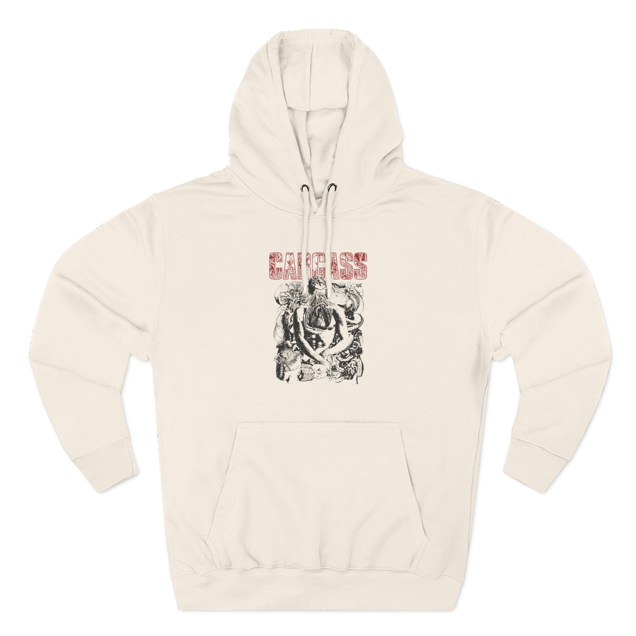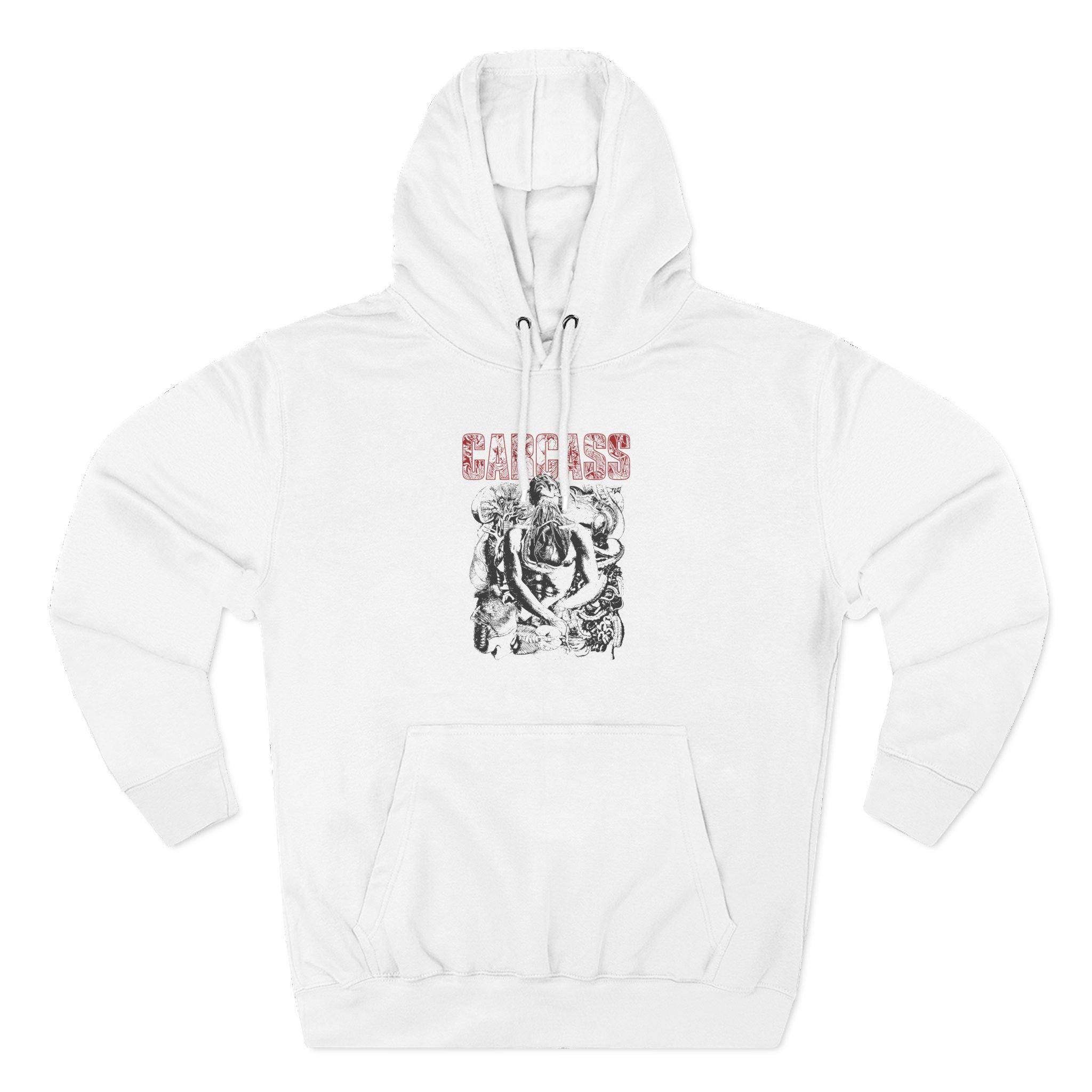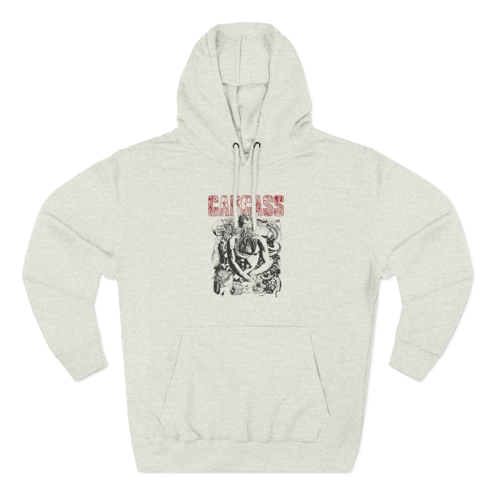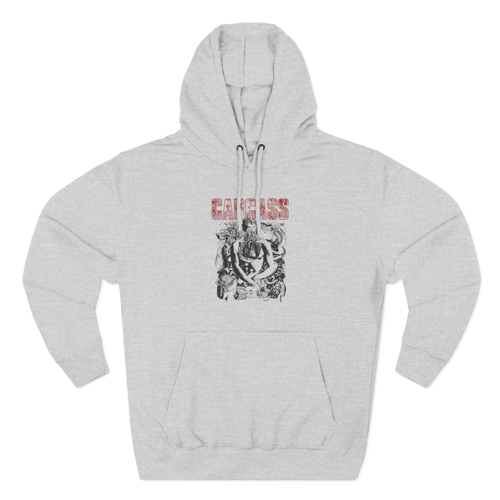 This Carcass Torso charcoal fleece hoodie settles into your rotation like an old friend — soft, weighty, and quietly bold. The three-panel hood and adjustable drawcord frame your face on blustery mornings. A roomy kangaroo pocket keeps hands warm and holds what you need for a quick walk or a late-night errand. The front artwork sits low and distressed, giving the piece a lived-in, slightly rebellious vibe that works whether you’re heading to a gig, a practice, or a coffee run. Built with sturdy double-needle seams and a soft 3-end fleece interior, it wears well over years of wear and washes while keeping its shape.