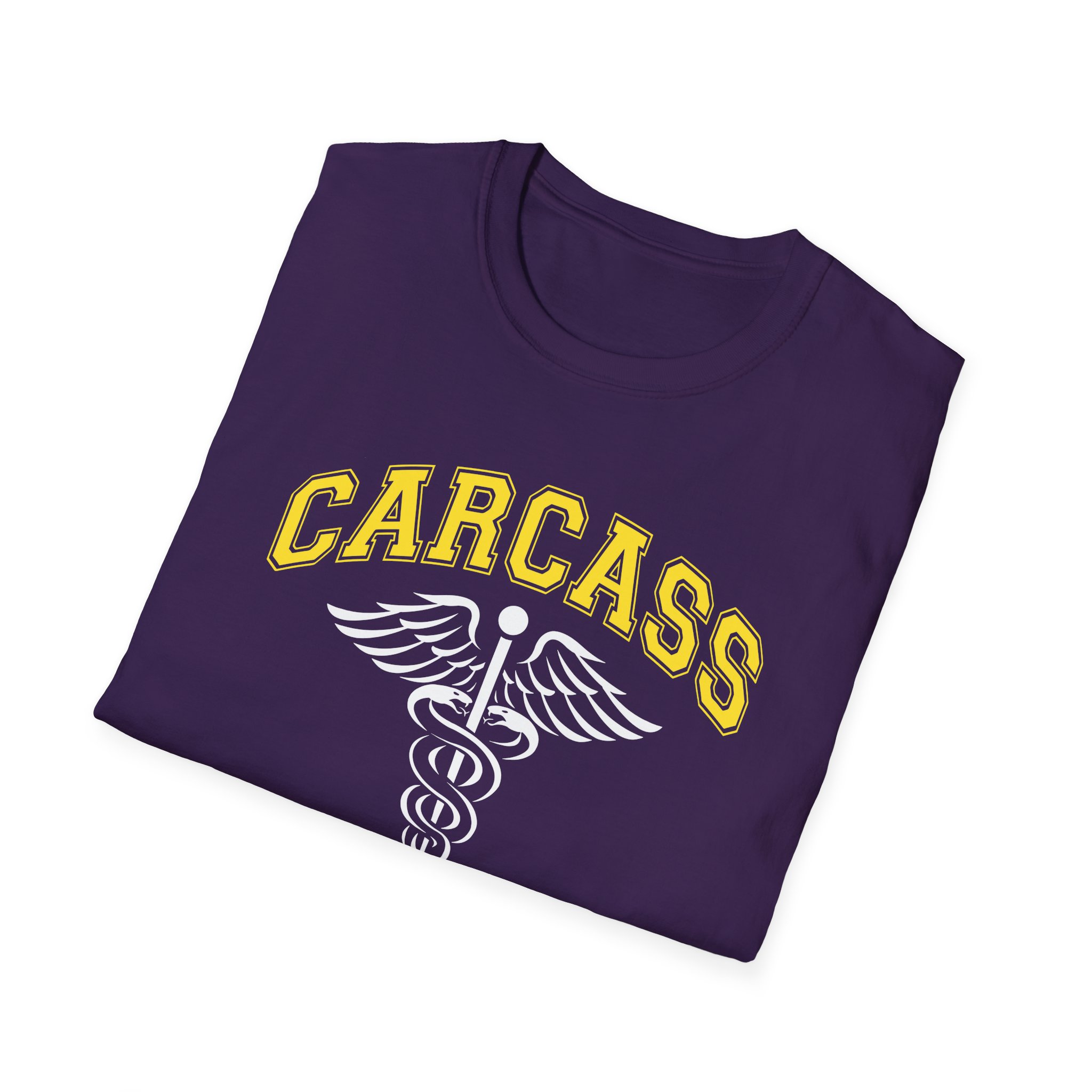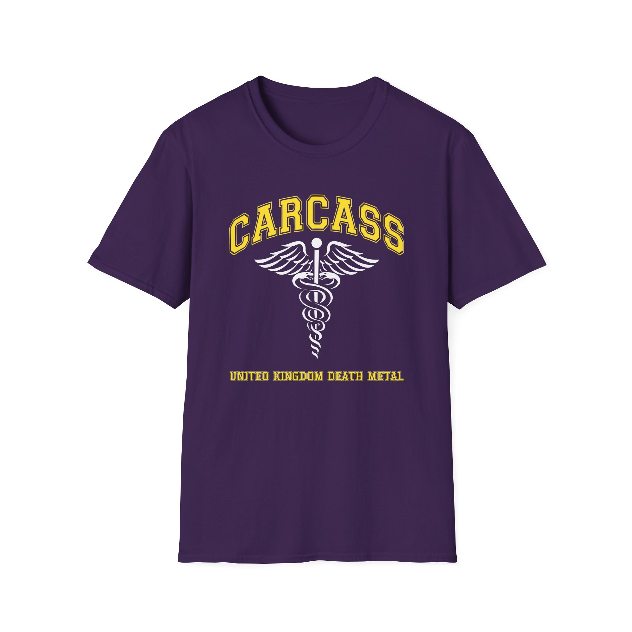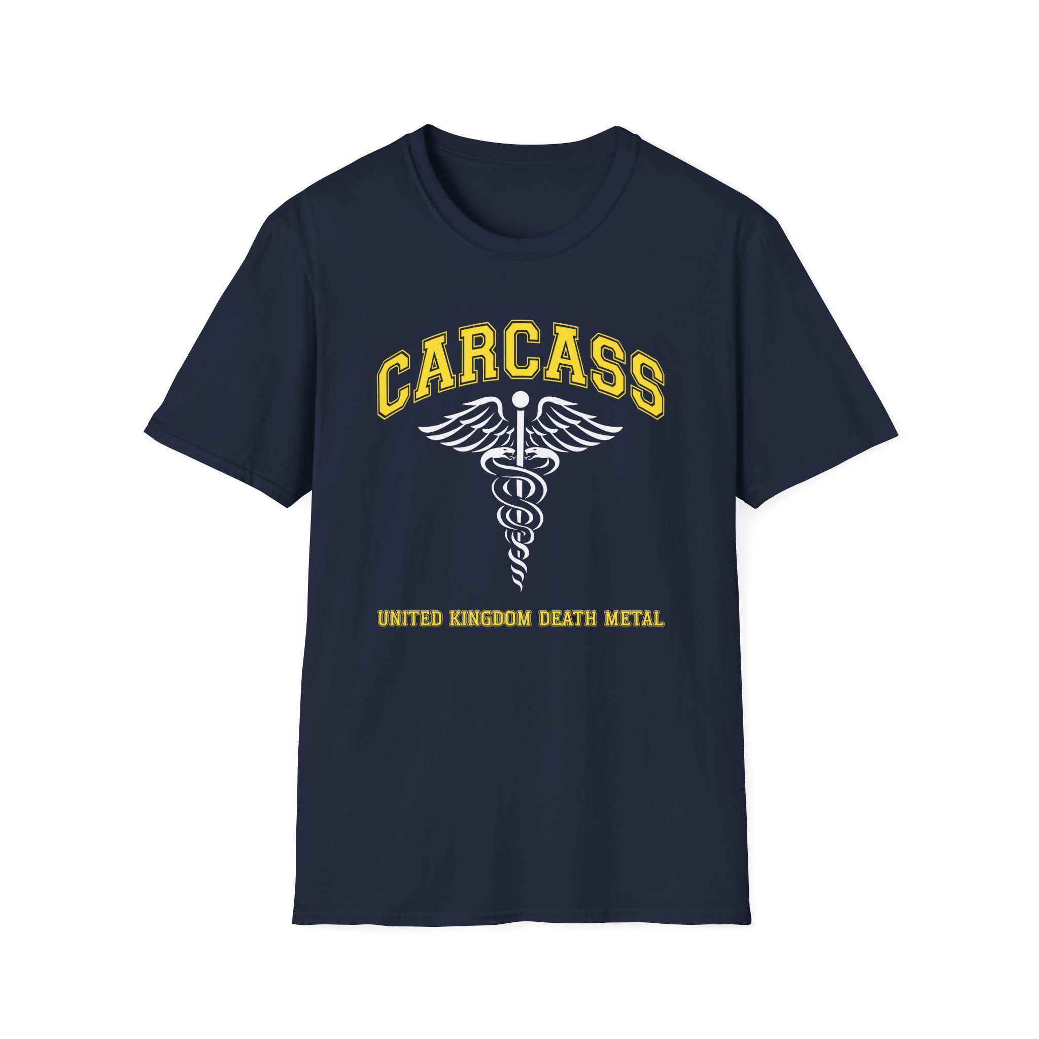 This lightweight, classic-fit tee carries a vintage tour-shirt look with hand-lettered script reading “Carcass UKDM” Soft ring-spun cotton and smooth printing make the graphic sit cleanly on the chest. Wear it to backyard shows, late-night drives, or when you want to bring a bit of road-worn Americana to a simple outfit. The crew neckline and tubular knit keep the silhouette neat, while shoulder tape and a ribbed collar hold the shape after many washes. It’s breathable, low-profile, and made to age with you—subtle black flecks appear on the Natural color for a lived-in feel.