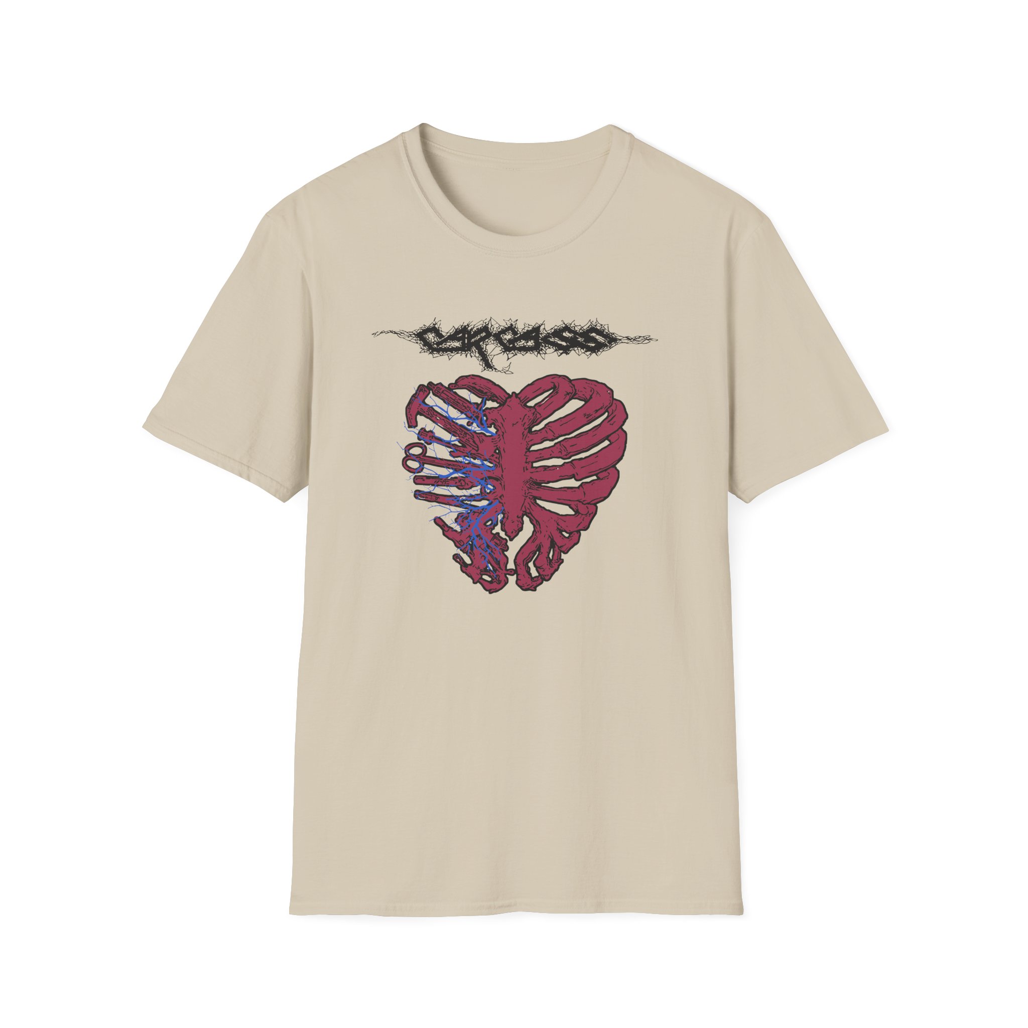 This lightweight, classic-fit tee carries a vintage tour-shirt look with hand-lettered script reading “Carcass” Soft ring-spun cotton and smooth printing make the graphic sit cleanly on the chest. Wear it to backyard shows, late-night drives, or when you want to bring a bit of road-worn Americana to a simple outfit. The crew neckline and tubular knit keep the silhouette neat, while shoulder tape and a ribbed collar hold the shape after many washes. It’s breathable, low-profile, and made to age with you—subtle black flecks appear on the Natural color for a lived-in feel.