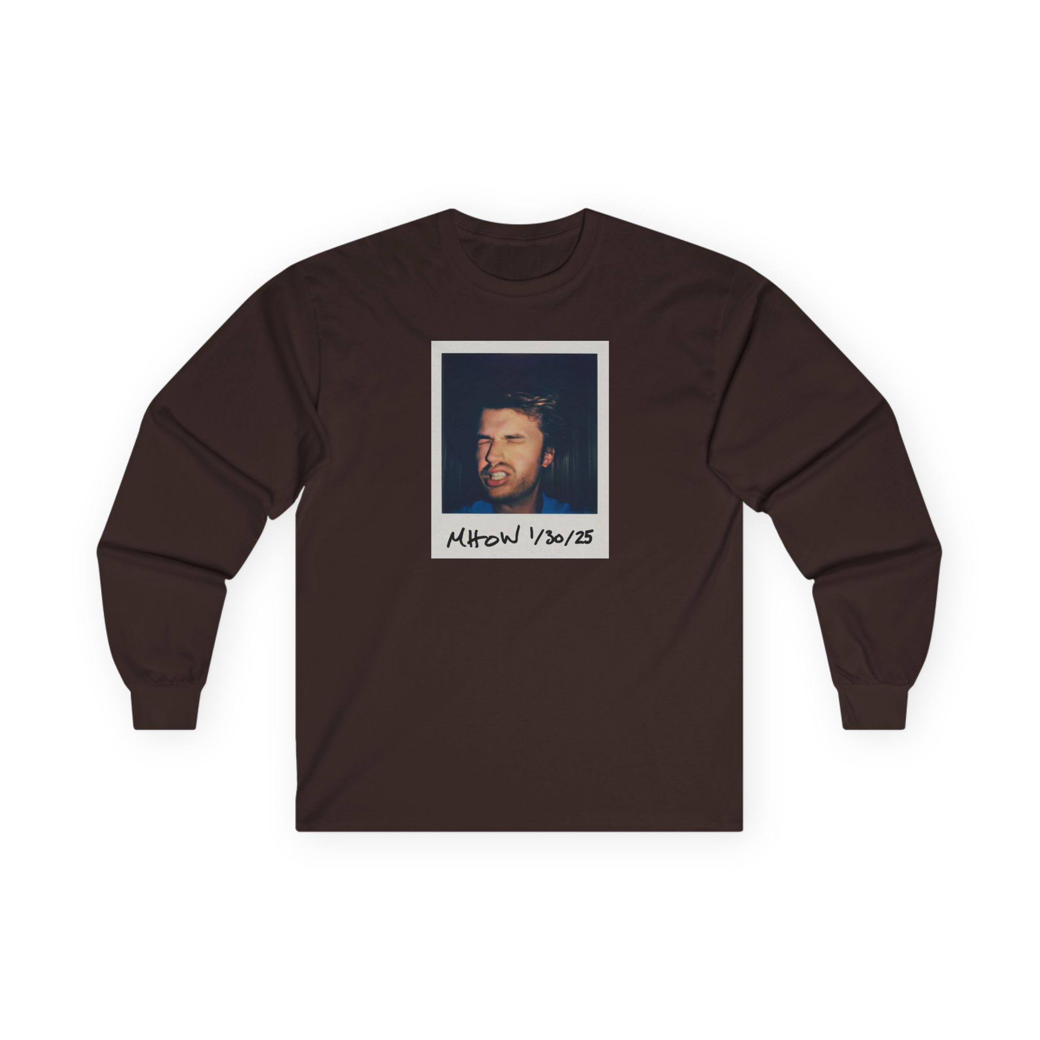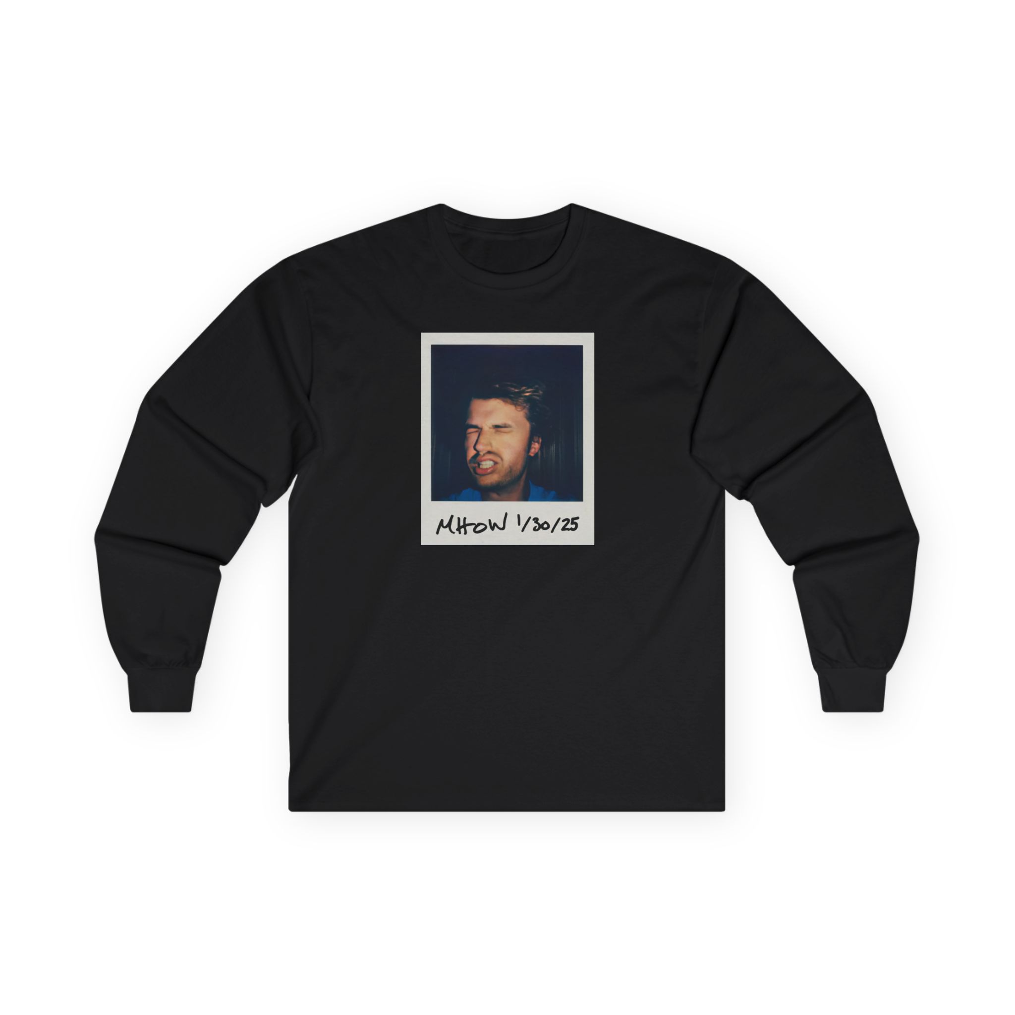 This Djo Mhow 1/30/25 long-sleeve tee brings vintage concert vibes to everyday wear. Soft yet substantial cotton and a classic, slightly boxy fit create a lived-in feel that layers well under jackets or stands alone. The front art—bold mirrored sunglasses, a painted blue nose and red lips—feels like a snapshot from an ’80s tour poster. Wear it to record-store hangs, low-key gigs, or when you want a guarded nod to music history without shouting. It’s the kind of shirt that feels like it already remembers a hundred nights out.