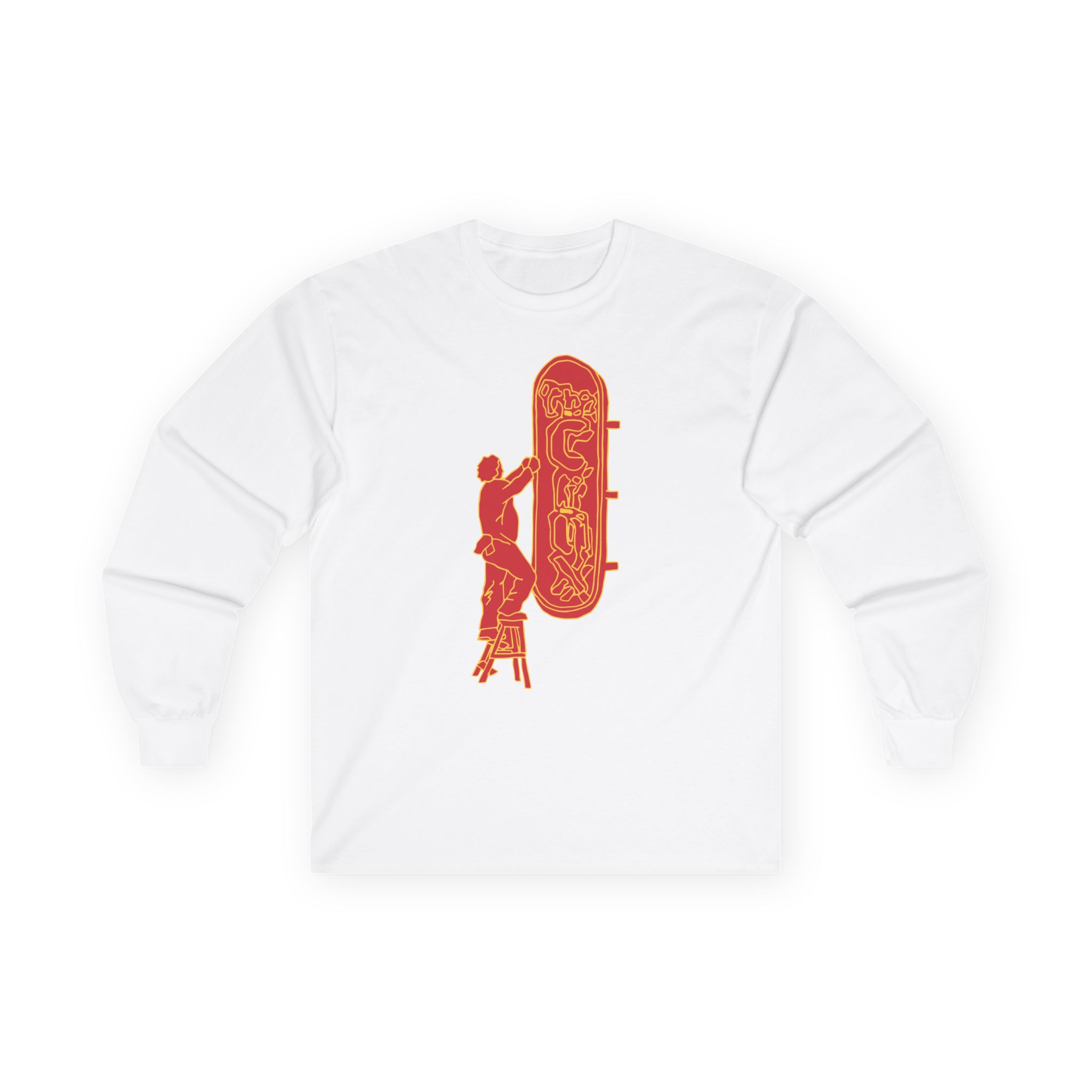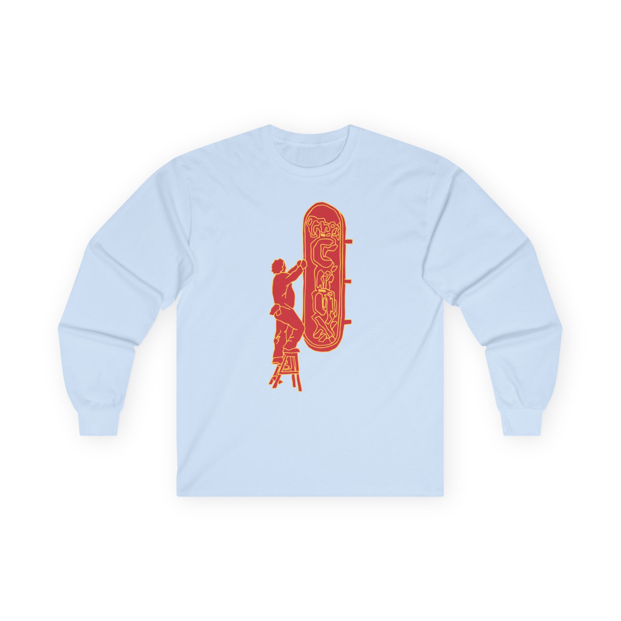 This Djo The Crux Sign long-sleeve tee brings vintage concert vibes to everyday wear. Soft yet substantial cotton and a classic, slightly boxy fit create a lived-in feel that layers well under jackets or stands alone. The front art—bold mirrored sunglasses, a painted blue nose and red lips—feels like a snapshot from an ’80s tour poster. Wear it to record-store hangs, low-key gigs, or when you want a guarded nod to music history without shouting. It’s the kind of shirt that feels like it already remembers a hundred nights out.