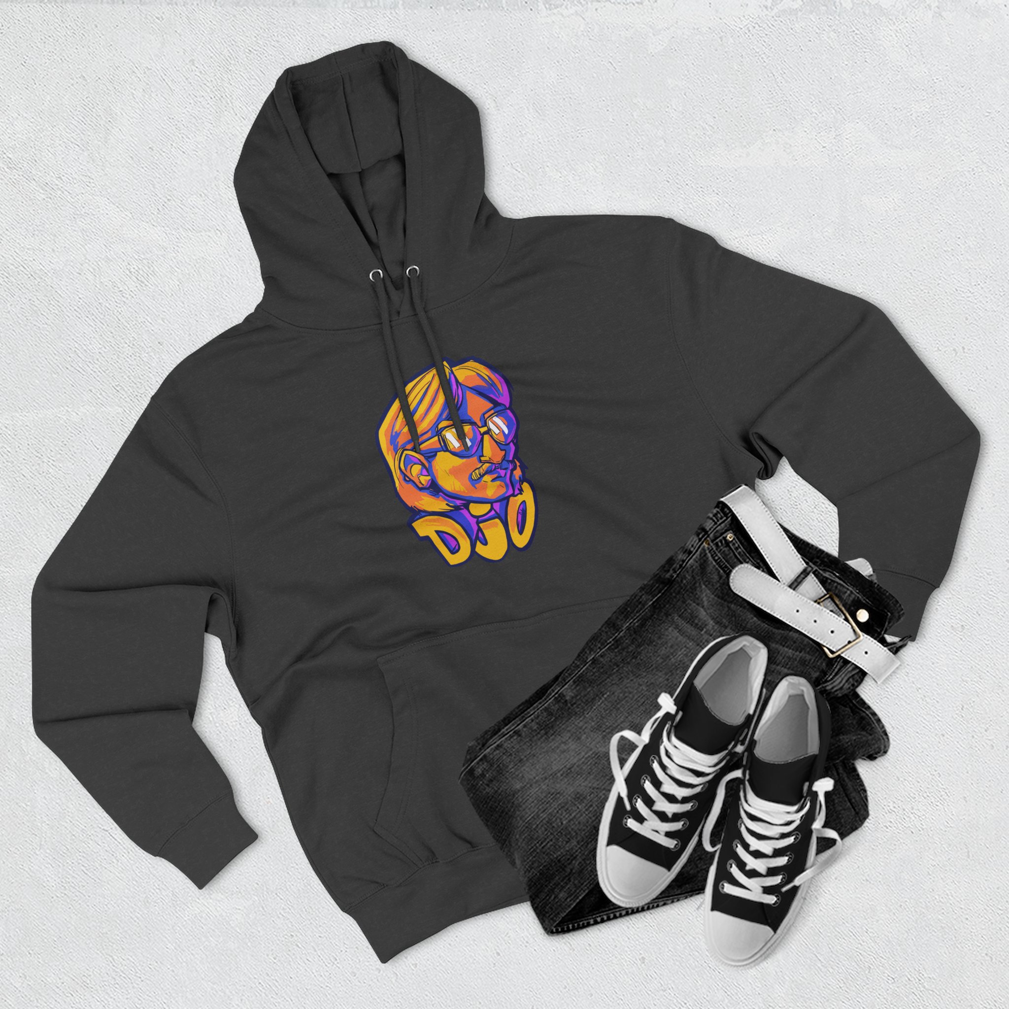This Djo charcoal fleece hoodie settles into your rotation like an old friend — soft, weighty, and quietly bold. The three-panel hood and adjustable drawcord frame your face on blustery mornings. A roomy kangaroo pocket keeps hands warm and holds what you need for a quick walk or a late-night errand. The front artwork sits low and distressed, giving the piece a lived-in, slightly rebellious vibe that works whether you’re heading to a gig, a practice, or a coffee run. Built with sturdy double-needle seams and a soft 3-end fleece interior, it wears well over years of wear and washes while keeping its shape.