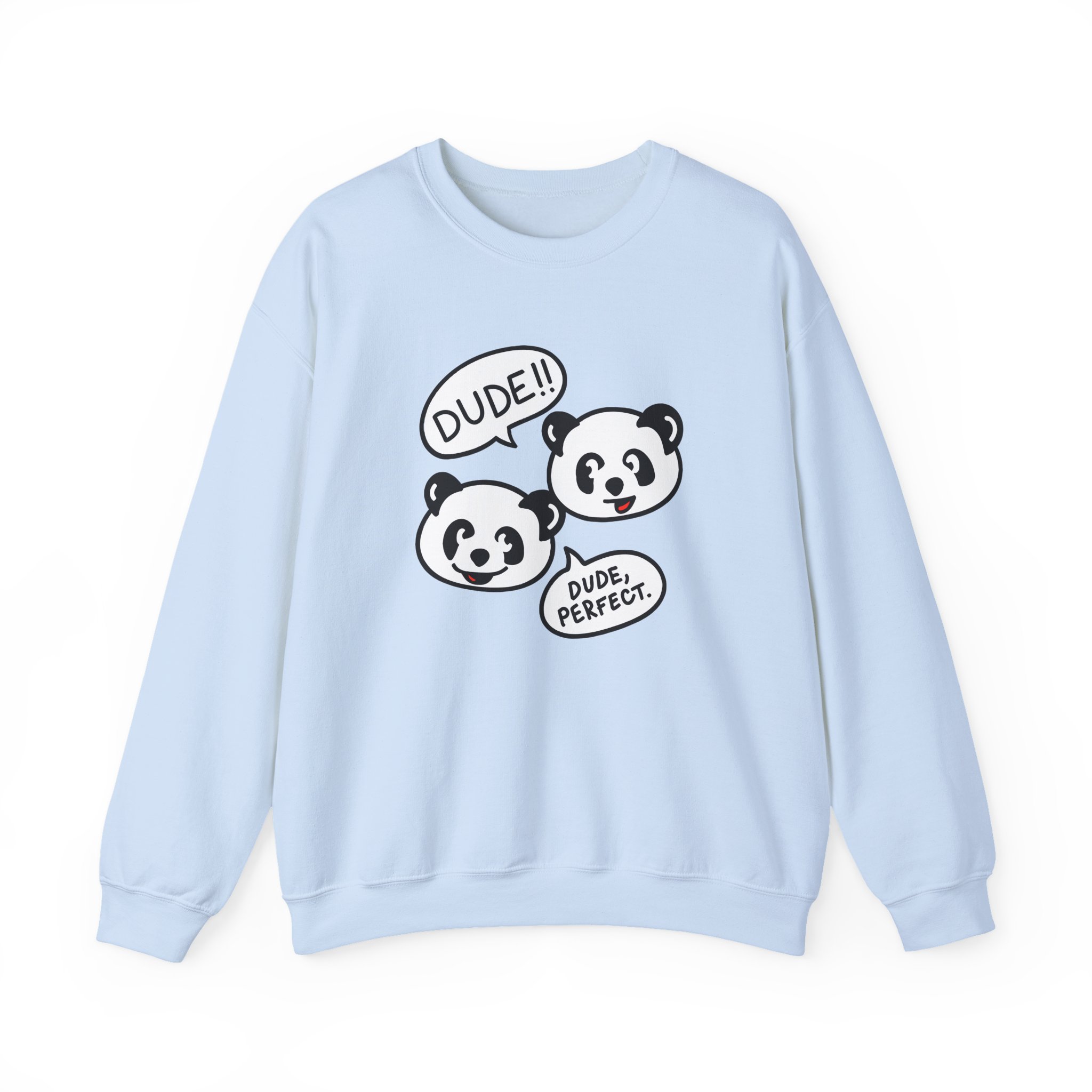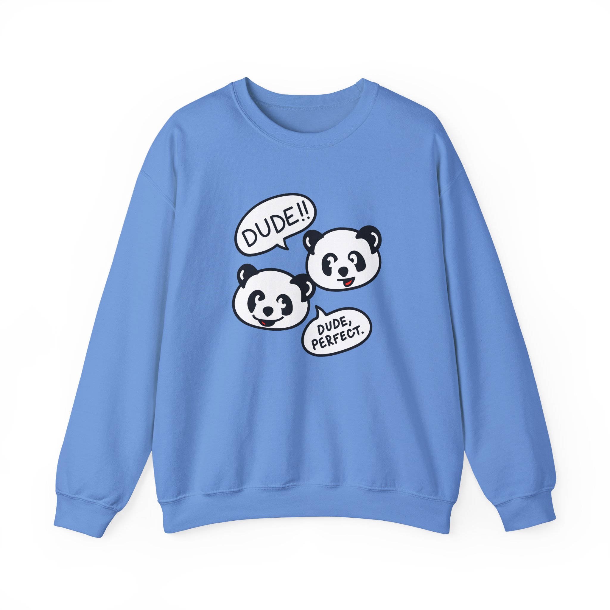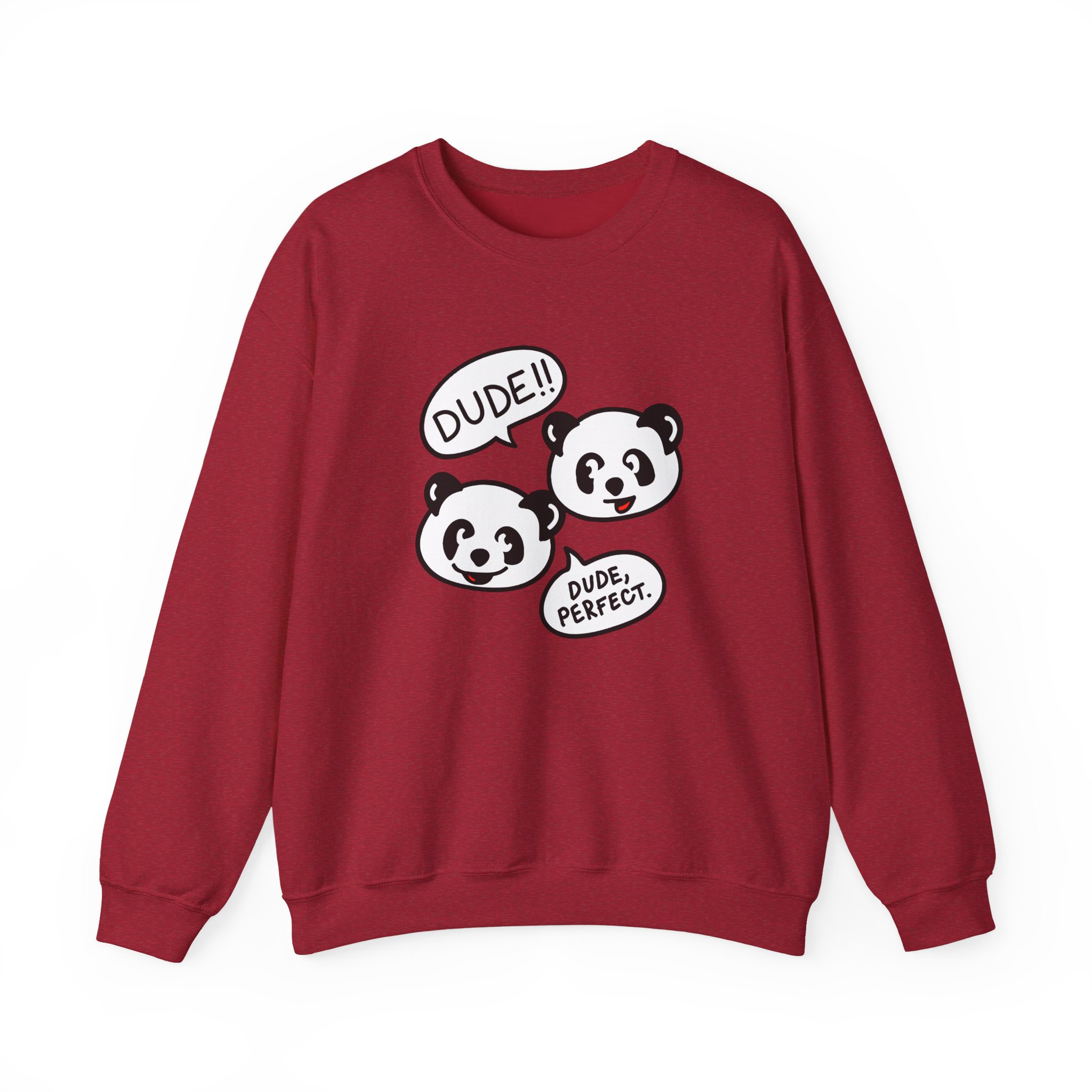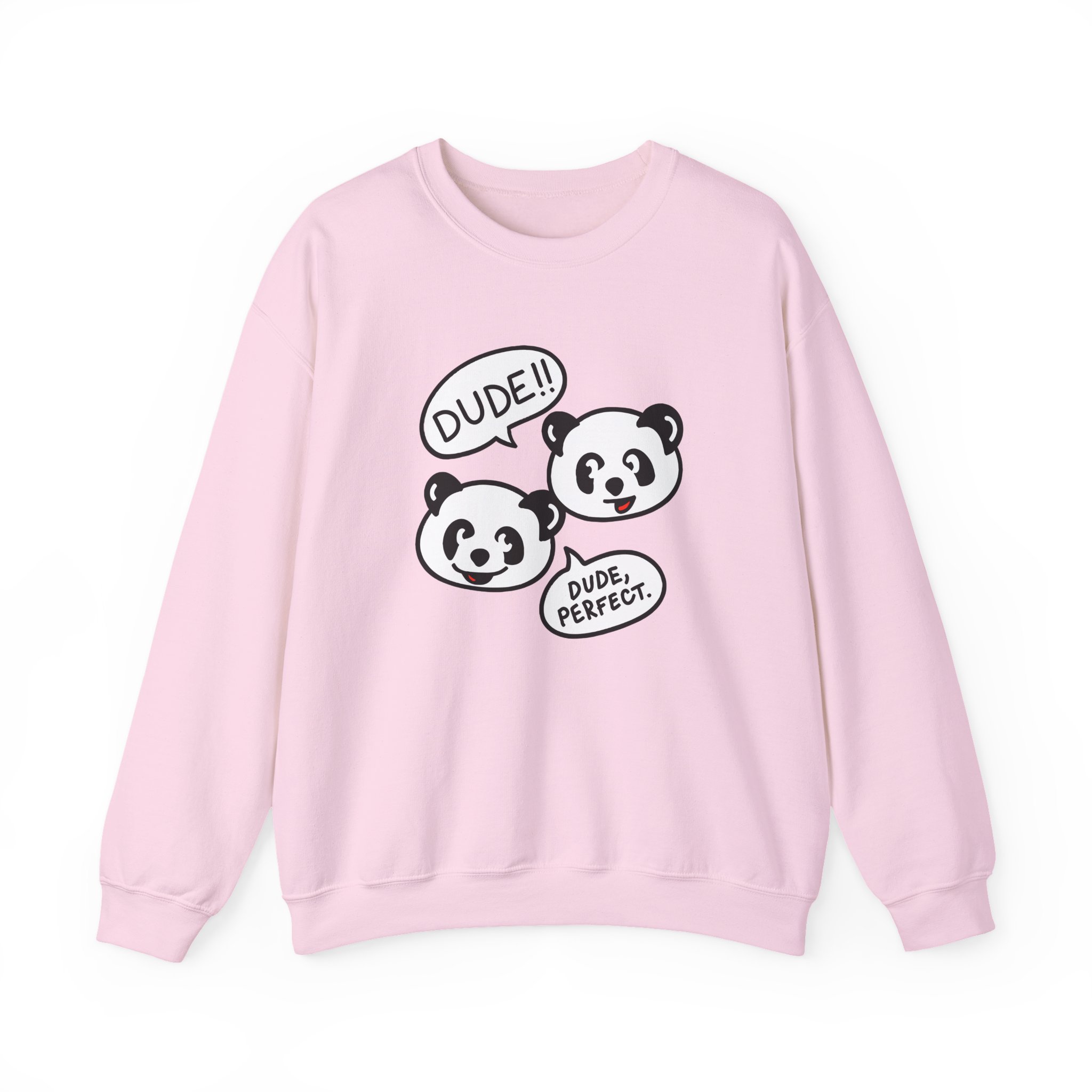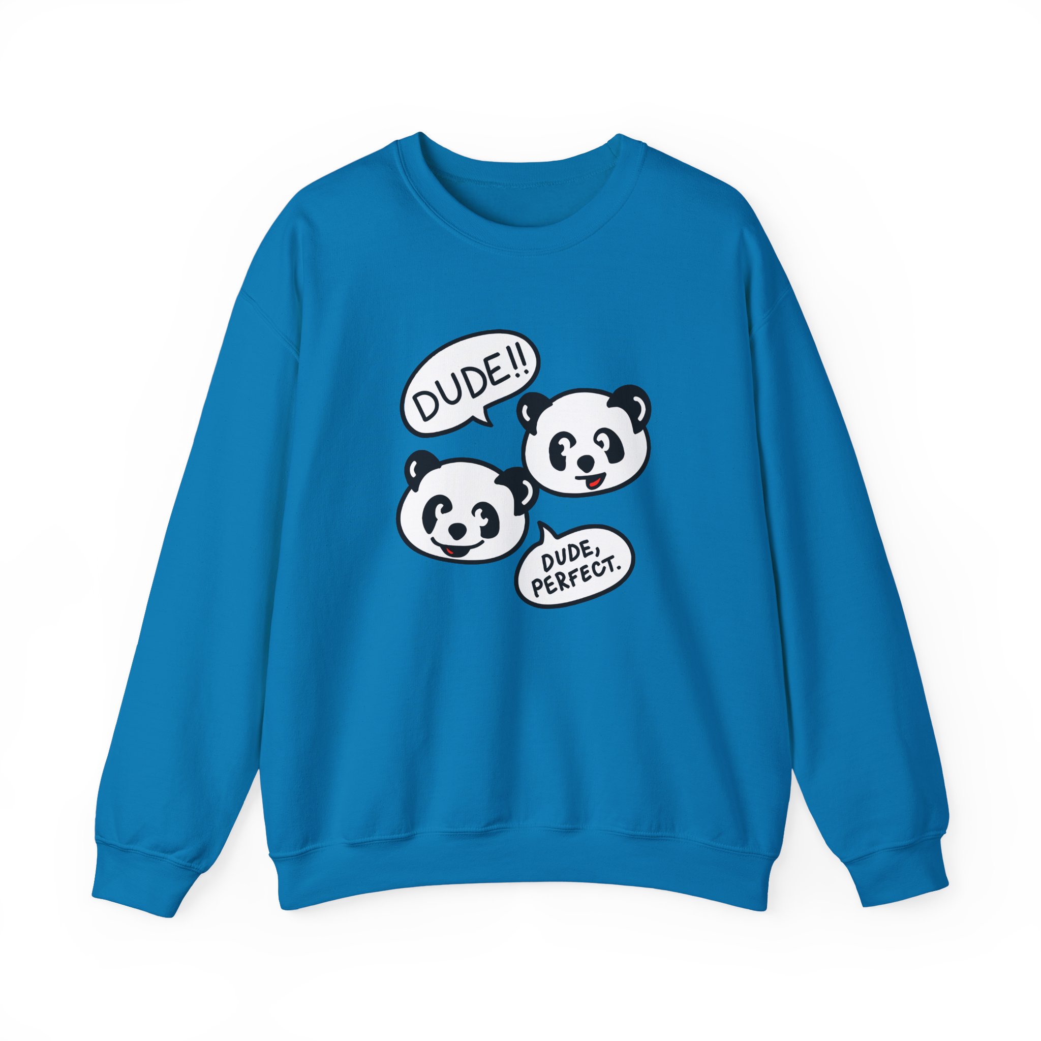 The Gildan 18000 sweatshirt is a Dude Perfect Panda Comic unisex heavy blend crewneck made from a 50/50 cotton-polyester fabric, combining softness with lasting durability. Its smooth surface supports crisp, vibrant prints and embroidery, while the ribbed-knit collar and reinforced cuffs help it keep its shape over time. A seamless body design reduces irritation and adds to overall comfort. Practical, sturdy, and print-friendly, the Gildan 18000 sweatshirt remains a top choice for custom apparel.