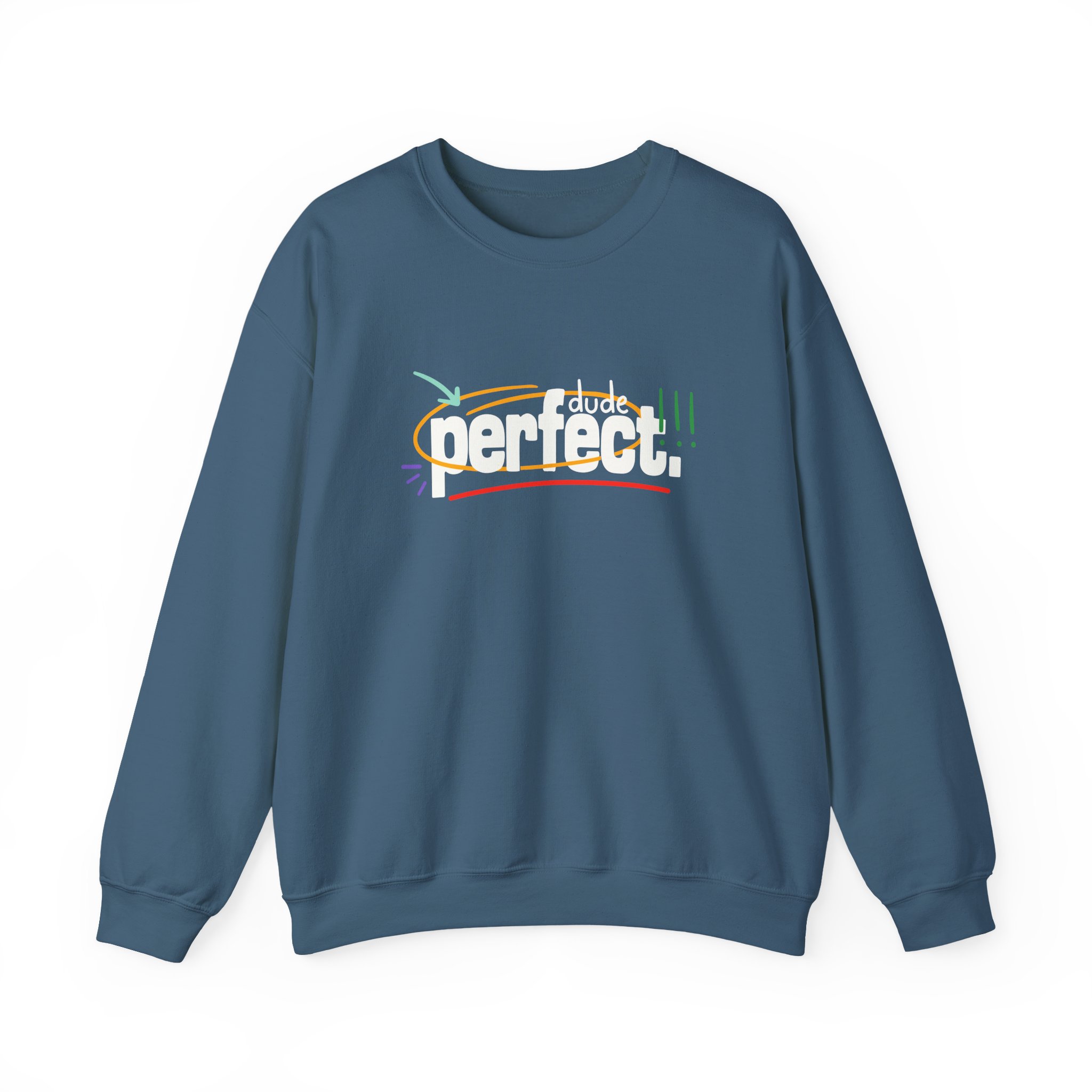 The Gildan 18000 sweatshirt is a Dude Perfect unisex heavy blend crewneck made from a 50/50 cotton-polyester fabric, combining softness with lasting durability. Its smooth surface supports crisp, vibrant prints and embroidery, while the ribbed-knit collar and reinforced cuffs help it keep its shape over time. A seamless body design reduces irritation and adds to overall comfort. Practical, sturdy, and print-friendly, the Gildan 18000 sweatshirt remains a top choice for custom apparel.