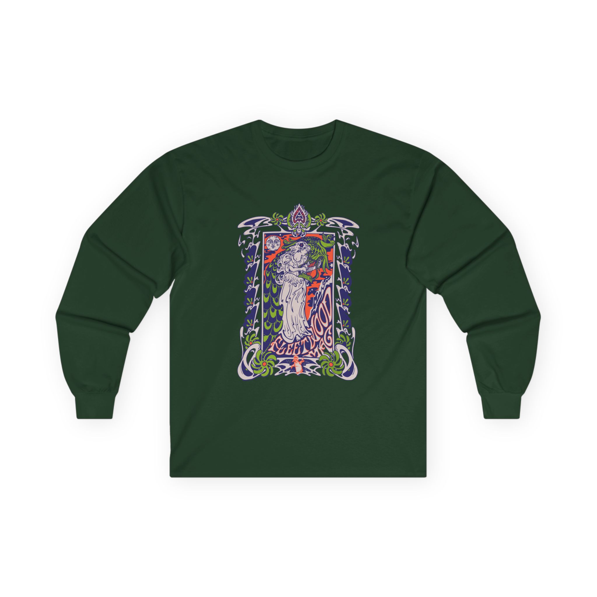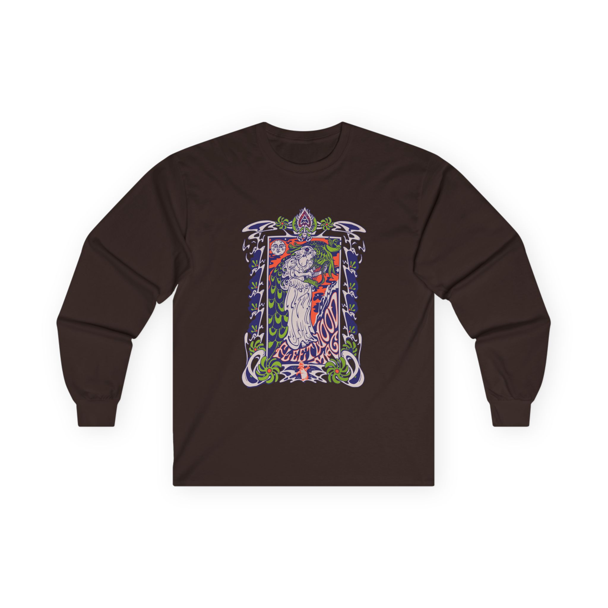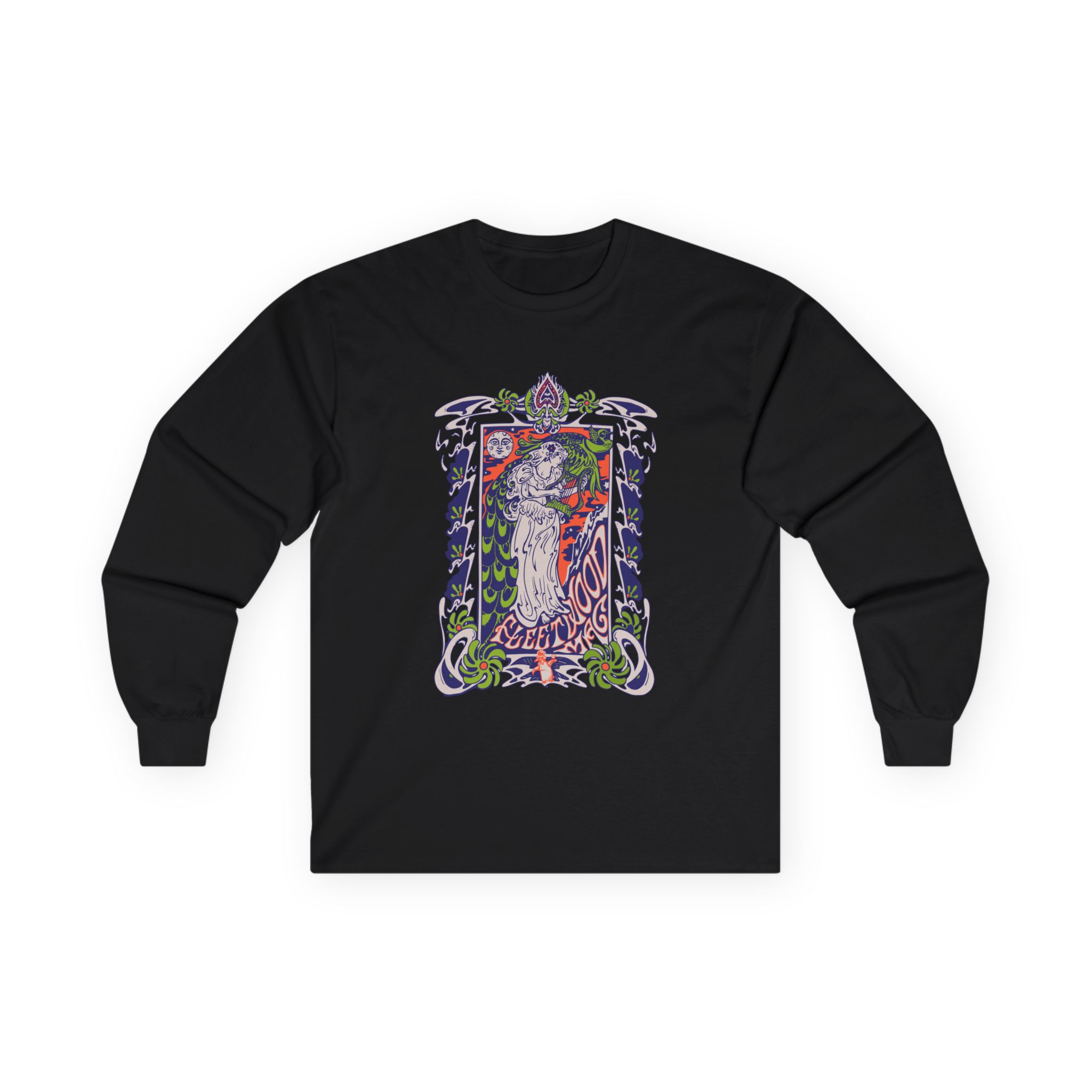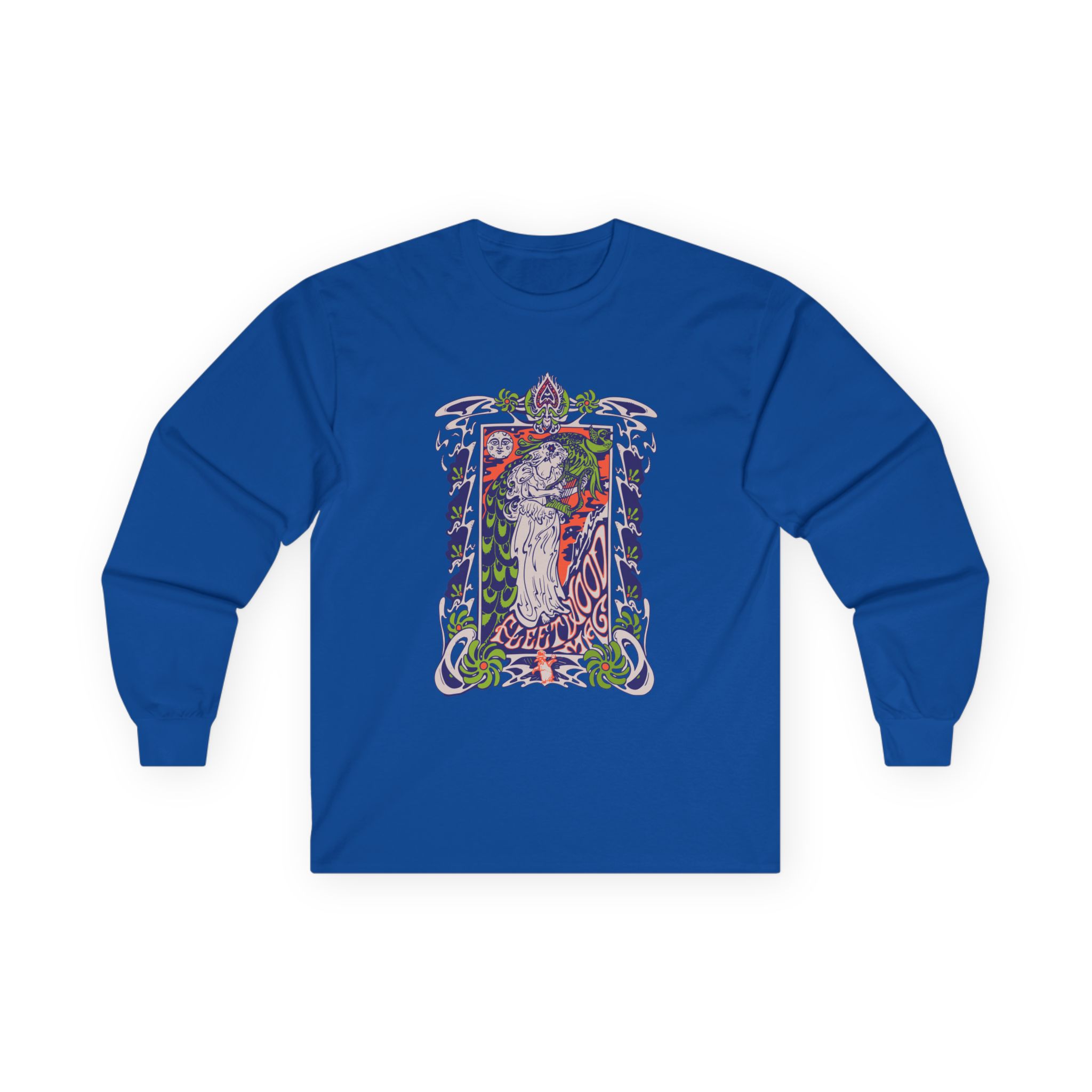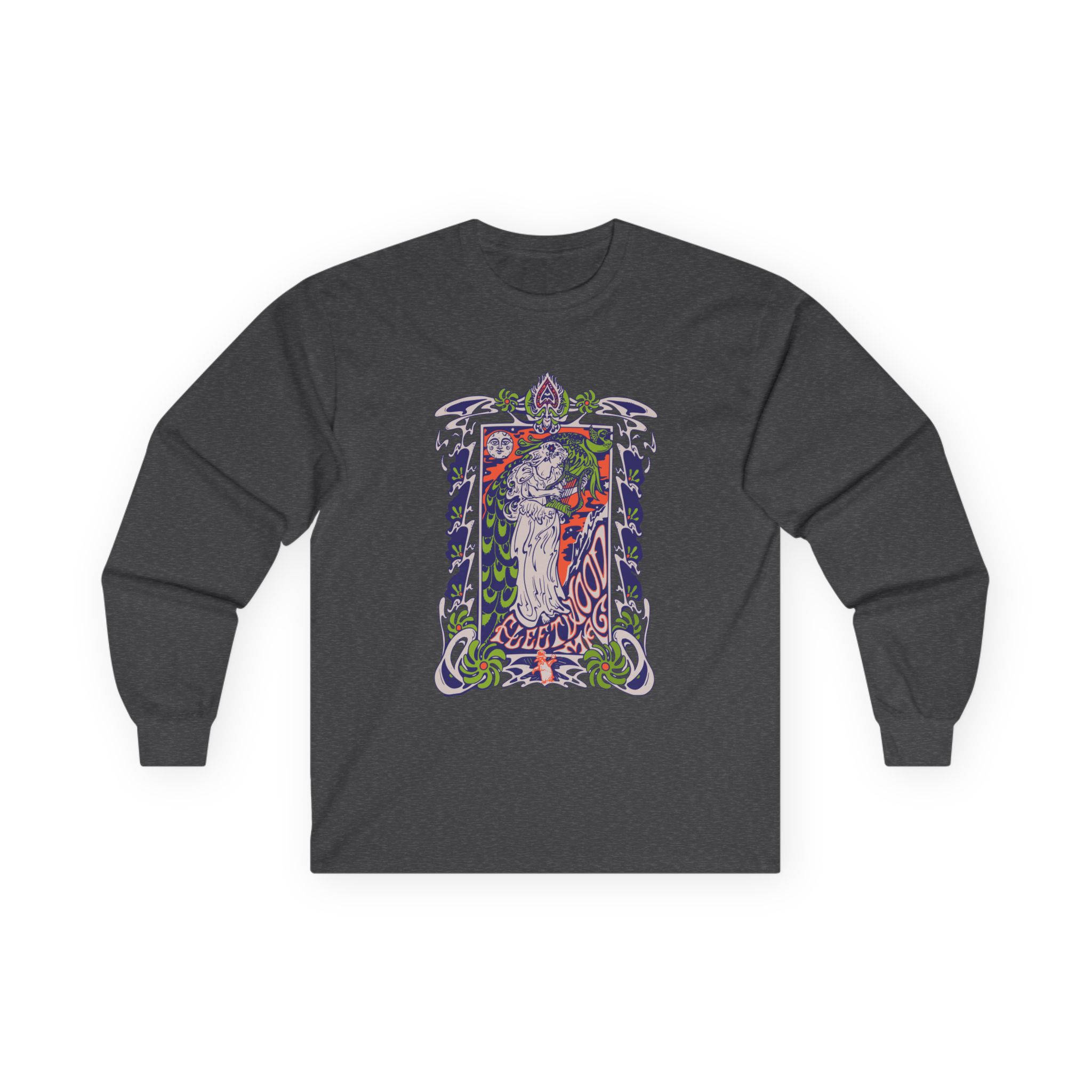 This Fleetwood Mac Lady Lyre long-sleeve tee brings vintage concert vibes to everyday wear. Soft yet substantial cotton and a classic, slightly boxy fit create a lived-in feel that layers well under jackets or stands alone. The front art—bold mirrored sunglasses, a painted blue nose and red lips—feels like a snapshot from an ’80s tour poster. Wear it to record-store hangs, low-key gigs, or when you want a guarded nod to music history without shouting. It’s the kind of shirt that feels like it already remembers a hundred nights out.