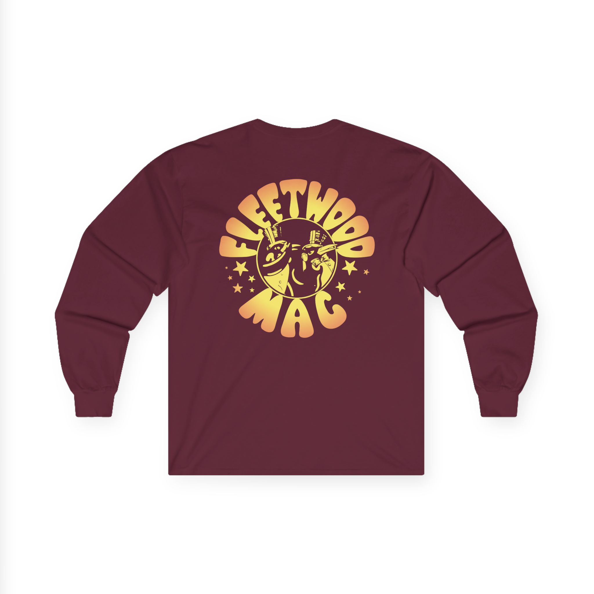 This Fleetwood Mac on Tour long-sleeve tee brings vintage concert vibes to everyday wear. Soft yet substantial cotton and a classic, slightly boxy fit create a lived-in feel that layers well under jackets or stands alone. The front art—bold mirrored sunglasses, a painted blue nose and red lips—feels like a snapshot from an ’80s tour poster. Wear it to record-store hangs, low-key gigs, or when you want a guarded nod to music history without shouting. It’s the kind of shirt that feels like it already remembers a hundred nights out.