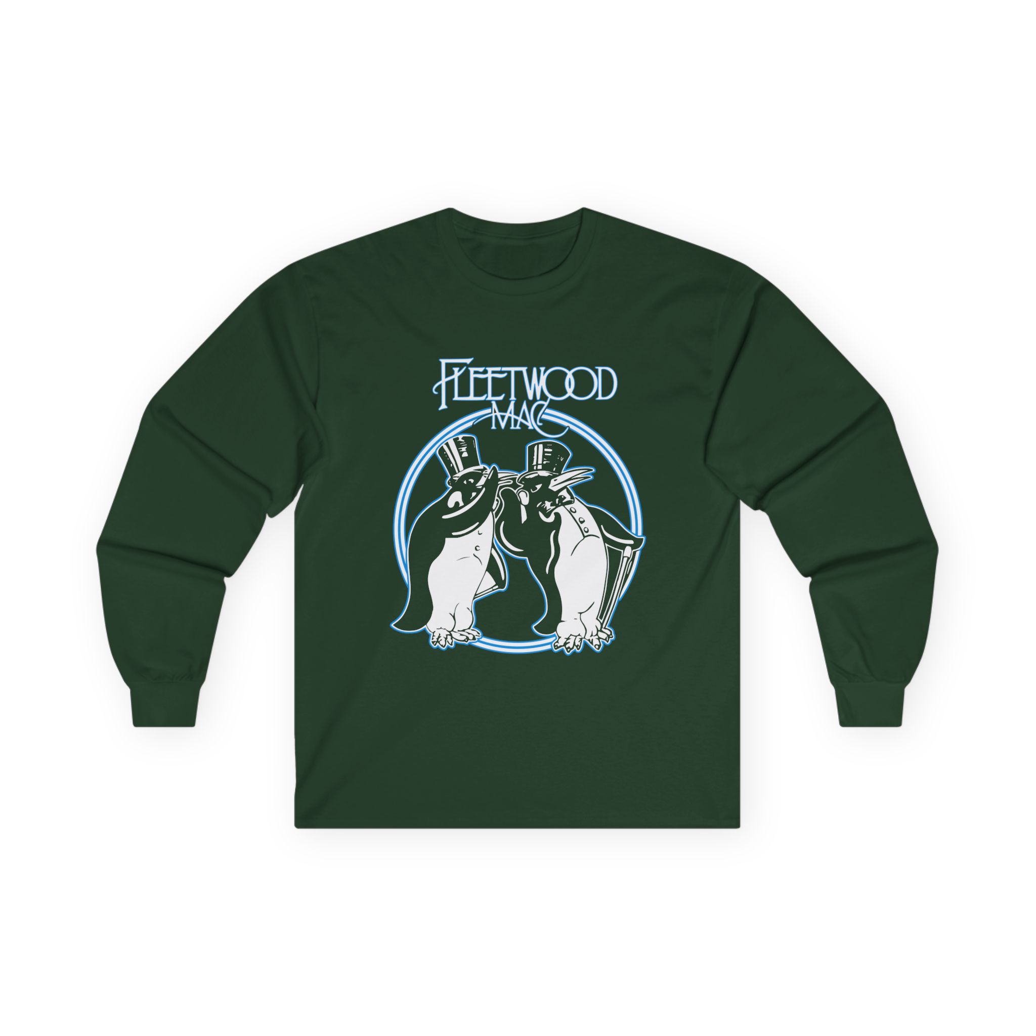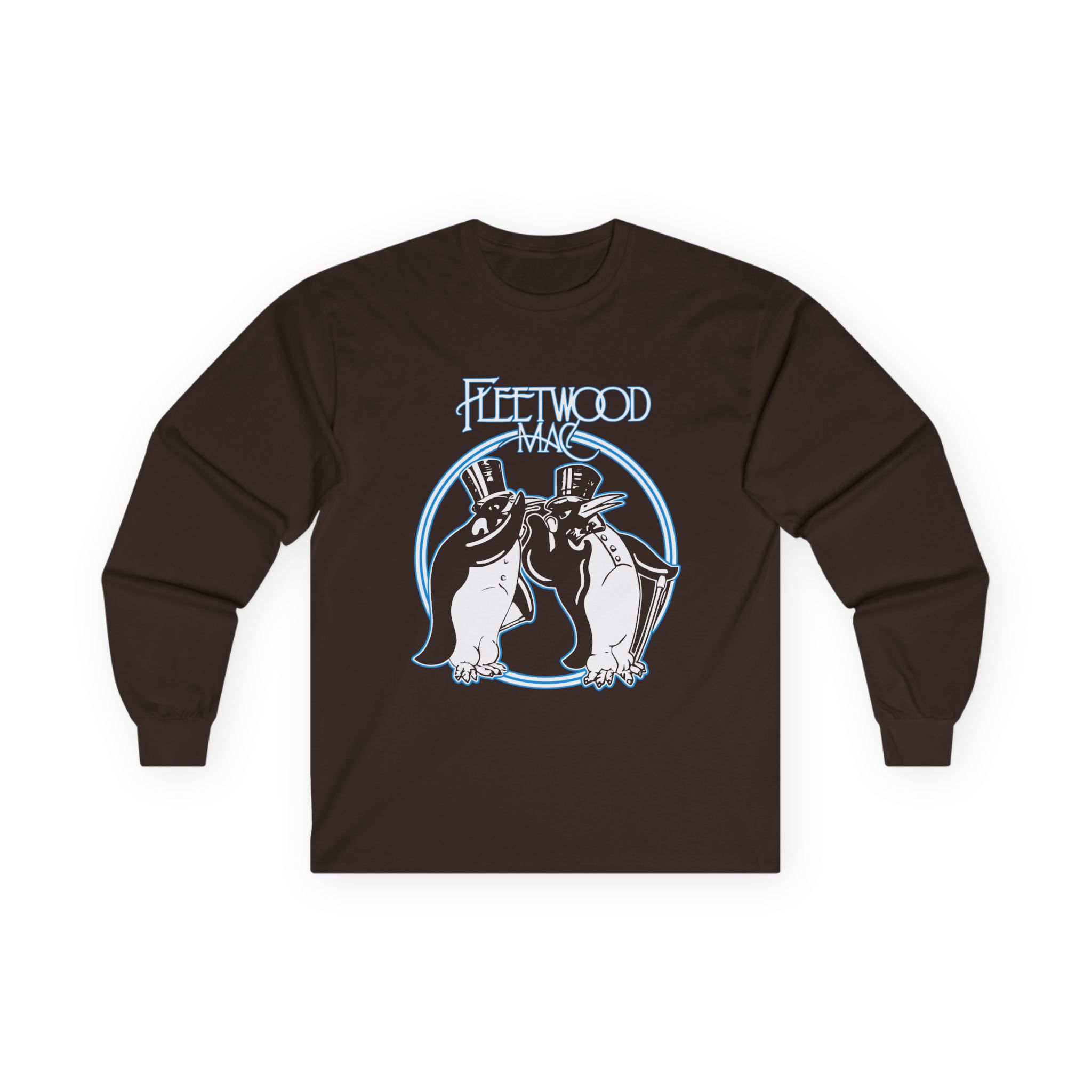 This Fleetwood Mac Penguin long-sleeve tee brings vintage concert vibes to everyday wear. Soft yet substantial cotton and a classic, slightly boxy fit create a lived-in feel that layers well under jackets or stands alone. The front art—bold mirrored sunglasses, a painted blue nose and red lips—feels like a snapshot from an ’80s tour poster. Wear it to record-store hangs, low-key gigs, or when you want a guarded nod to music history without shouting. It’s the kind of shirt that feels like it already remembers a hundred nights out.