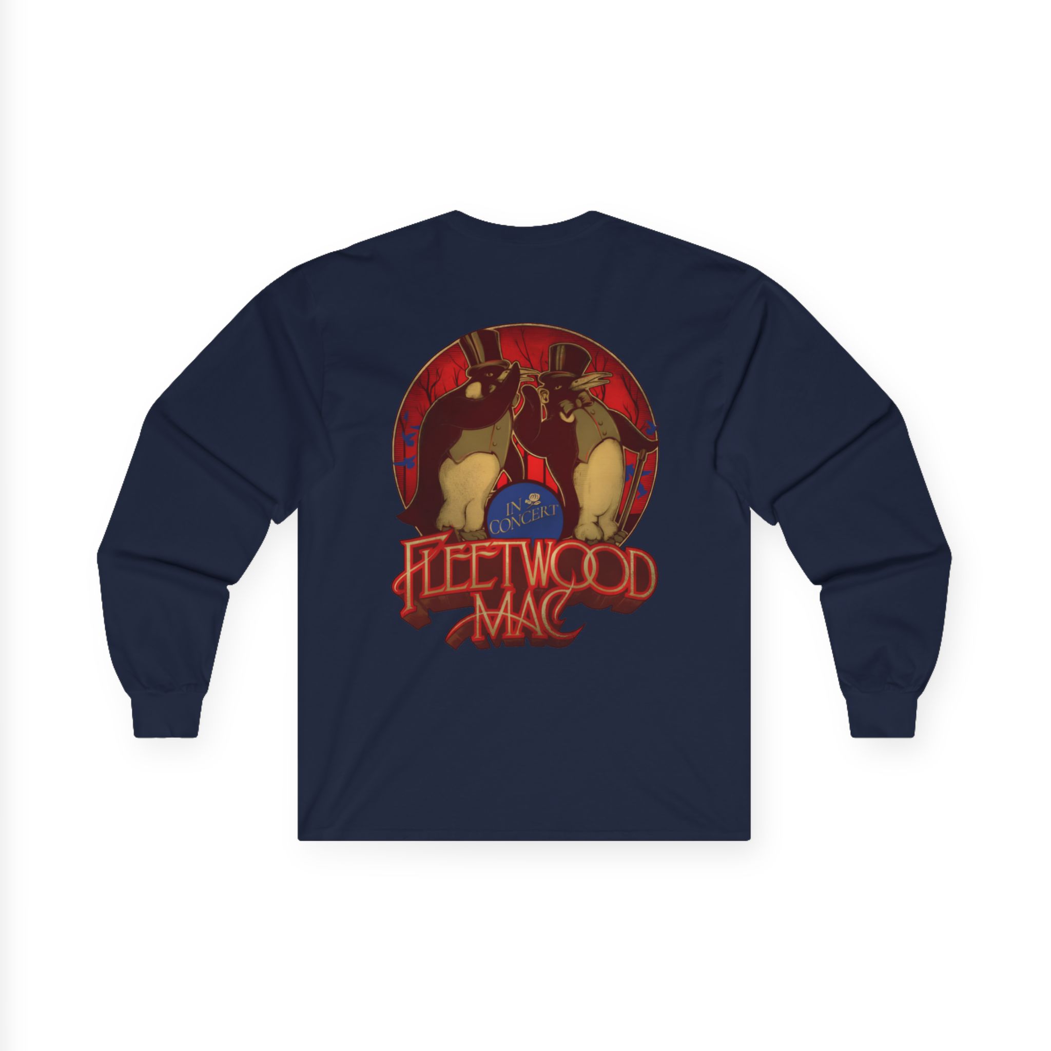 This Fleetwood Mac Penguin long-sleeve tee brings vintage concert vibes to everyday wear. Soft yet substantial cotton and a classic, slightly boxy fit create a lived-in feel that layers well under jackets or stands alone. The front art—bold mirrored sunglasses, a painted blue nose and red lips—feels like a snapshot from an ’80s tour poster. Wear it to record-store hangs, low-key gigs, or when you want a guarded nod to music history without shouting. It’s the kind of shirt that feels like it already remembers a hundred nights out.