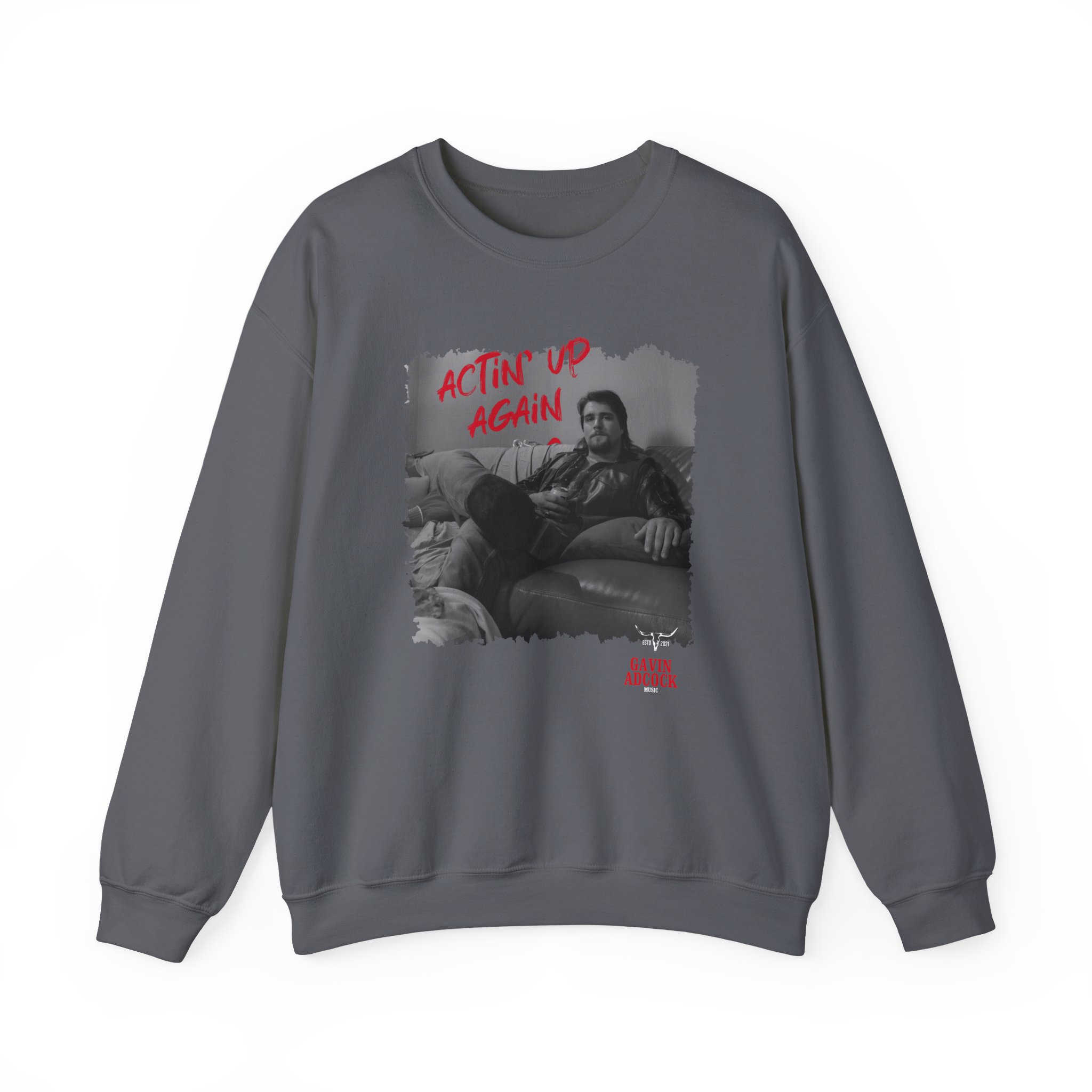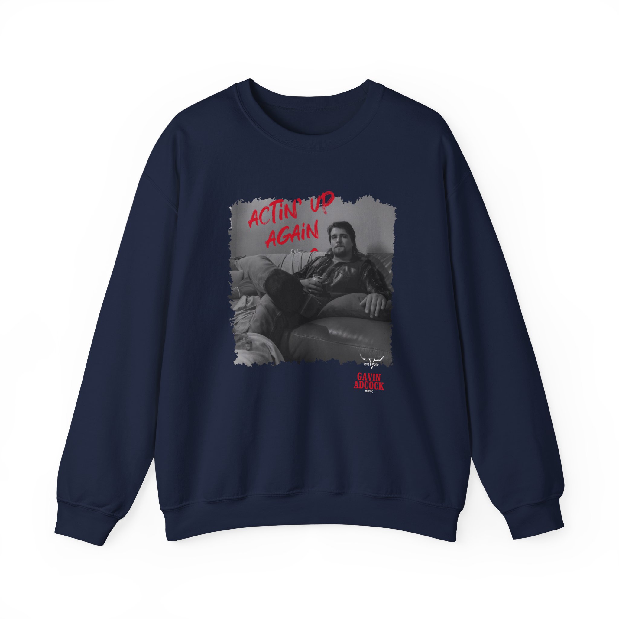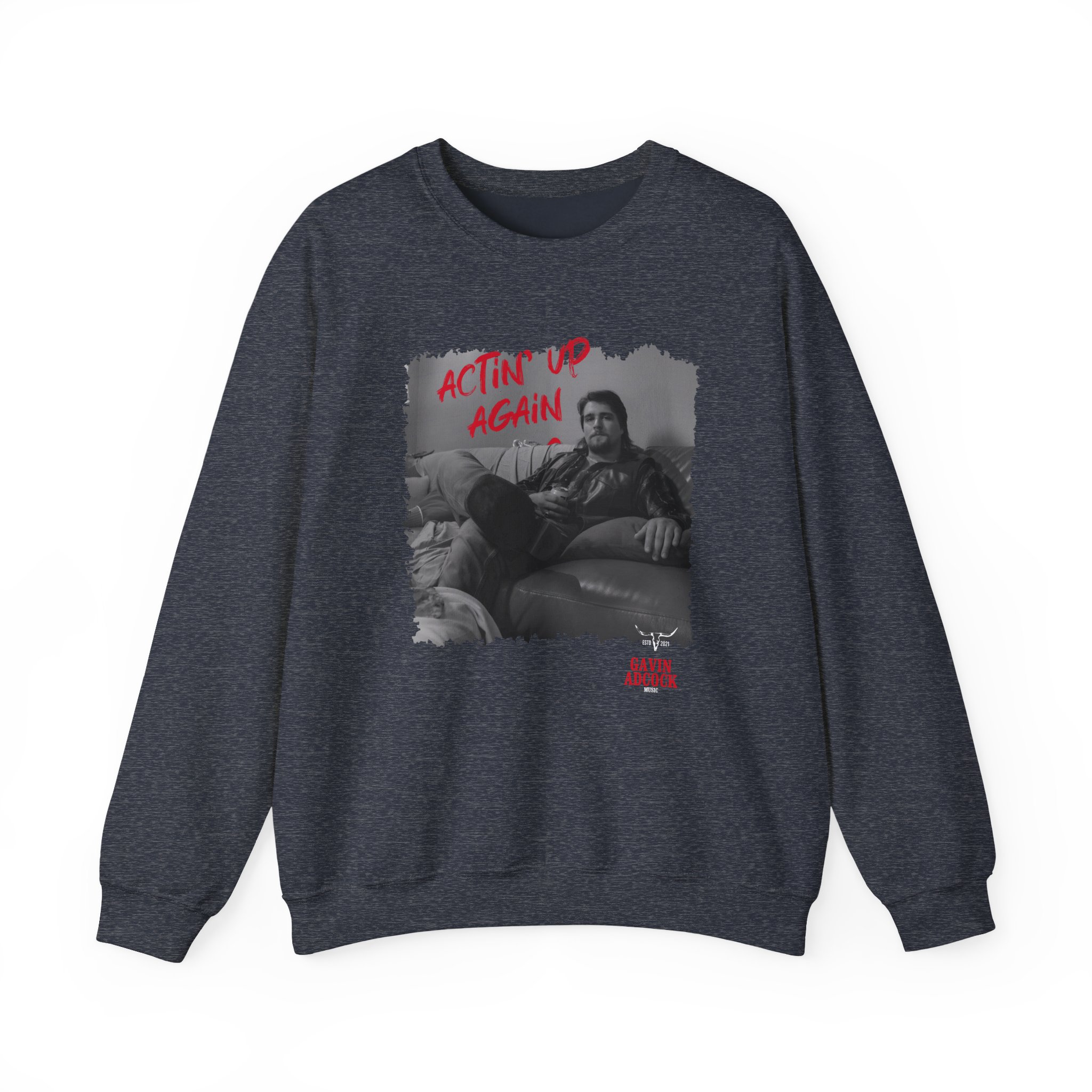 The Gildan 18000 sweatshirt is a Gavin Adcock Actin' Up Again Album unisex heavy blend crewneck made from a 50/50 cotton-polyester fabric, combining softness with lasting durability. Its smooth surface supports crisp, vibrant prints and embroidery, while the ribbed-knit collar and reinforced cuffs help it keep its shape over time. A seamless body design reduces irritation and adds to overall comfort. Practical, sturdy, and print-friendly, the Gildan 18000 sweatshirt remains a top choice for custom apparel.