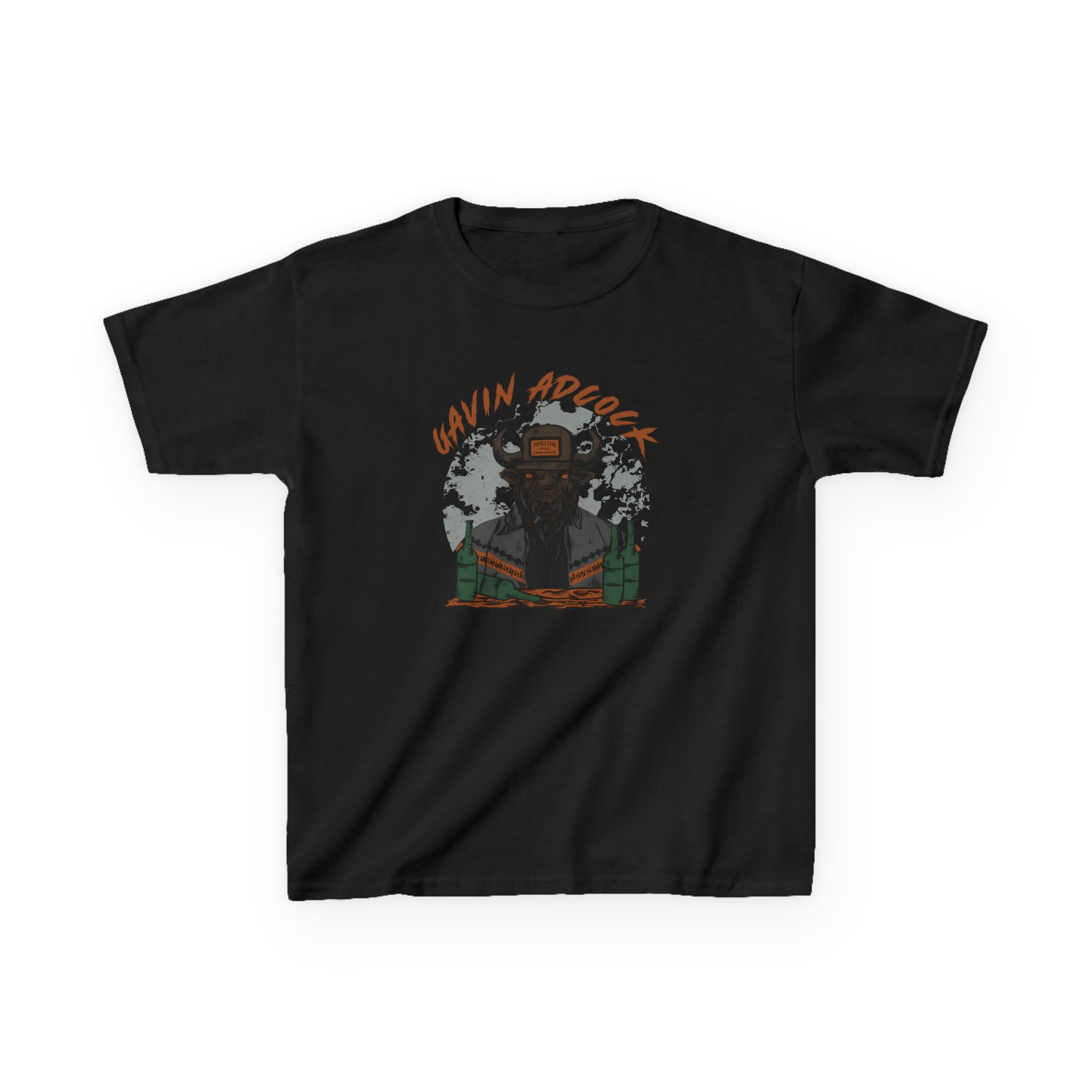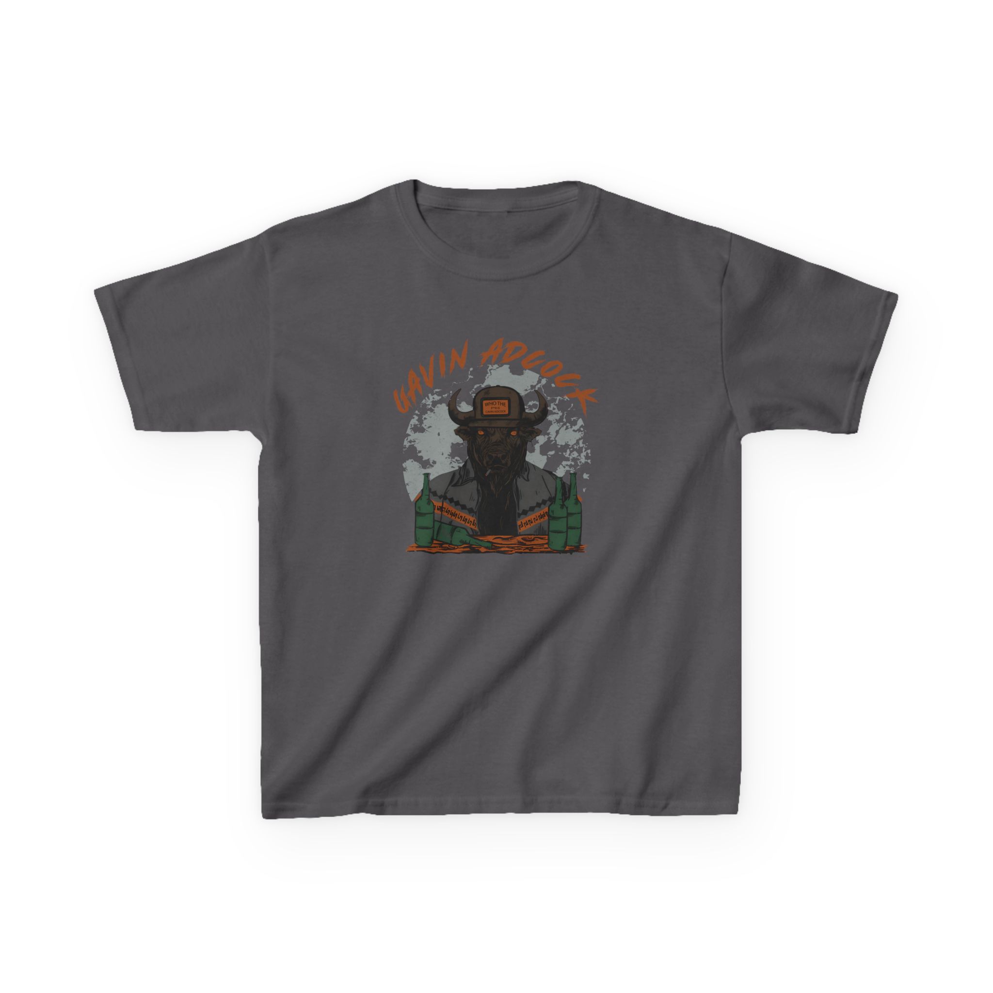 The kids heavy Gavin Adcock Graphite Bull cotton tee is perfect for everyday use. The fabric is 100% cotton for solid colors. Polyester is included for heather-color variants. These fabrics are prime materials for printing. The shoulders have twill tape for improved durability. The collar is curl resistant due to ribbed knitting. There are no seams along the sides.