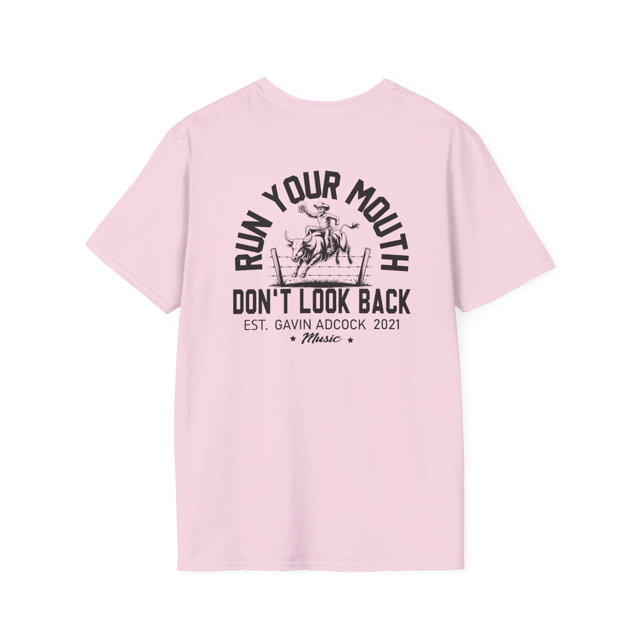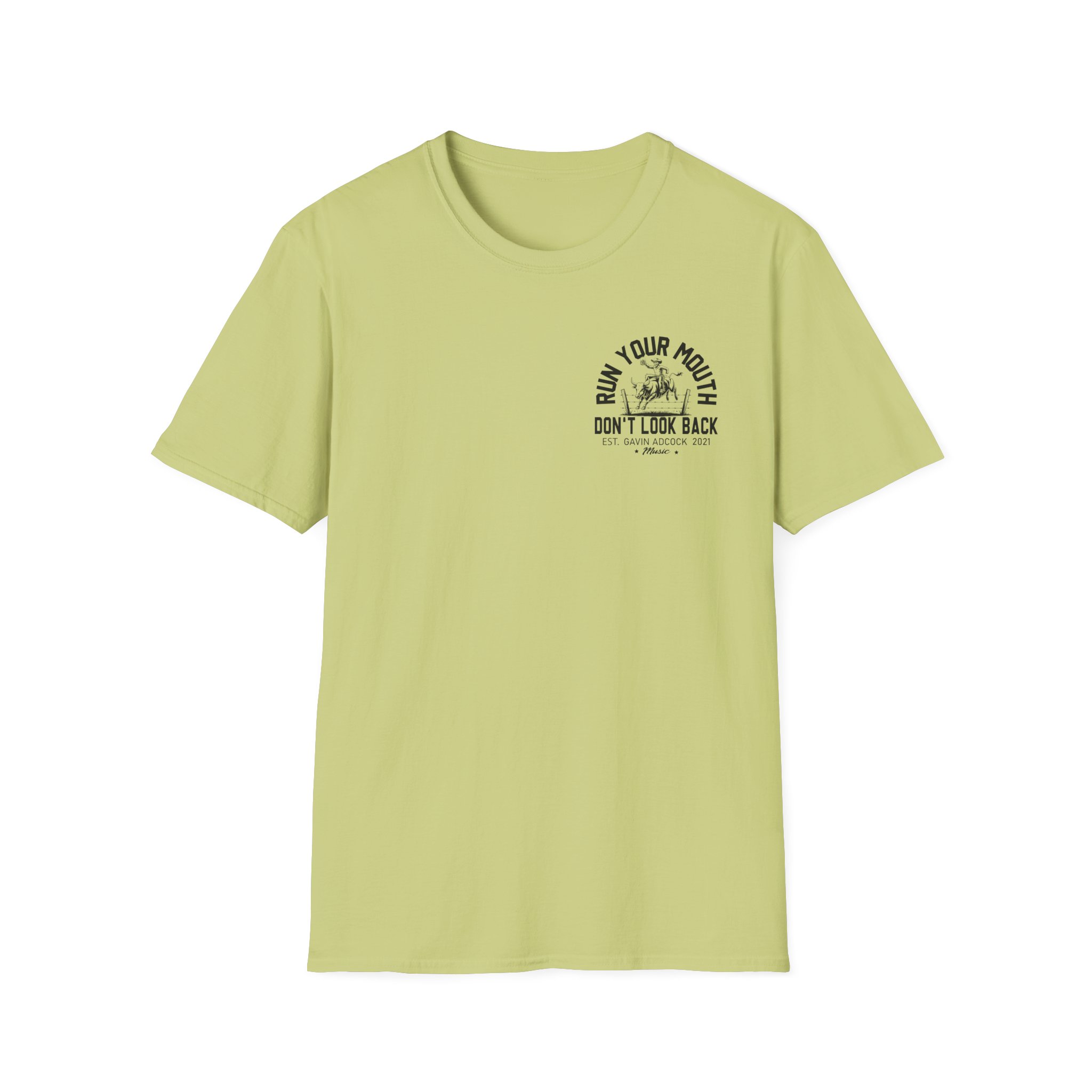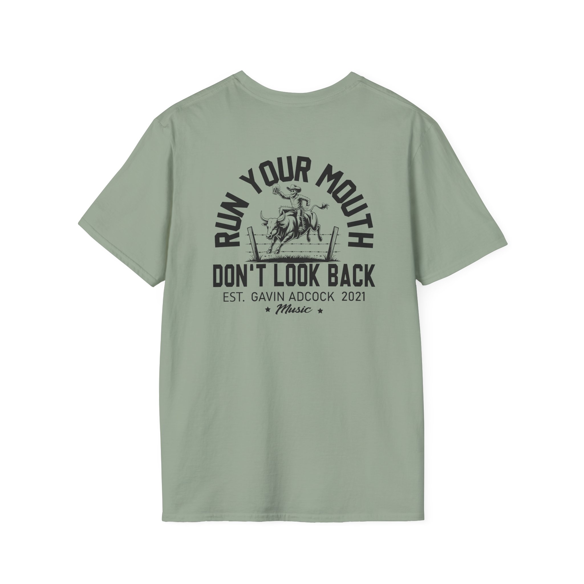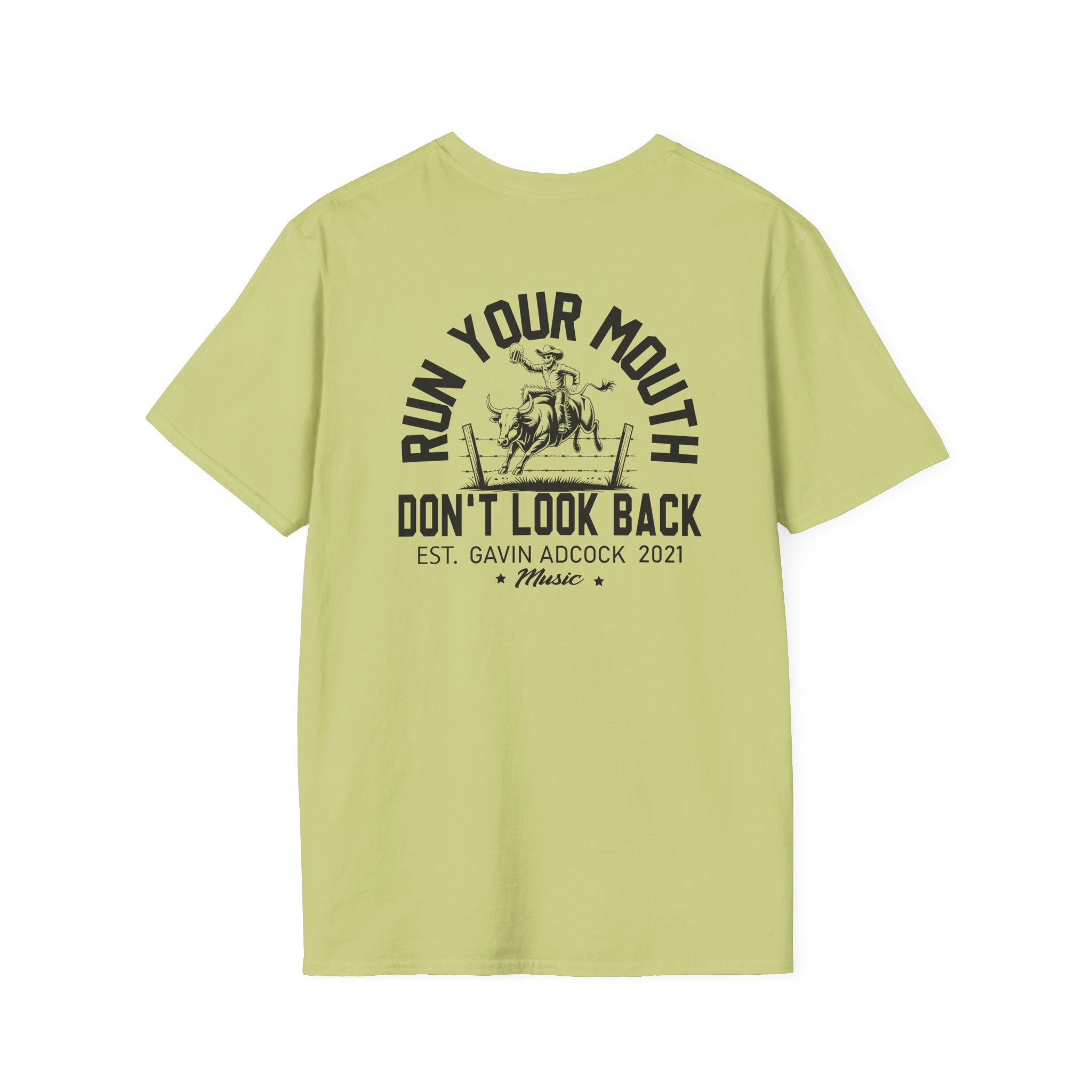 This lightweight, classic-fit tee carries a vintage tour-shirt look with hand-lettered script reading “Gavin Adcock Run Your Mouth” Soft ring-spun cotton and smooth printing make the graphic sit cleanly on the chest. Wear it to backyard shows, late-night drives, or when you want to bring a bit of road-worn Americana to a simple outfit. The crew neckline and tubular knit keep the silhouette neat, while shoulder tape and a ribbed collar hold the shape after many washes. It’s breathable, low-profile, and made to age with you—subtle black flecks appear on the Natural color for a lived-in feel.