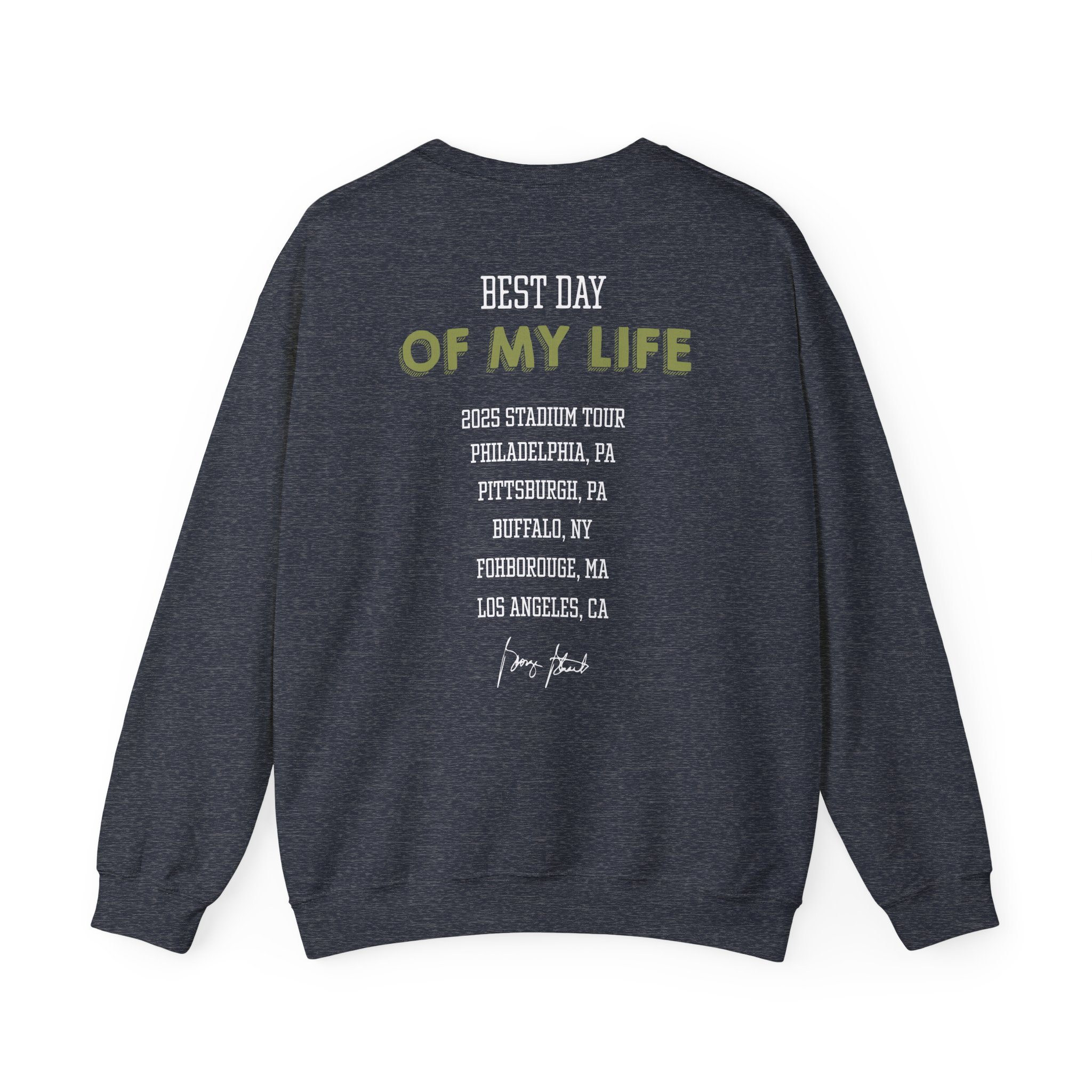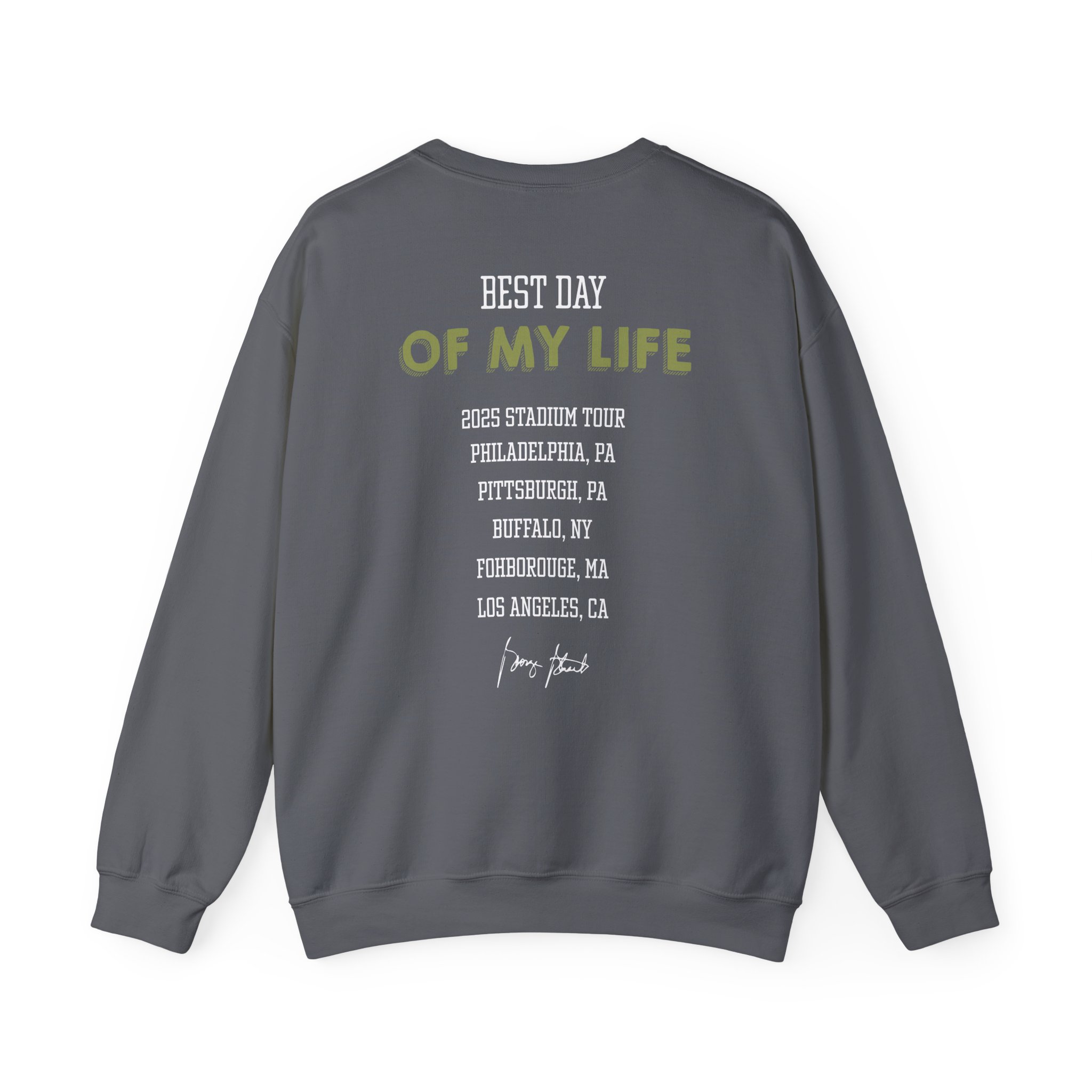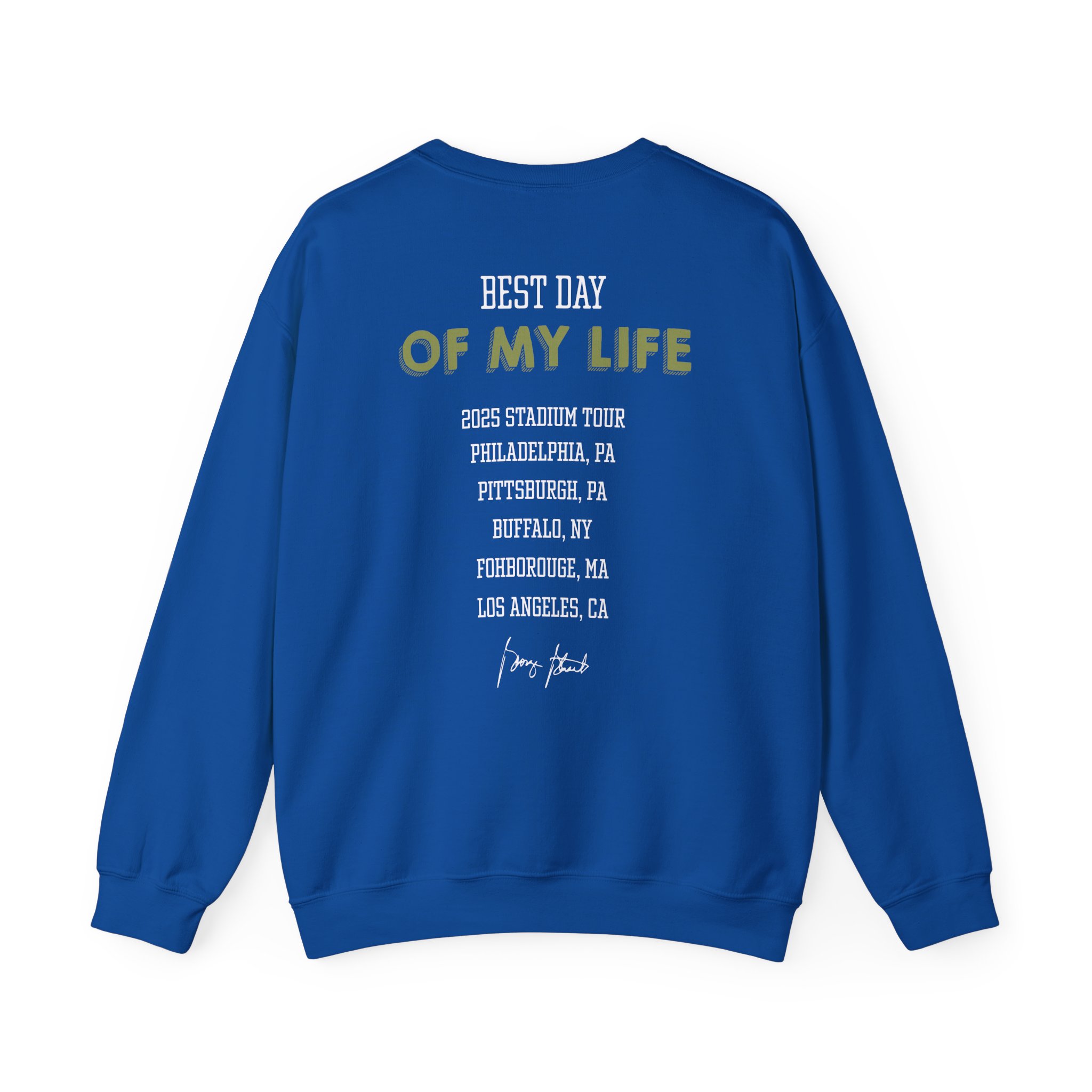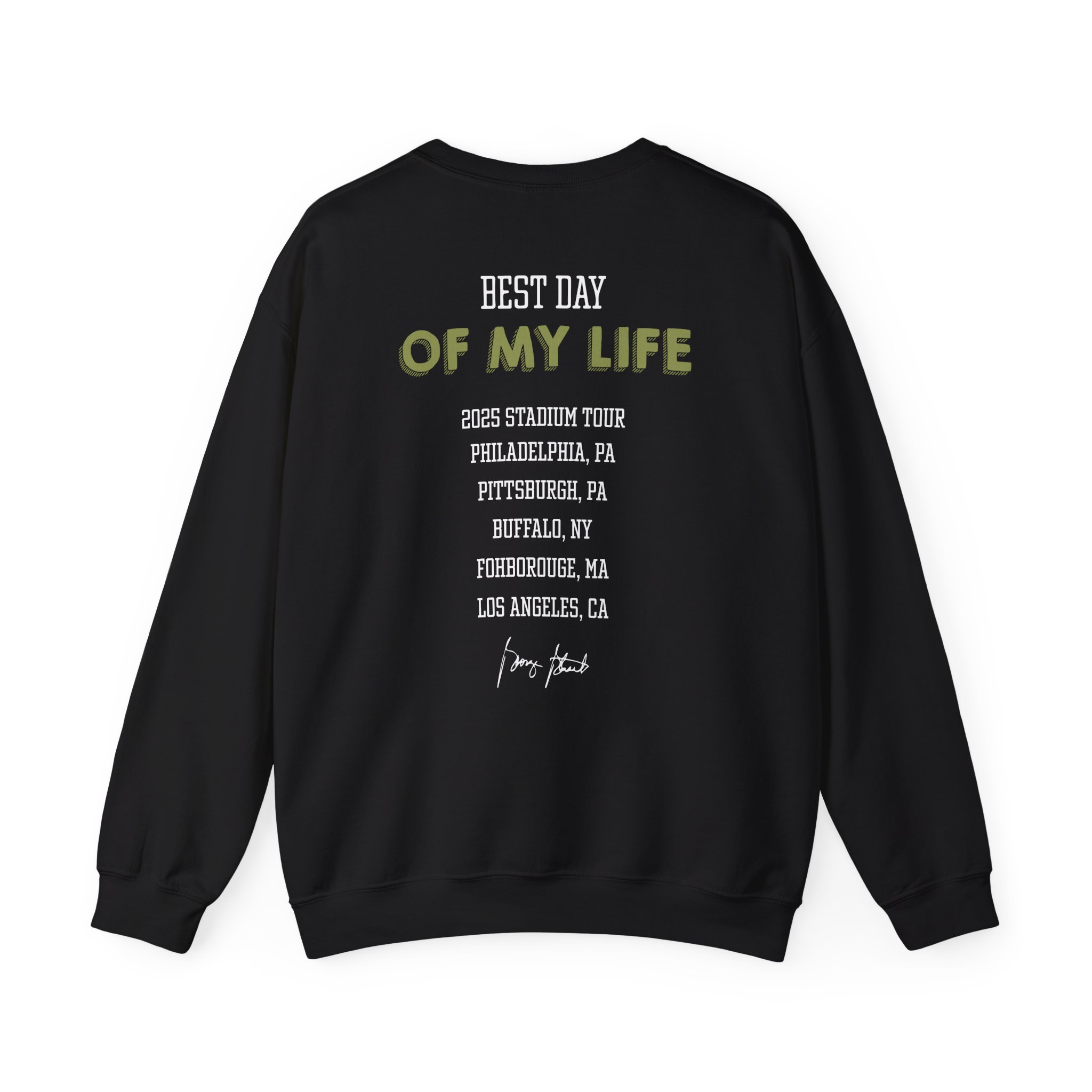 The Gildan 18000 sweatshirt is a George Strait Best Day of My Life unisex heavy blend crewneck made from a 50/50 cotton-polyester fabric, combining softness with lasting durability. Its smooth surface supports crisp, vibrant prints and embroidery, while the ribbed-knit collar and reinforced cuffs help it keep its shape over time. A seamless body design reduces irritation and adds to overall comfort. Practical, sturdy, and print-friendly, the Gildan 18000 sweatshirt remains a top choice for custom apparel.