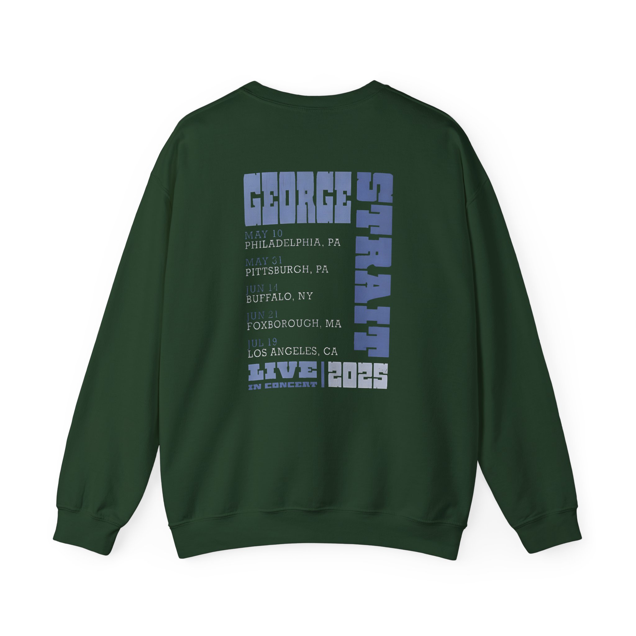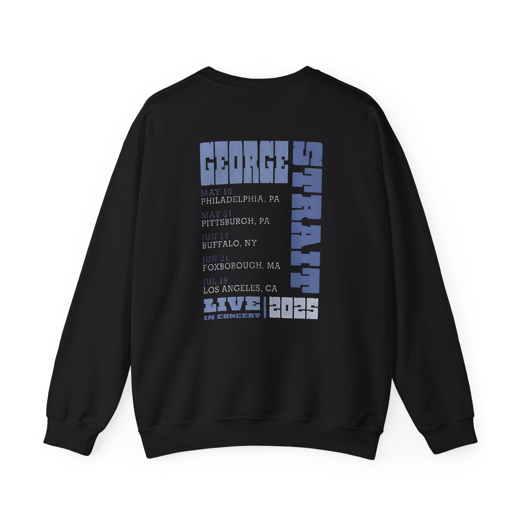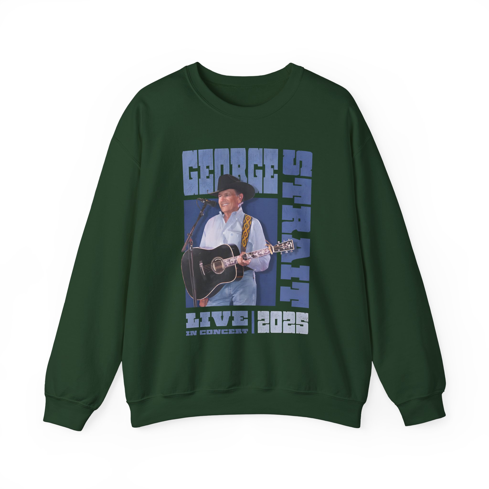 The Gildan 18000 sweatshirt is a George Strait Tour unisex heavy blend crewneck made from a 50/50 cotton-polyester fabric, combining softness with lasting durability. Its smooth surface supports crisp, vibrant prints and embroidery, while the ribbed-knit collar and reinforced cuffs help it keep its shape over time. A seamless body design reduces irritation and adds to overall comfort. Practical, sturdy, and print-friendly, the Gildan 18000 sweatshirt remains a top choice for custom apparel.