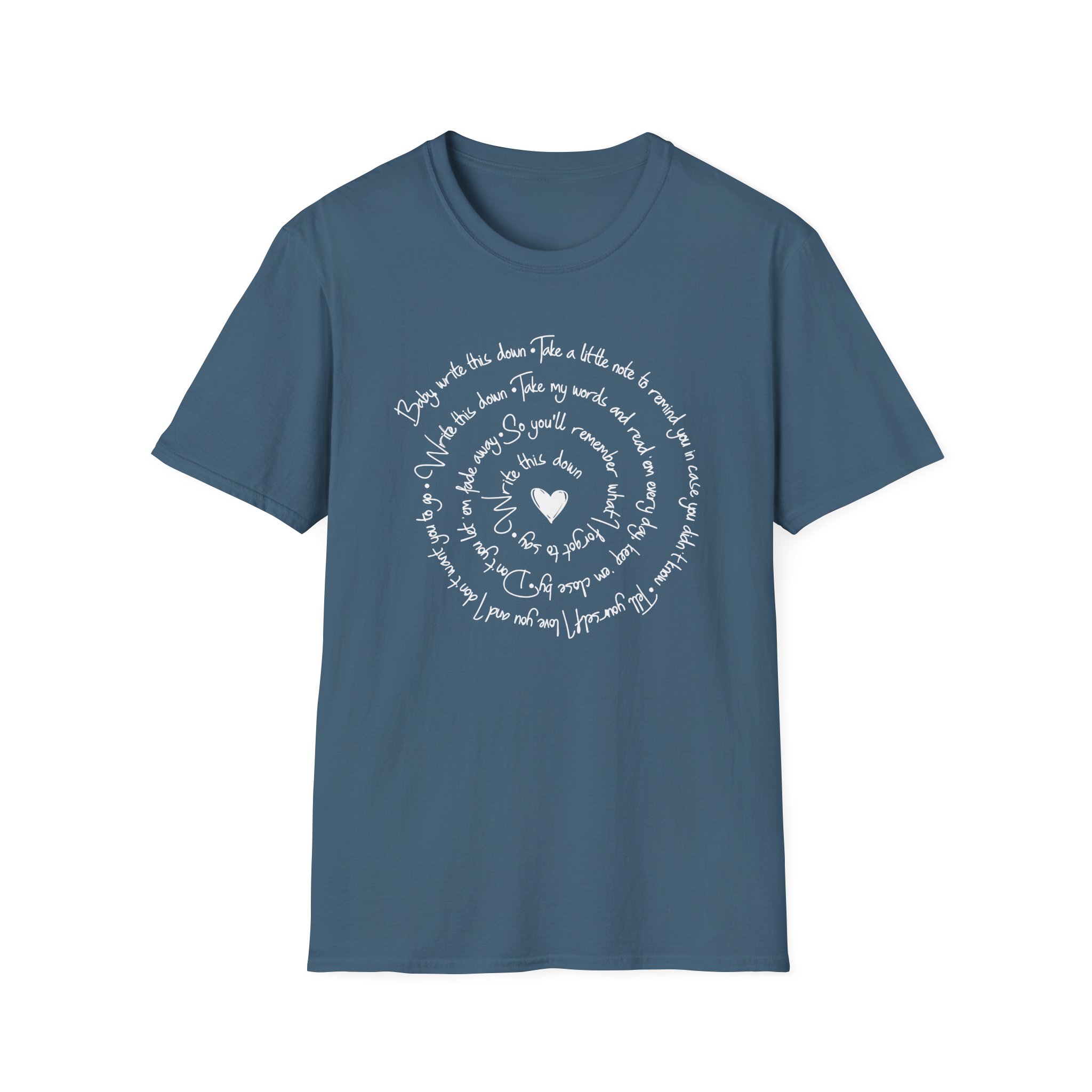 This lightweight, classic-fit tee carries a vintage tour-shirt look with hand-lettered script reading “George Strait Wine Write This Down” Soft ring-spun cotton and smooth printing make the graphic sit cleanly on the chest. Wear it to backyard shows, late-night drives, or when you want to bring a bit of road-worn Americana to a simple outfit. The crew neckline and tubular knit keep the silhouette neat, while shoulder tape and a ribbed collar hold the shape after many washes. It’s breathable, low-profile, and made to age with you—subtle black flecks appear on the Natural color for a lived-in feel.