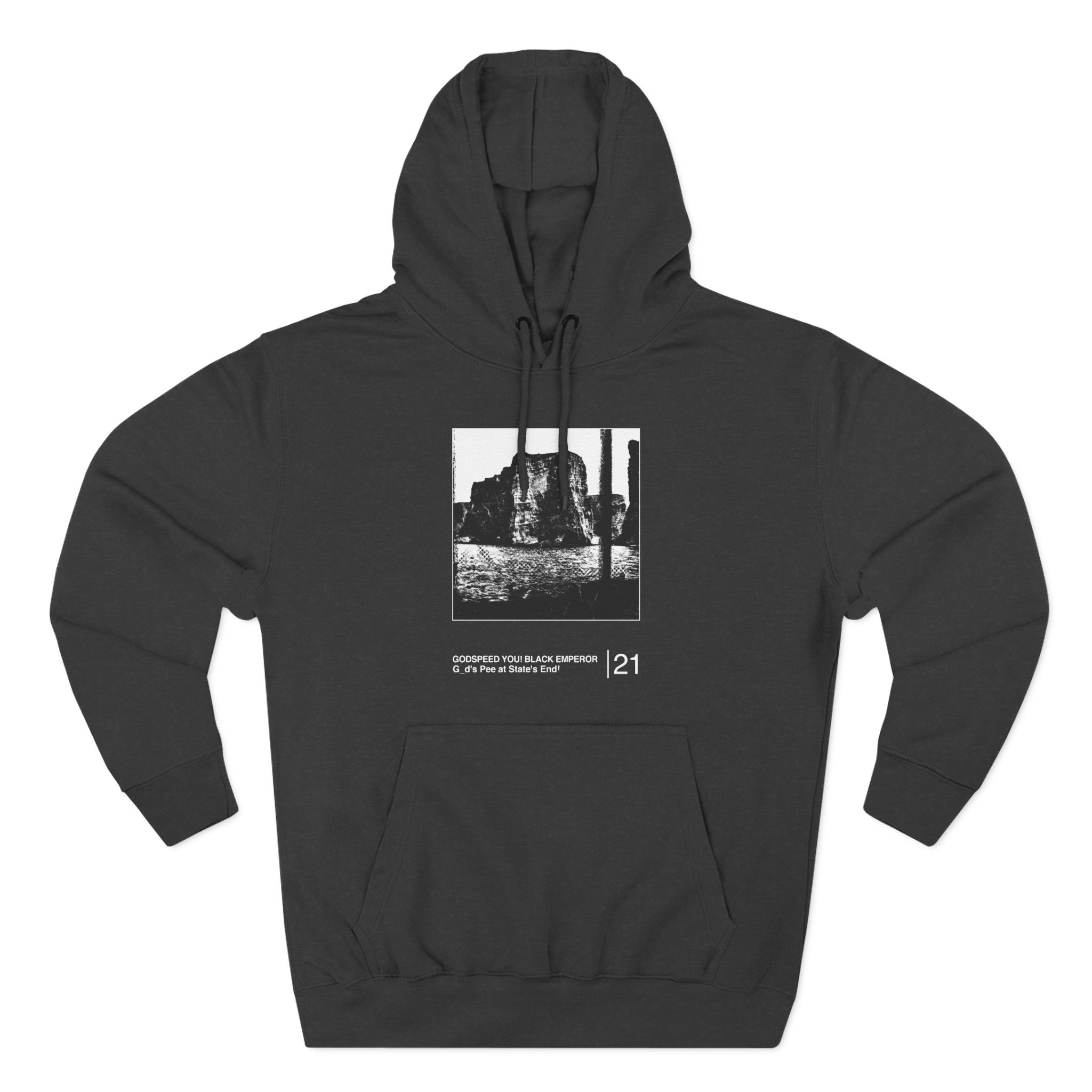 This Godspeed You Black Emperor charcoal fleece hoodie settles into your rotation like an old friend — soft, weighty, and quietly bold. The three-panel hood and adjustable drawcord frame your face on blustery mornings. A roomy kangaroo pocket keeps hands warm and holds what you need for a quick walk or a late-night errand. The front artwork sits low and distressed, giving the piece a lived-in, slightly rebellious vibe that works whether you’re heading to a gig, a practice, or a coffee run. Built with sturdy double-needle seams and a soft 3-end fleece interior, it wears well over years of wear and washes while keeping its shape.