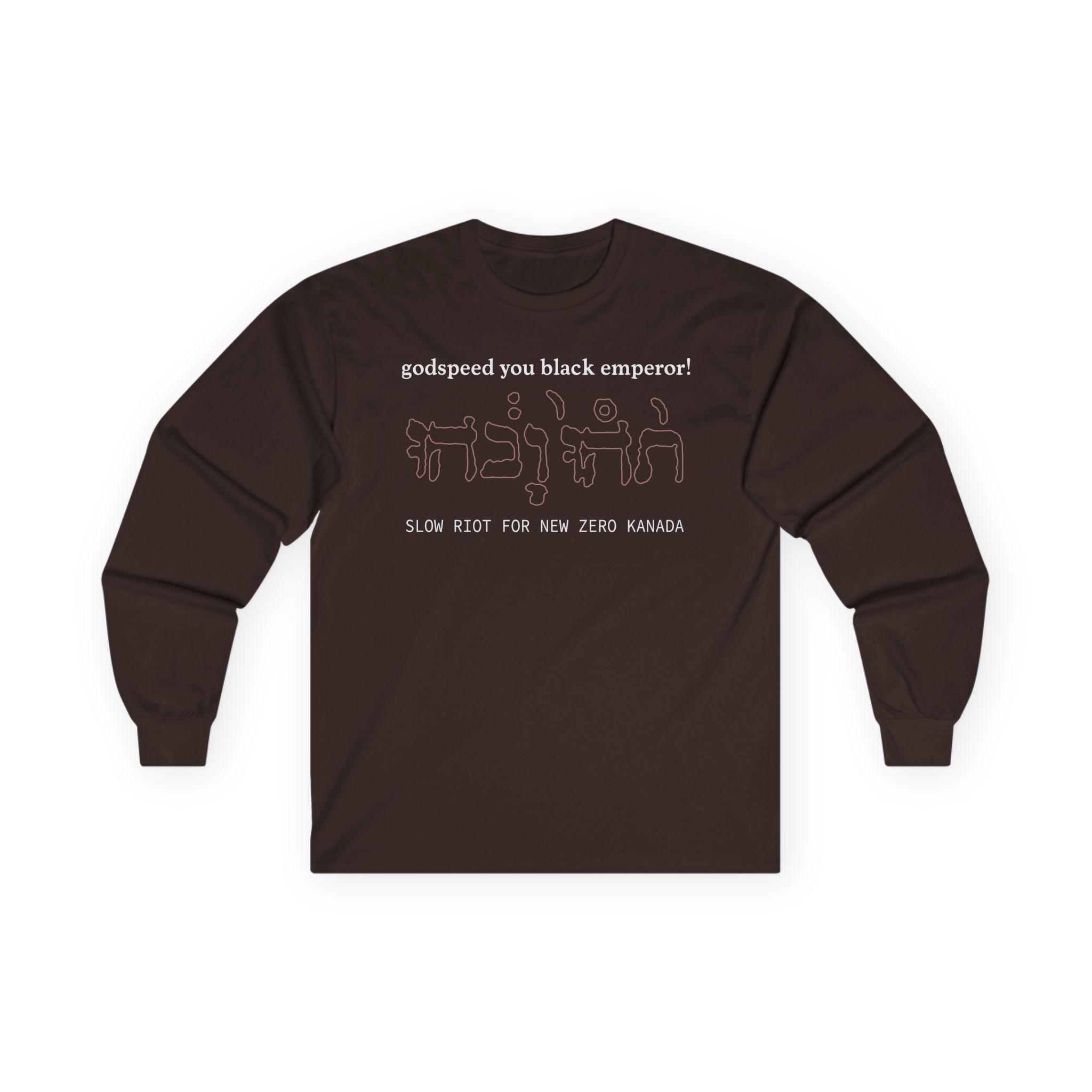This Godspeed You Black Emperor long-sleeve tee brings vintage concert vibes to everyday wear. Soft yet substantial cotton and a classic, slightly boxy fit create a lived-in feel that layers well under jackets or stands alone. The front art—bold mirrored sunglasses, a painted blue nose and red lips—feels like a snapshot from an ’80s tour poster. Wear it to record-store hangs, low-key gigs, or when you want a guarded nod to music history without shouting. It’s the kind of shirt that feels like it already remembers a hundred nights out.