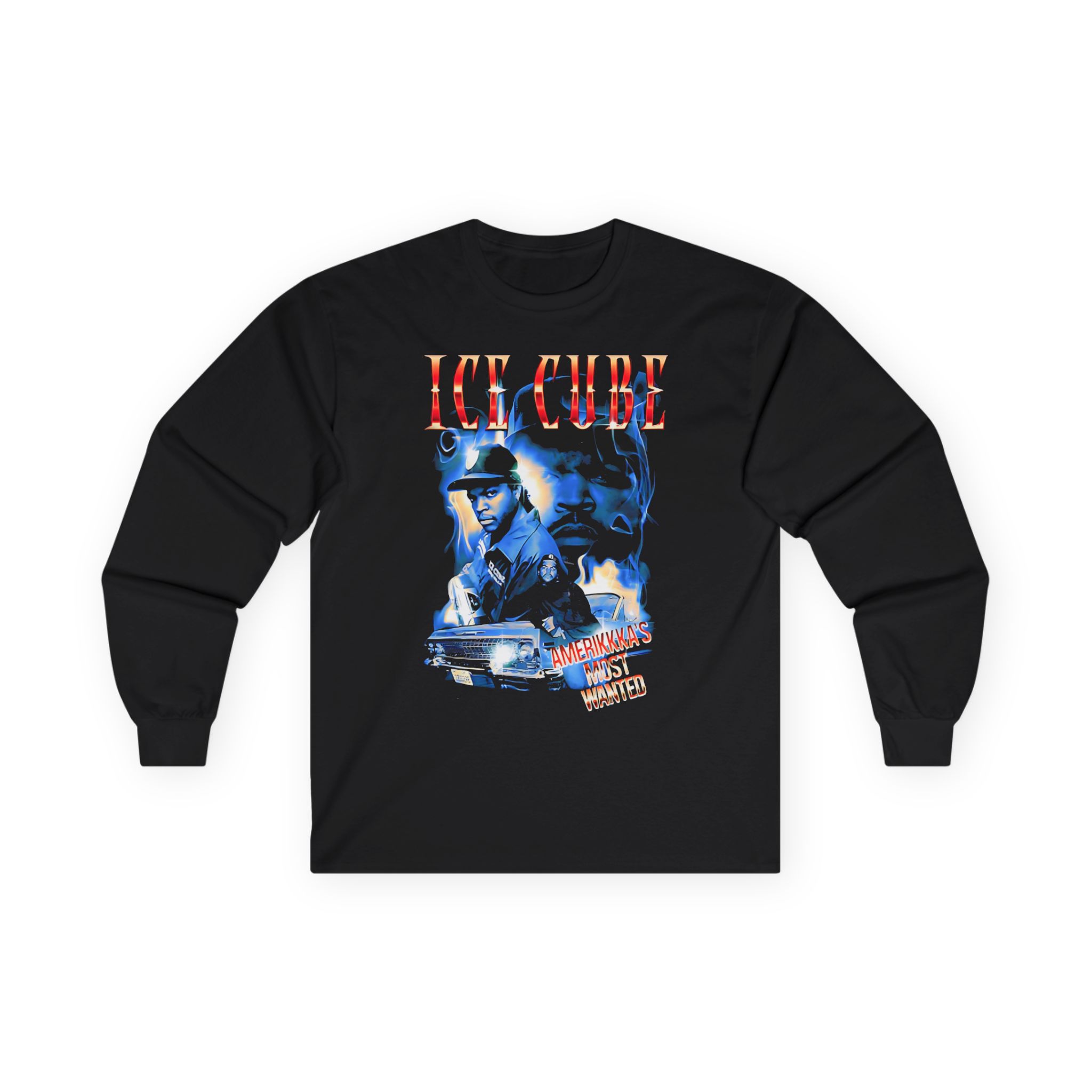 This Ice Cube AMW Smoky Collage long-sleeve tee brings vintage concert vibes to everyday wear. Soft yet substantial cotton and a classic, slightly boxy fit create a lived-in feel that layers well under jackets or stands alone. The front art—bold mirrored sunglasses, a painted blue nose and red lips—feels like a snapshot from an ’80s tour poster. Wear it to record-store hangs, low-key gigs, or when you want a guarded nod to music history without shouting. It’s the kind of shirt that feels like it already remembers a hundred nights out.