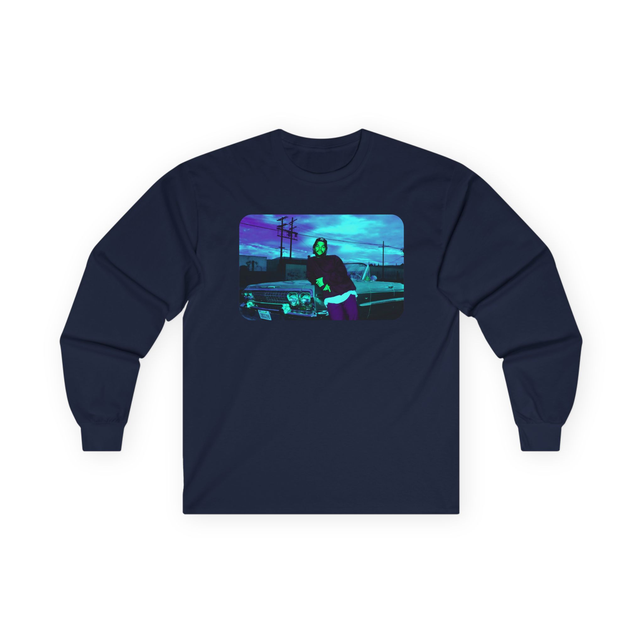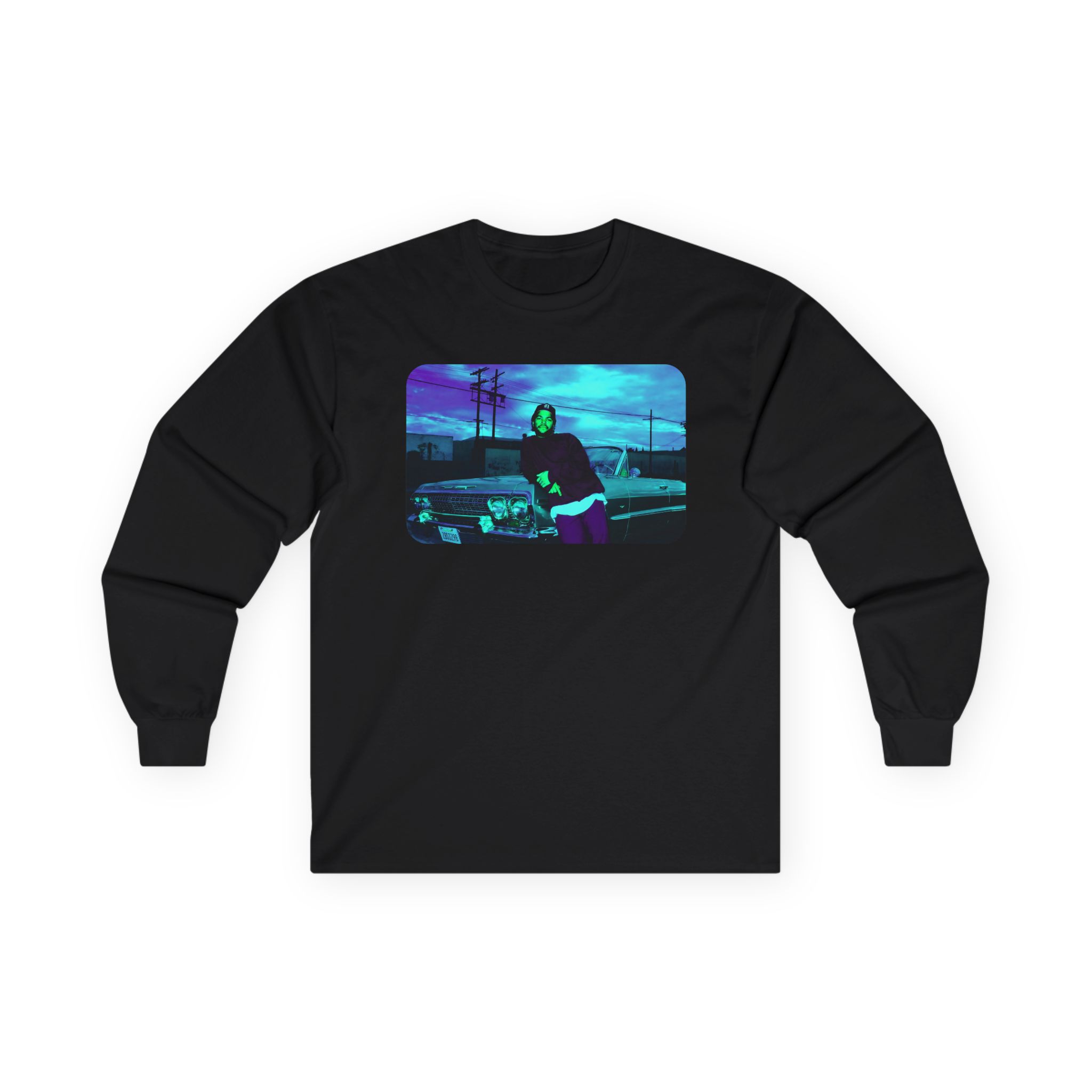 This Ice Cube Impala Lean long-sleeve tee brings vintage concert vibes to everyday wear. Soft yet substantial cotton and a classic, slightly boxy fit create a lived-in feel that layers well under jackets or stands alone. The front art—bold mirrored sunglasses, a painted blue nose and red lips—feels like a snapshot from an ’80s tour poster. Wear it to record-store hangs, low-key gigs, or when you want a guarded nod to music history without shouting. It’s the kind of shirt that feels like it already remembers a hundred nights out.