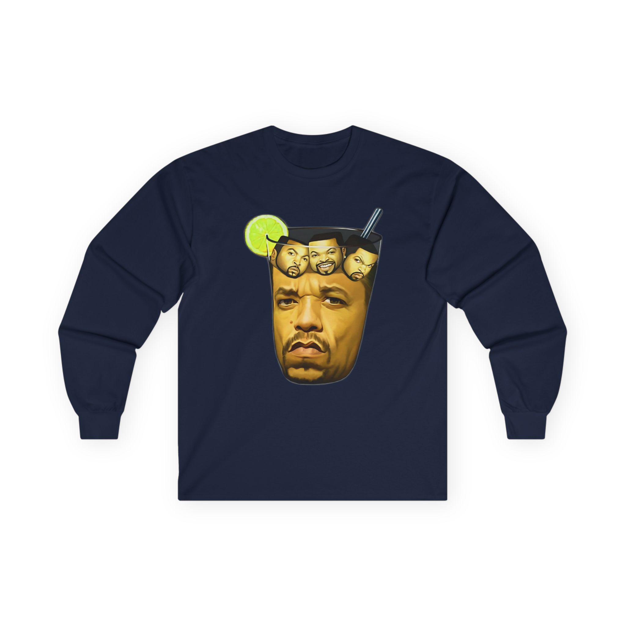 This Ice Cube In Iced Tea long-sleeve tee brings vintage concert vibes to everyday wear. Soft yet substantial cotton and a classic, slightly boxy fit create a lived-in feel that layers well under jackets or stands alone. The front art—bold mirrored sunglasses, a painted blue nose and red lips—feels like a snapshot from an ’80s tour poster. Wear it to record-store hangs, low-key gigs, or when you want a guarded nod to music history without shouting. It’s the kind of shirt that feels like it already remembers a hundred nights out.