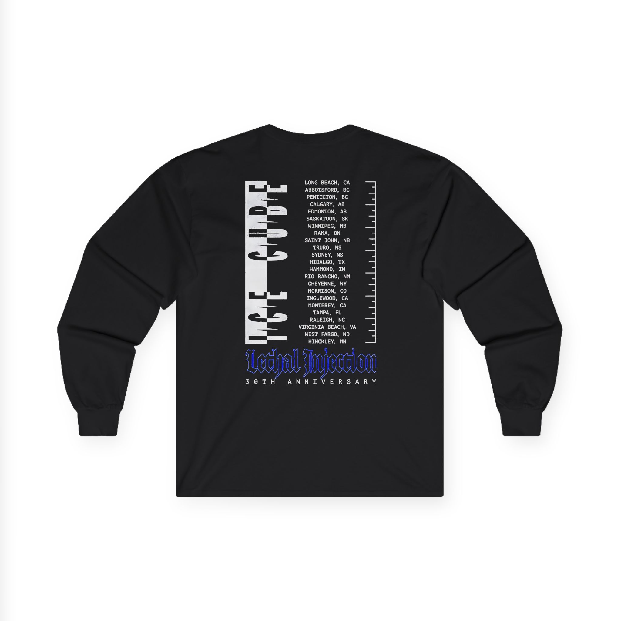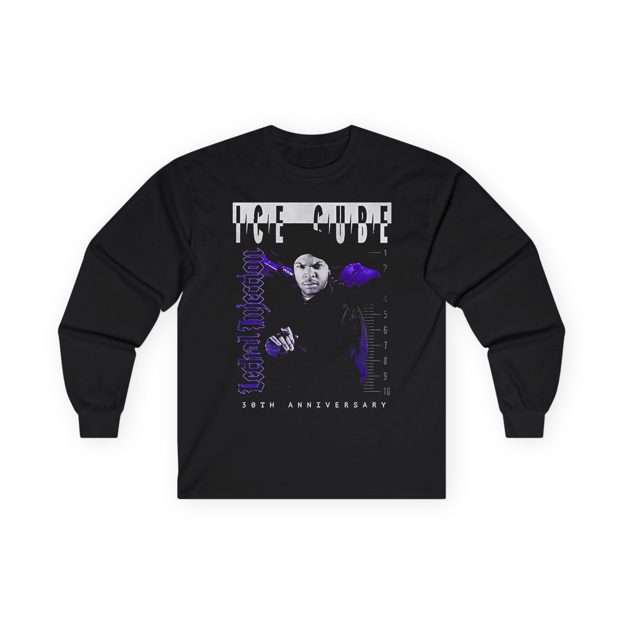This Ice Cube Lethal Injection Tour long-sleeve tee brings vintage concert vibes to everyday wear. Soft yet substantial cotton and a classic, slightly boxy fit create a lived-in feel that layers well under jackets or stands alone. The front art—bold mirrored sunglasses, a painted blue nose and red lips—feels like a snapshot from an ’80s tour poster. Wear it to record-store hangs, low-key gigs, or when you want a guarded nod to music history without shouting. It’s the kind of shirt that feels like it already remembers a hundred nights out.