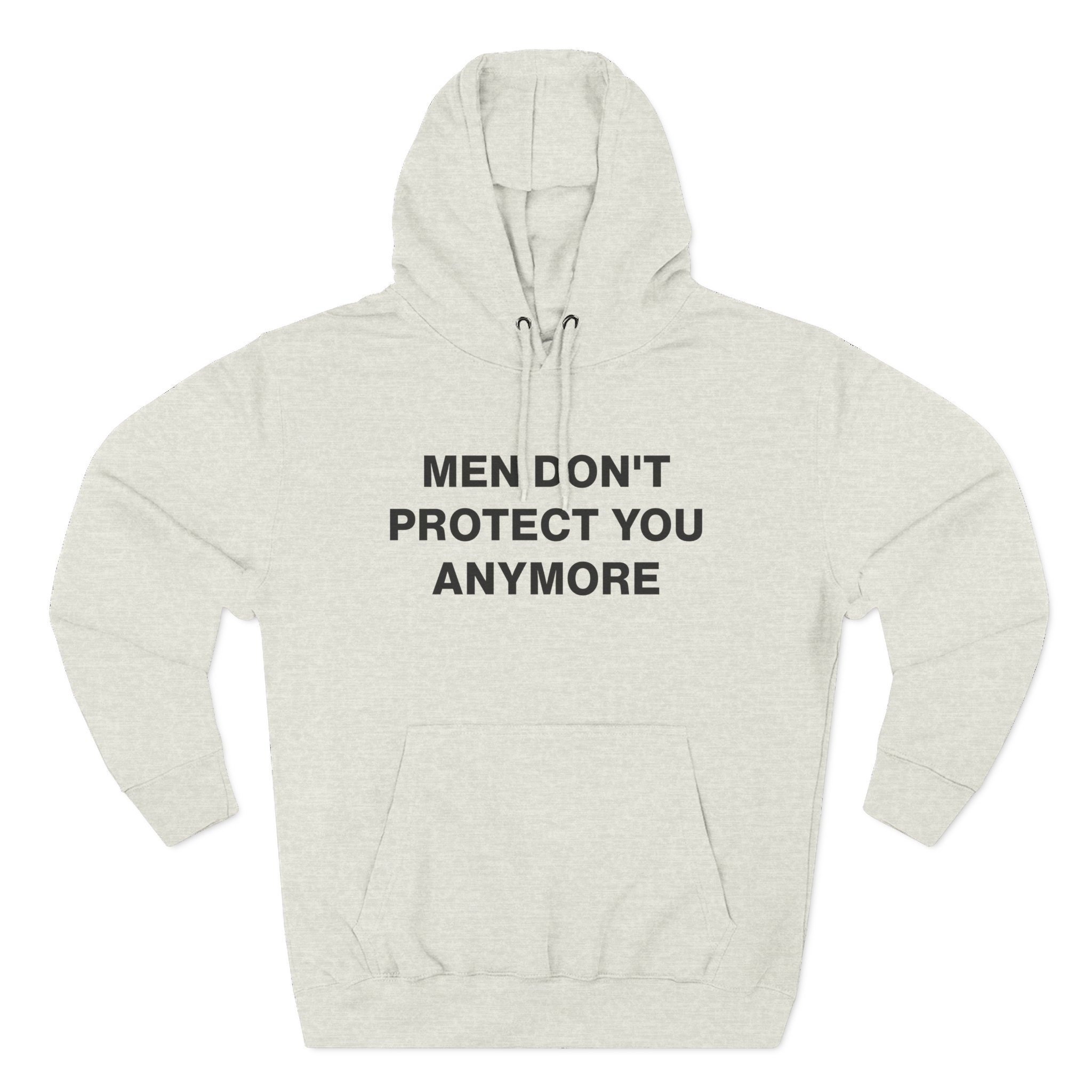 This Jenny Holzer Men Don´t Protect You Anymore charcoal fleece hoodie settles into your rotation like an old friend — soft, weighty, and quietly bold. The three-panel hood and adjustable drawcord frame your face on blustery mornings. A roomy kangaroo pocket keeps hands warm and holds what you need for a quick walk or a late-night errand. The front artwork sits low and distressed, giving the piece a lived-in, slightly rebellious vibe that works whether you’re heading to a gig, a practice, or a coffee run. Built with sturdy double-needle seams and a soft 3-end fleece interior, it wears well over years of wear and washes while keeping its shape.