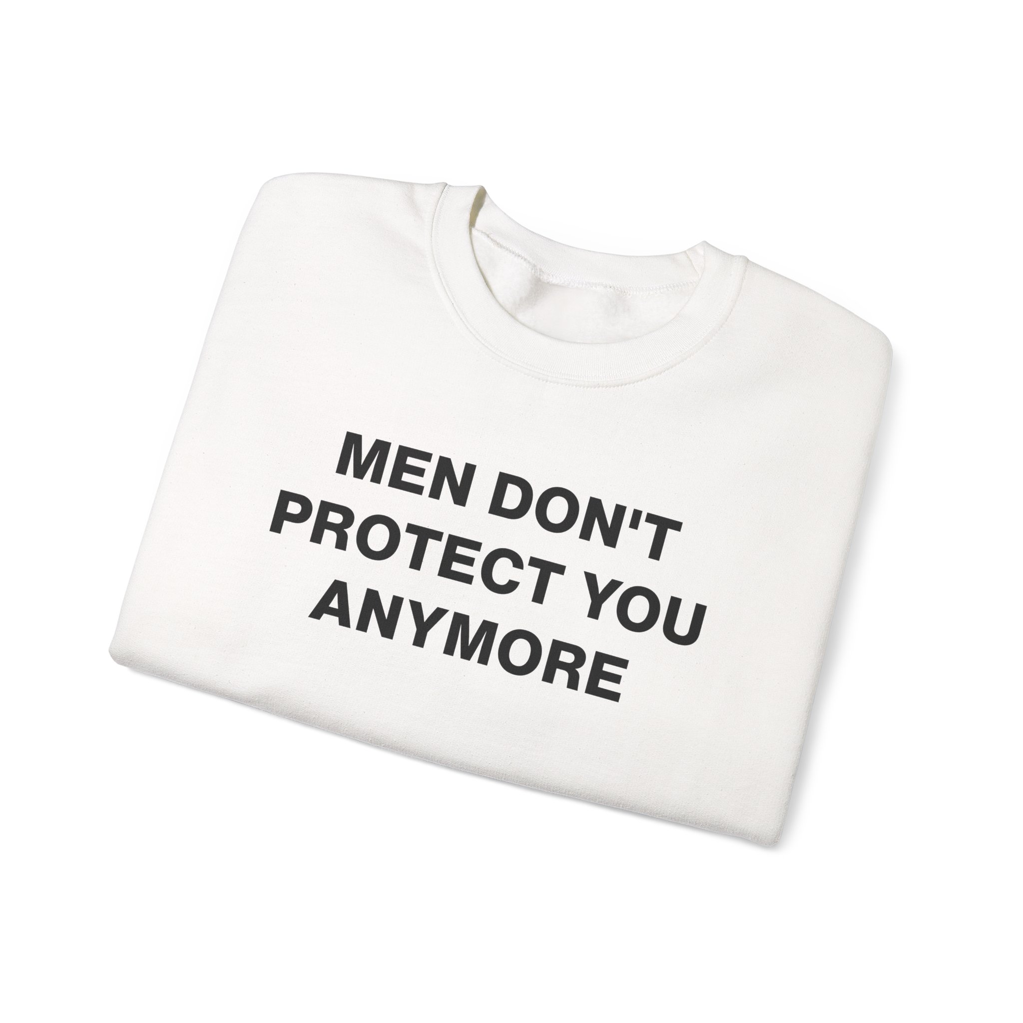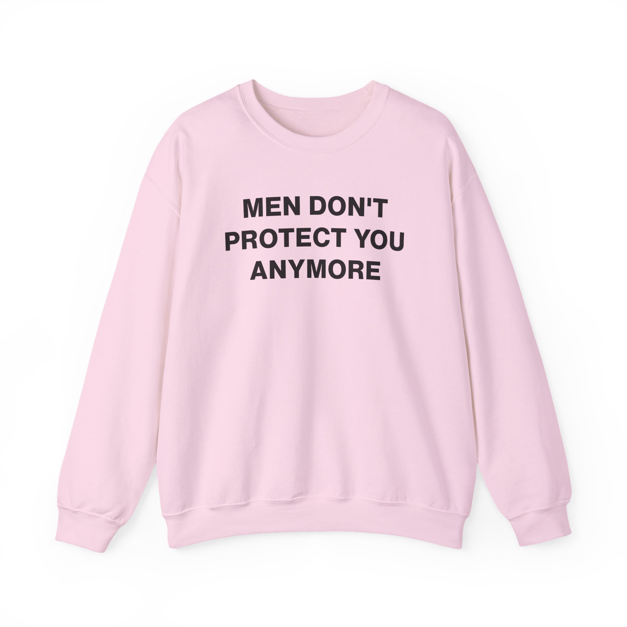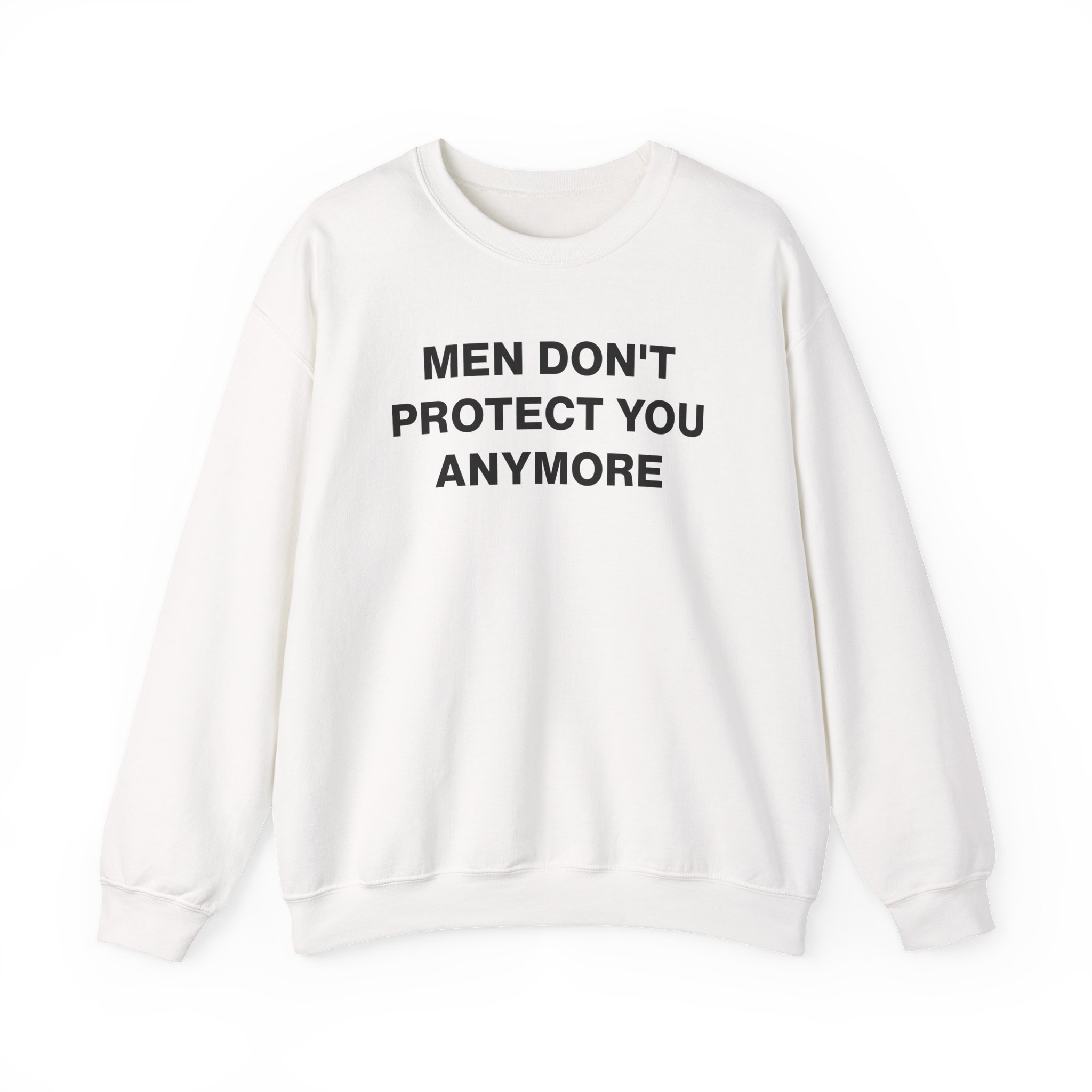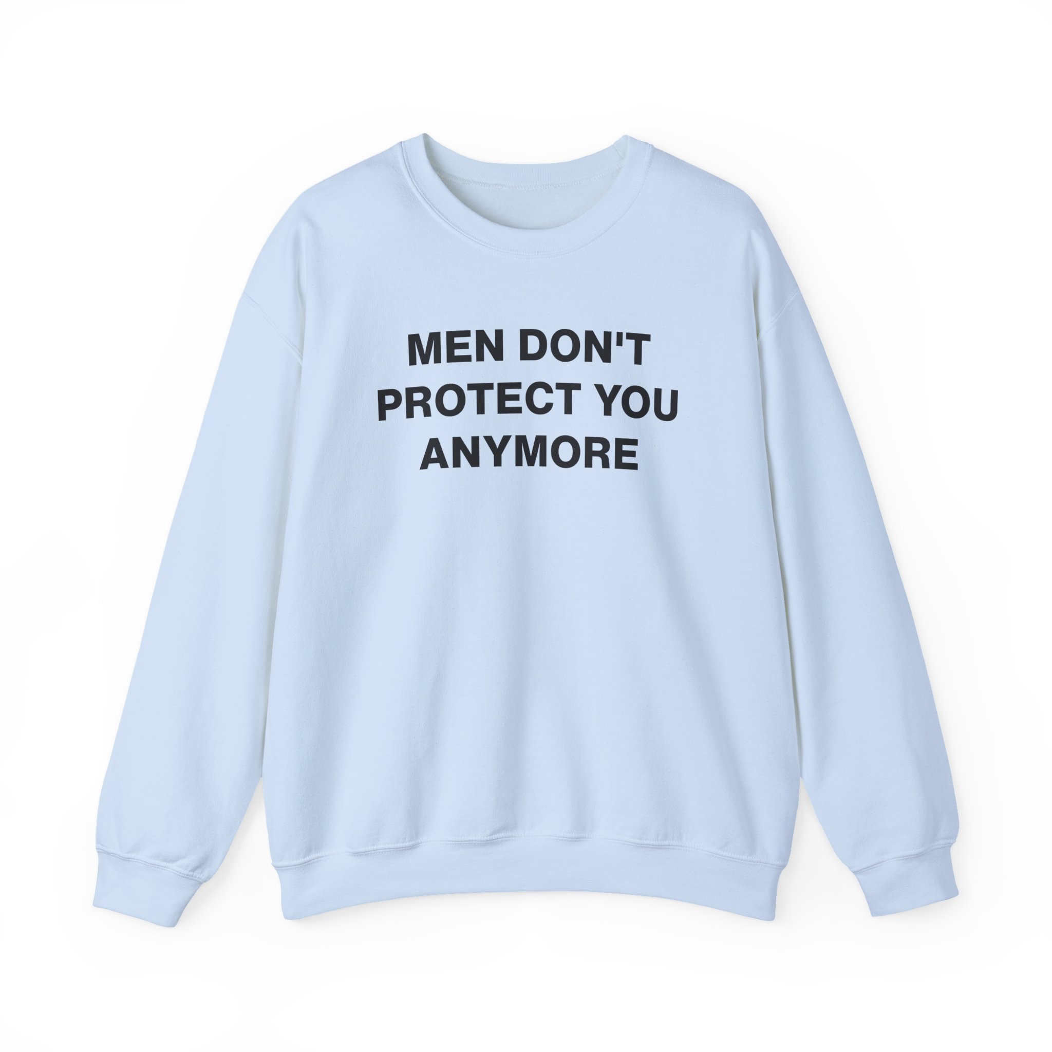 The Gildan 18000 sweatshirt is a Jenny Holzer Men Don´t Protect You Anymore unisex heavy blend crewneck made from a 50/50 cotton-polyester fabric, combining softness with lasting durability. Its smooth surface supports crisp, vibrant prints and embroidery, while the ribbed-knit collar and reinforced cuffs help it keep its shape over time. A seamless body design reduces irritation and adds to overall comfort. Practical, sturdy, and print-friendly, the Gildan 18000 sweatshirt remains a top choice for custom apparel.