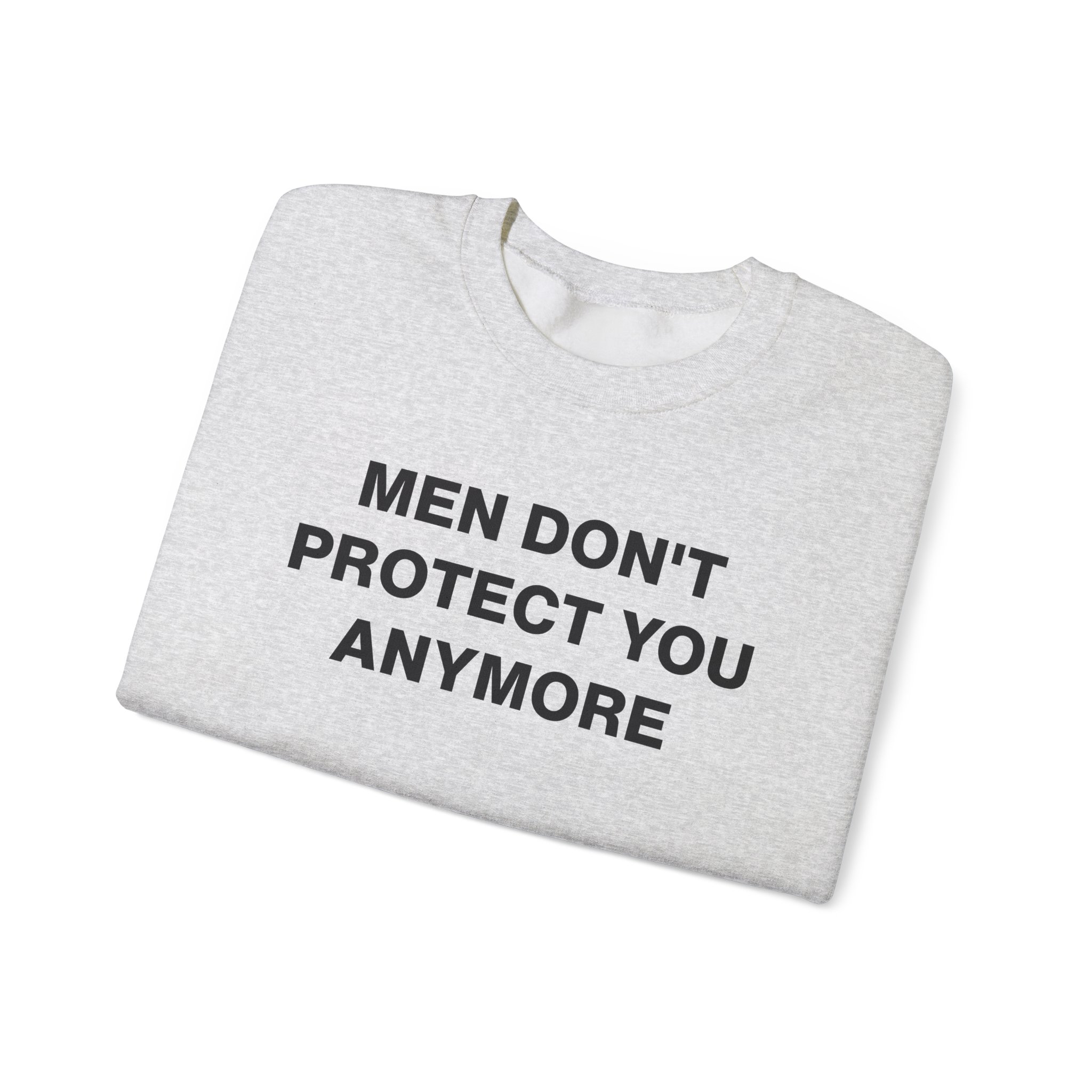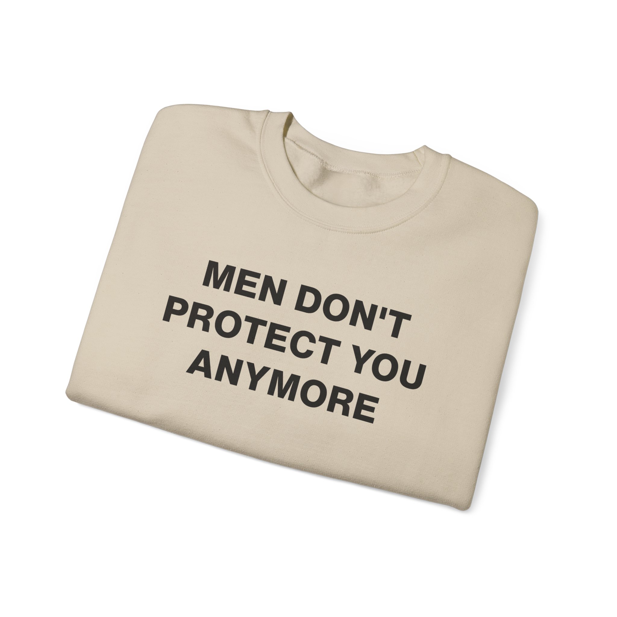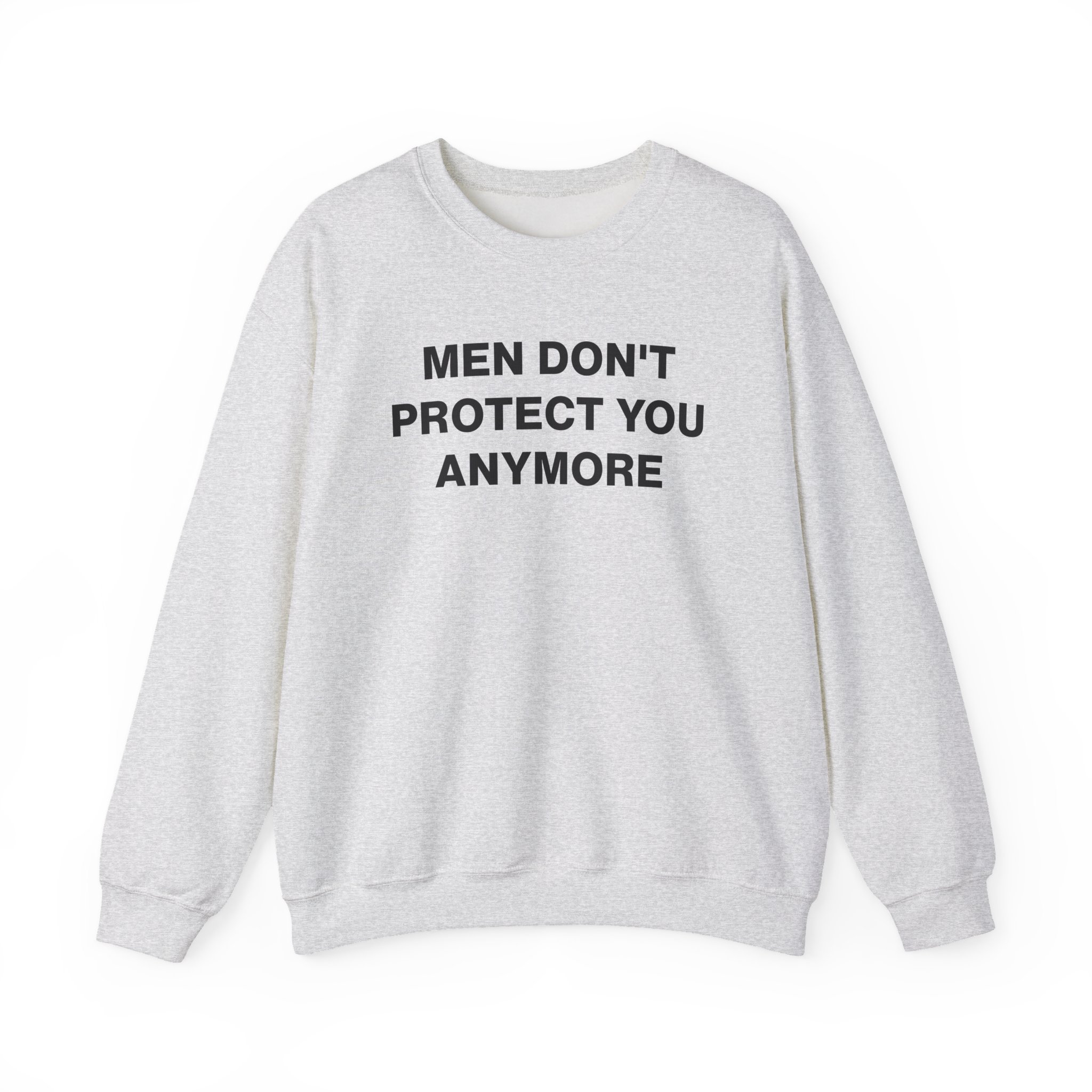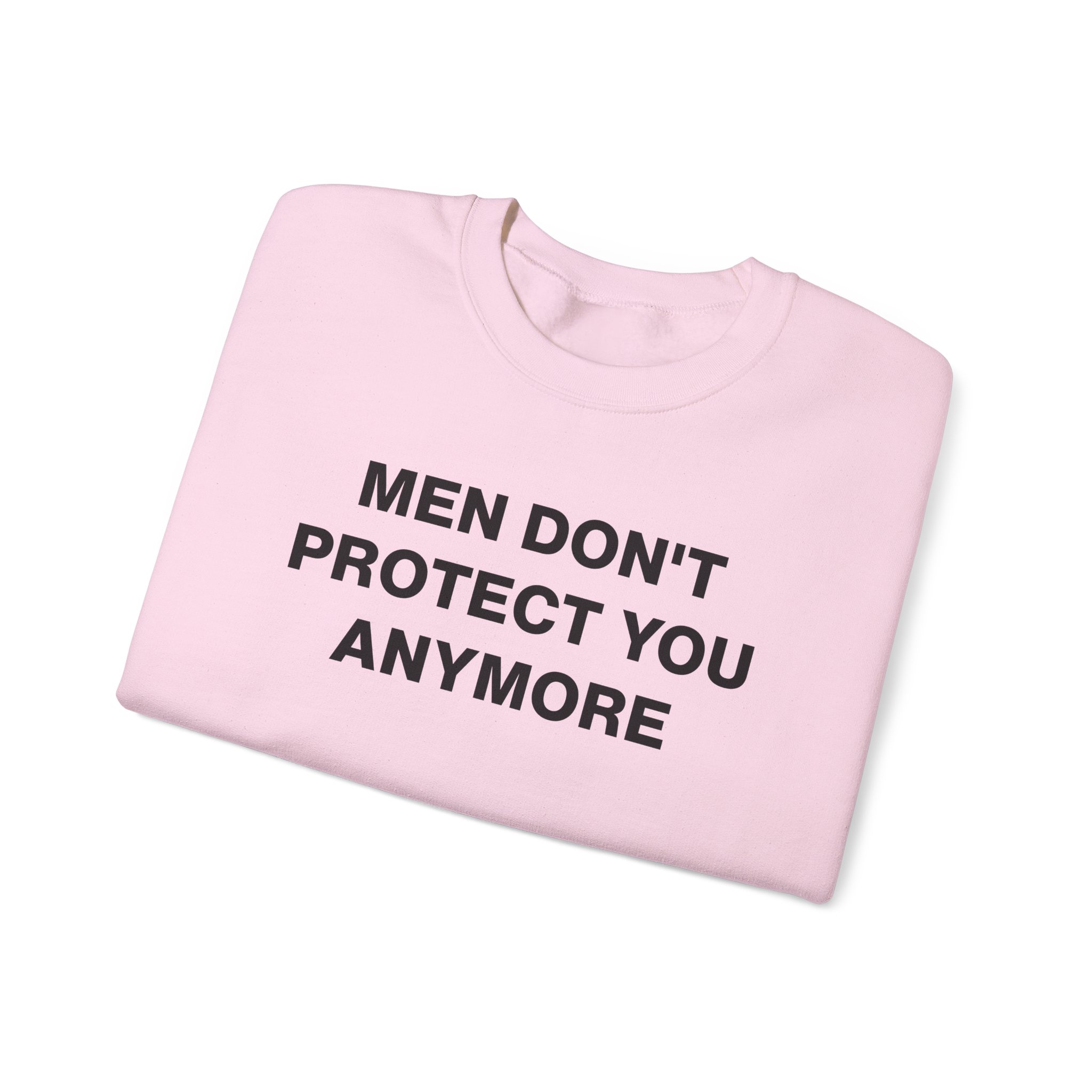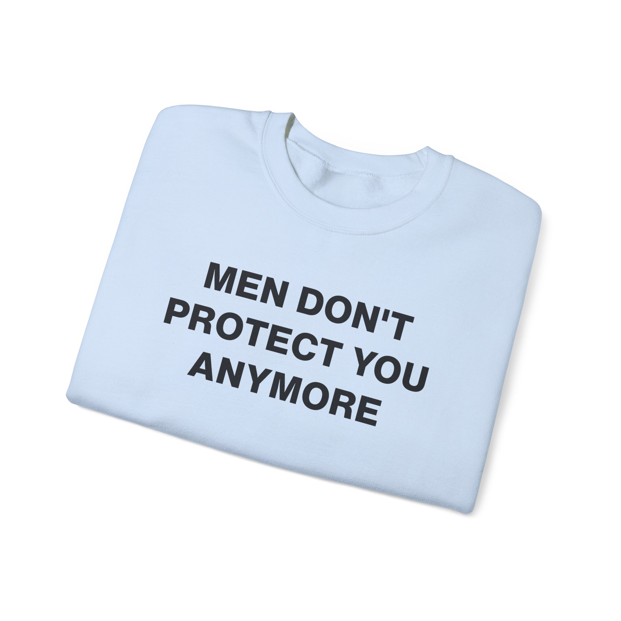 The Gildan 18000 sweatshirt is a Jenny Holzer Men Don´t Protect You Anymore unisex heavy blend crewneck made from a 50/50 cotton-polyester fabric, combining softness with lasting durability. Its smooth surface supports crisp, vibrant prints and embroidery, while the ribbed-knit collar and reinforced cuffs help it keep its shape over time. A seamless body design reduces irritation and adds to overall comfort. Practical, sturdy, and print-friendly, the Gildan 18000 sweatshirt remains a top choice for custom apparel.
