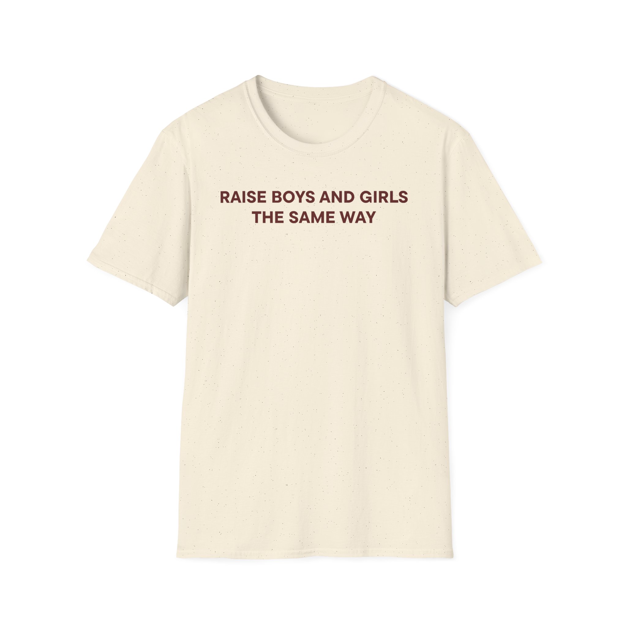 This lightweight, classic-fit tee carries a vintage tour-shirt look with hand-lettered script reading Jenny Holzer Raise the Same Way Unisex Softstyle T-Shirt Soft ring-spun cotton and smooth printing make the graphic sit cleanly on the chest. Wear it to backyard shows, late-night drives, or when you want to bring a bit of road-worn Americana to a simple outfit. The crew neckline and tubular knit keep the silhouette neat, while shoulder tape and a ribbed collar hold the shape after many washes. It’s breathable, low-profile, and made to age with you—subtle black flecks appear on the Natural color for a lived-in feel.