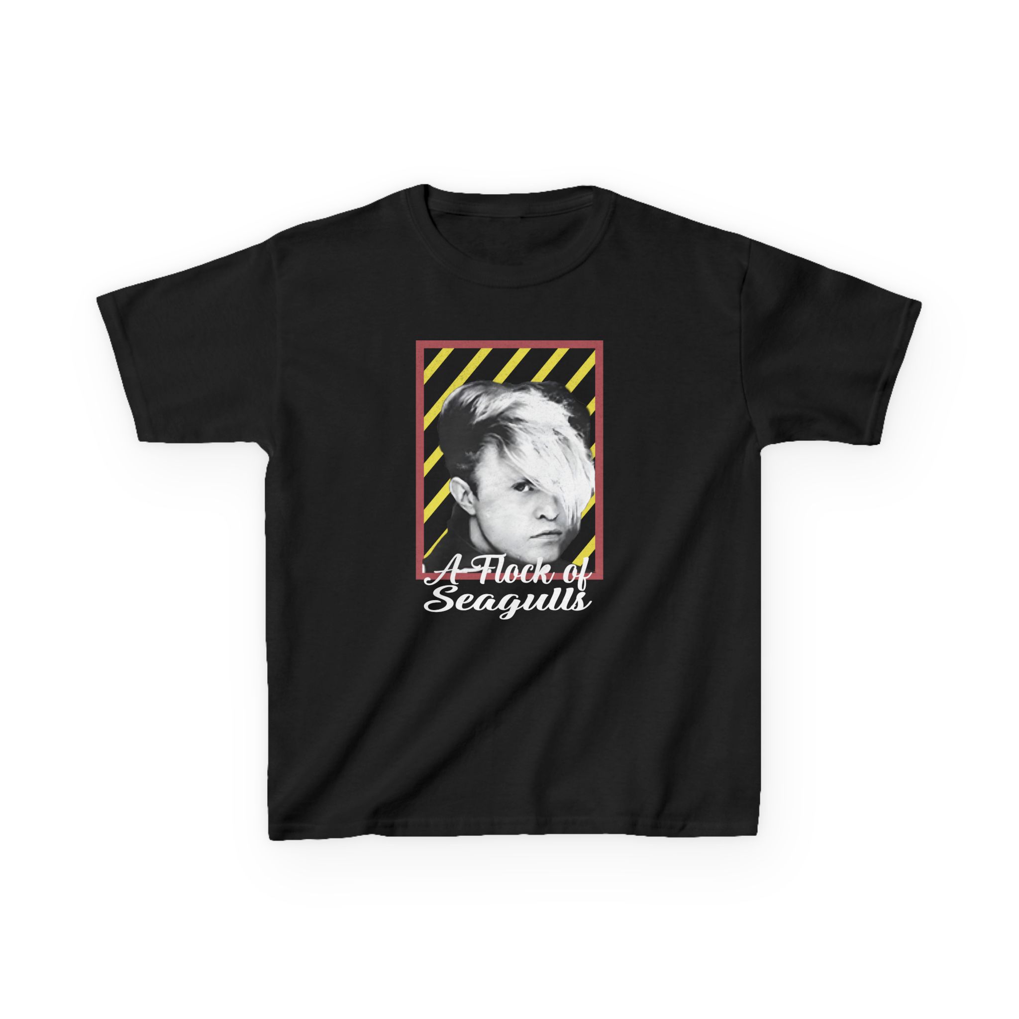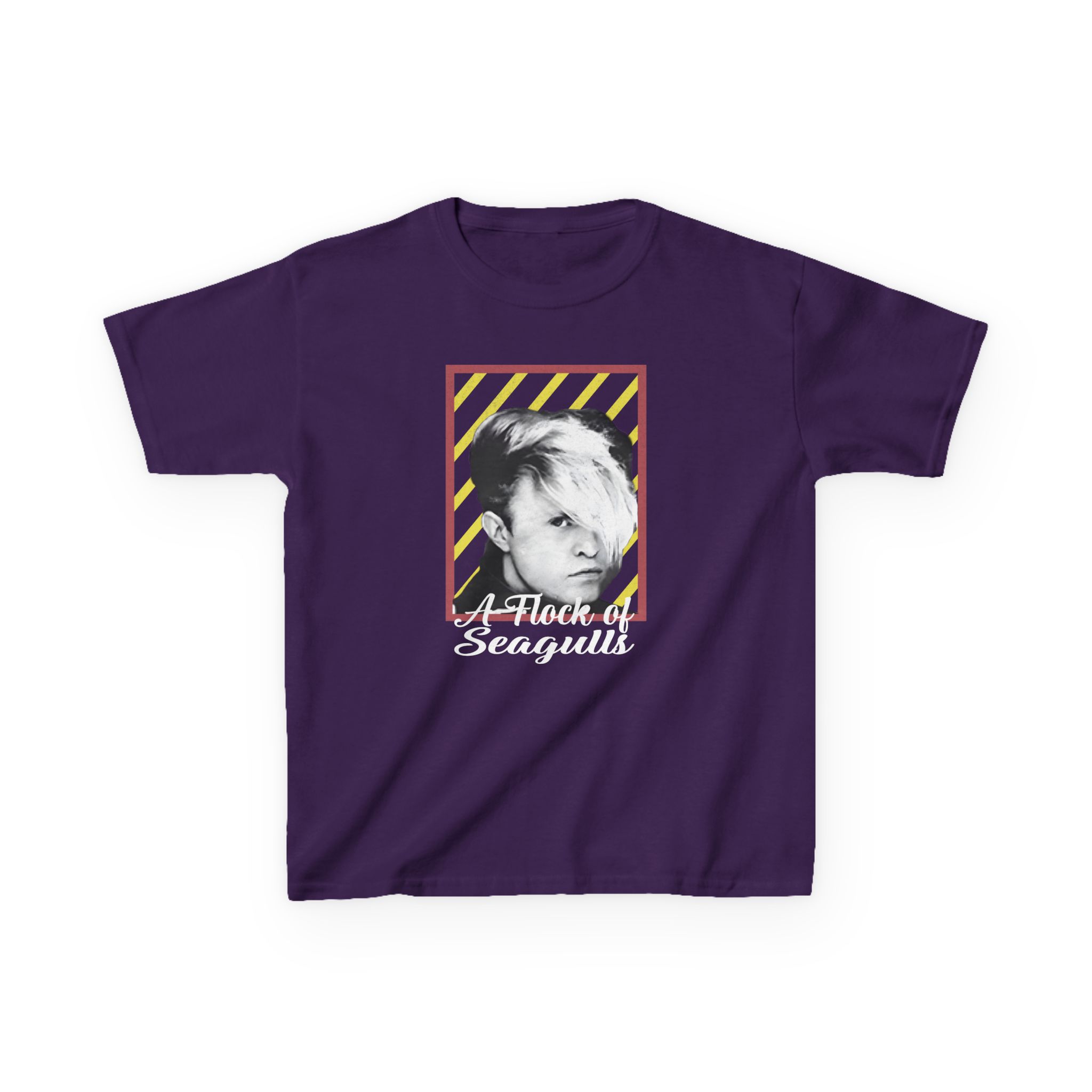 The kids A Flock of Seagulls Neon heavy cotton tee is perfect for everyday use. The fabric is 100% cotton for solid colors. Polyester is included for heather-color variants. These fabrics are prime materials for printing. The shoulders have twill tape for improved durability. The collar is curl resistant due to ribbed knitting. There are no seams along the sides.