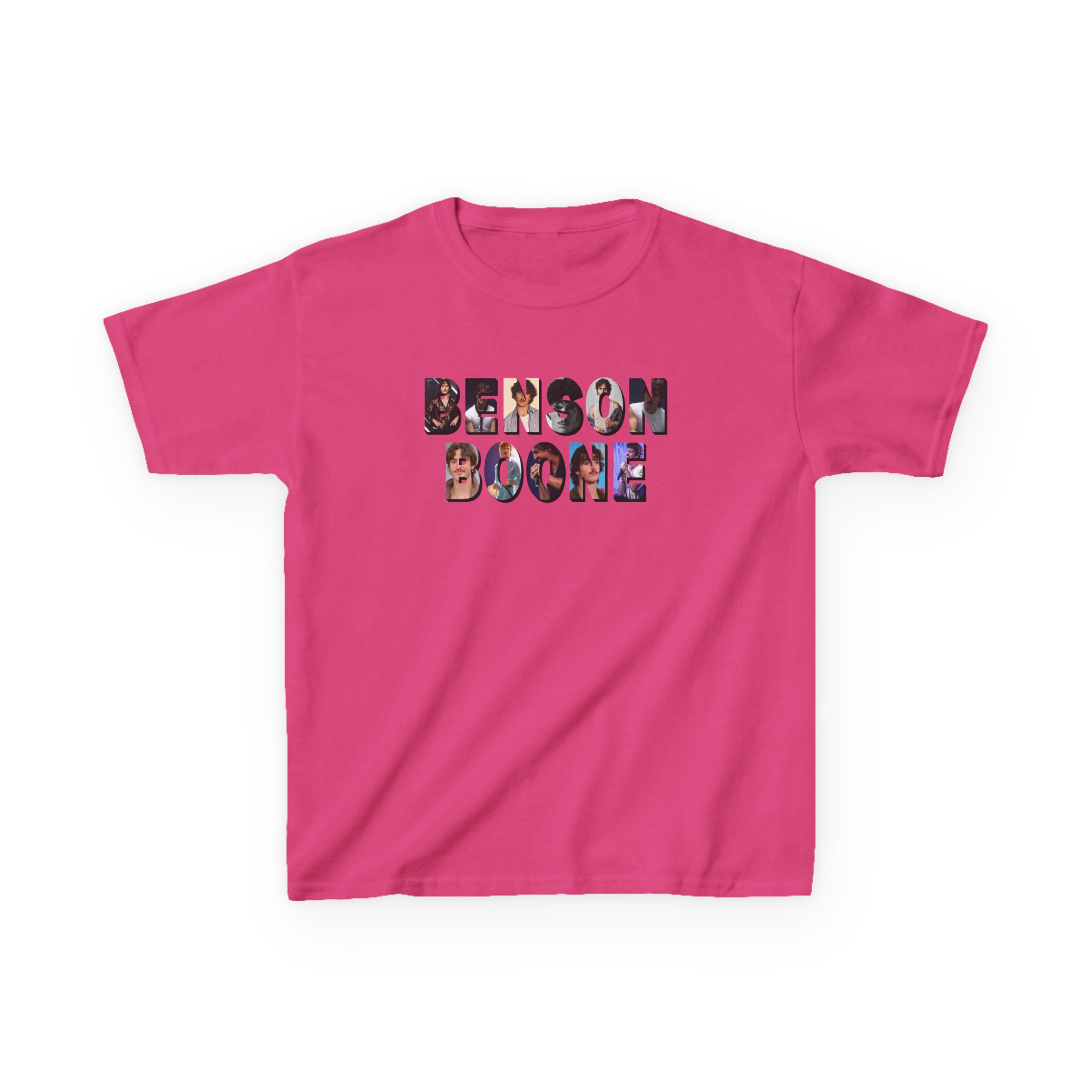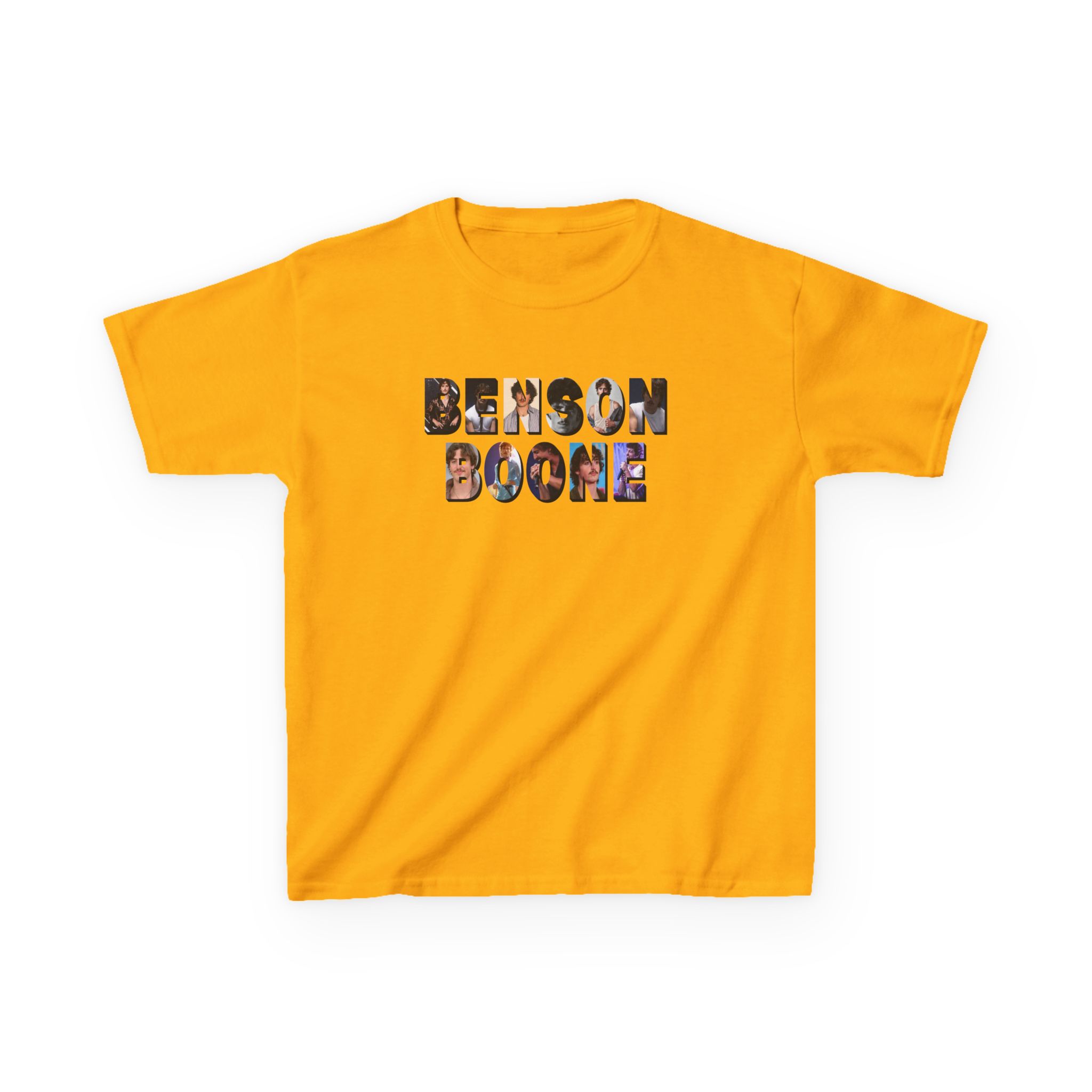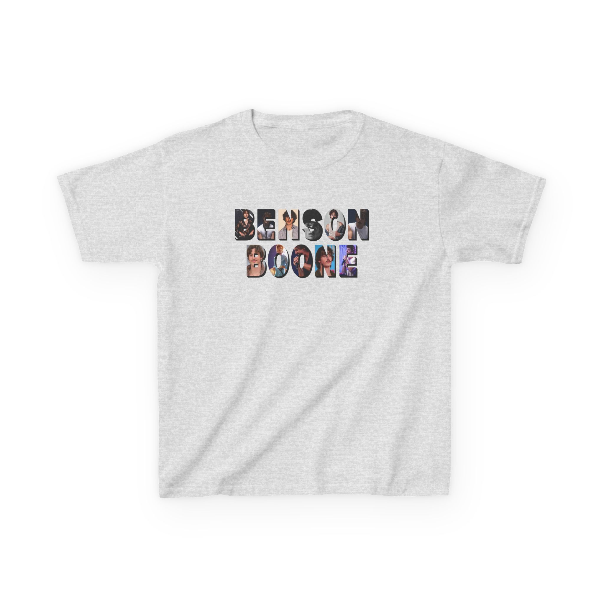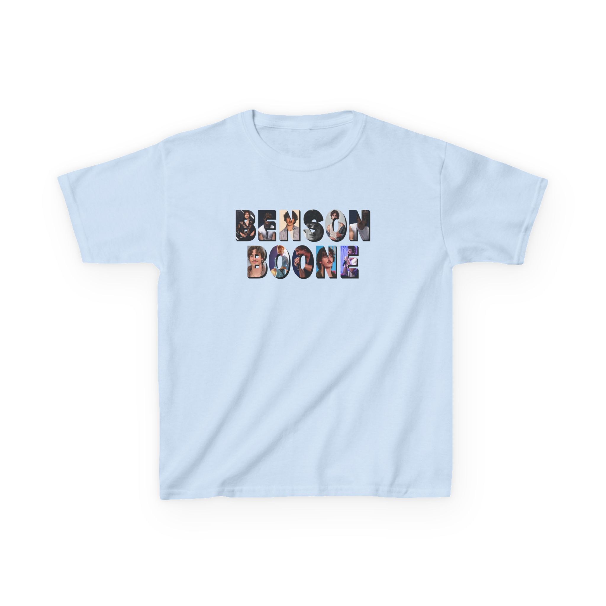 The kids Benson Boone heavy cotton tee is perfect for everyday use. The fabric is 100% cotton for solid colors. Polyester is included for heather-color variants. These fabrics are prime materials for printing. The shoulders have twill tape for improved durability. The collar is curl resistant due to ribbed knitting. There are no seams along the sides.