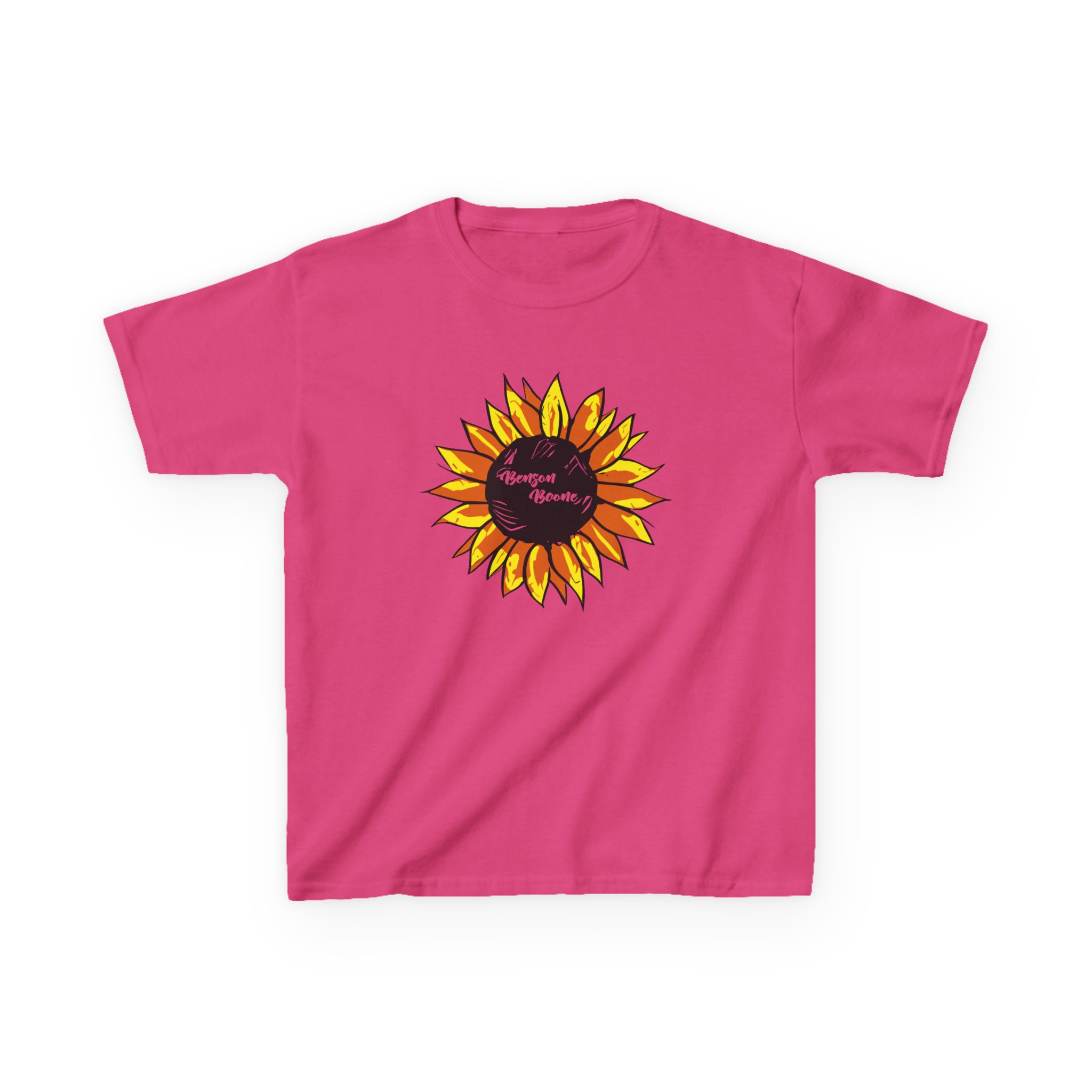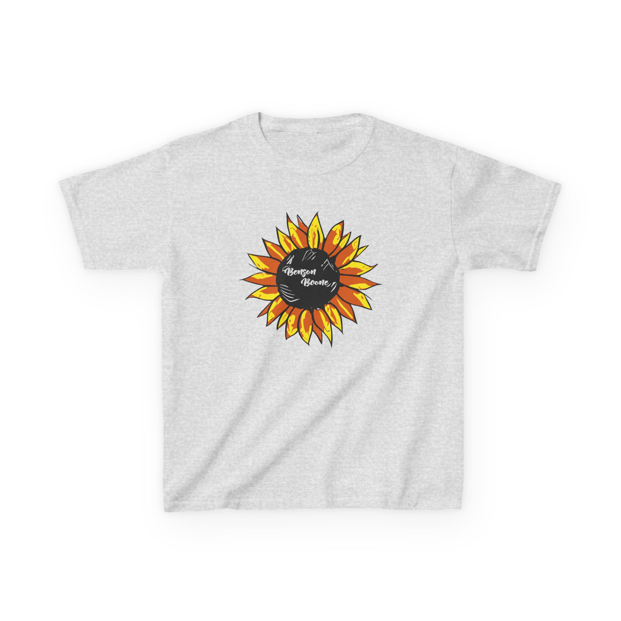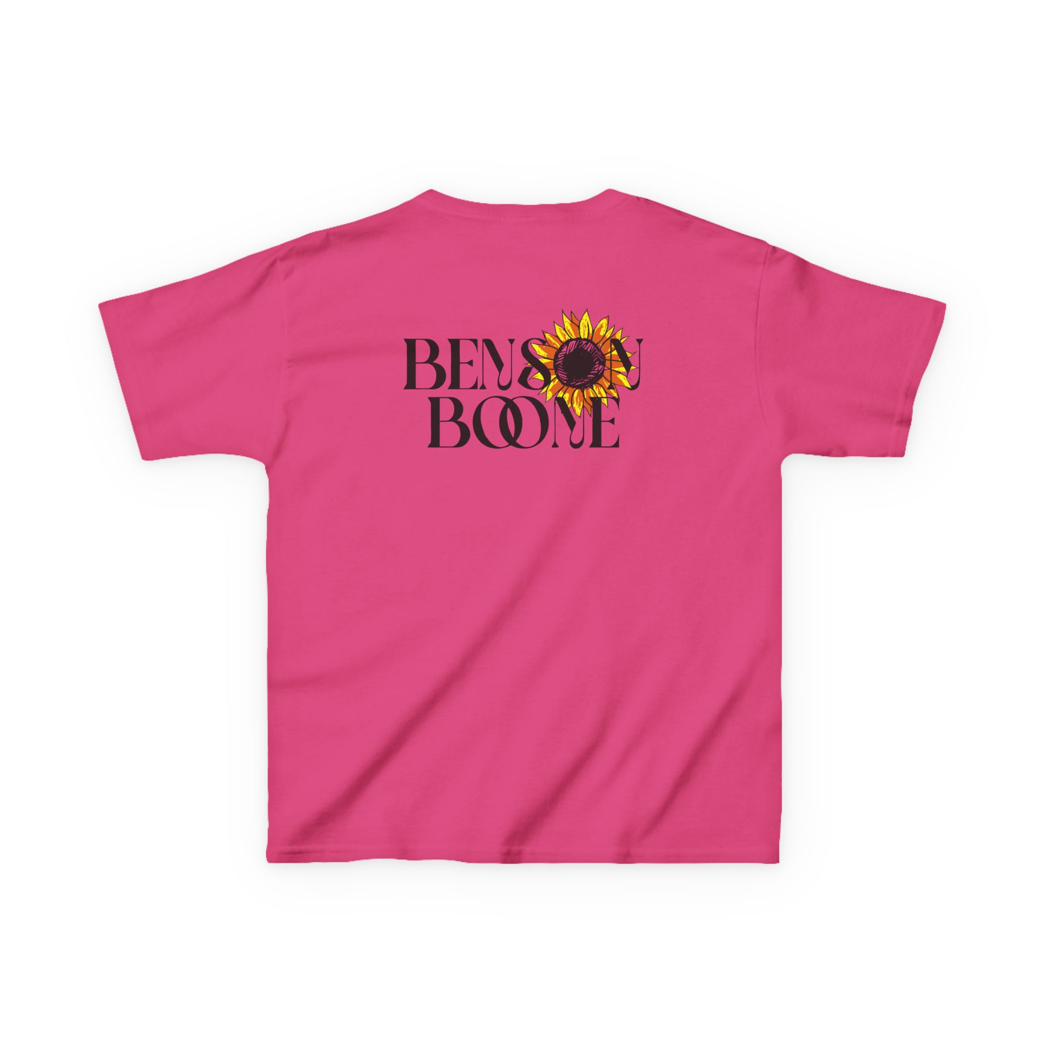 The kids Benson Boone Sunflower heavy cotton tee is perfect for everyday use. The fabric is 100% cotton for solid colors. Polyester is included for heather-color variants. These fabrics are prime materials for printing. The shoulders have twill tape for improved durability. The collar is curl resistant due to ribbed knitting. There are no seams along the sides.