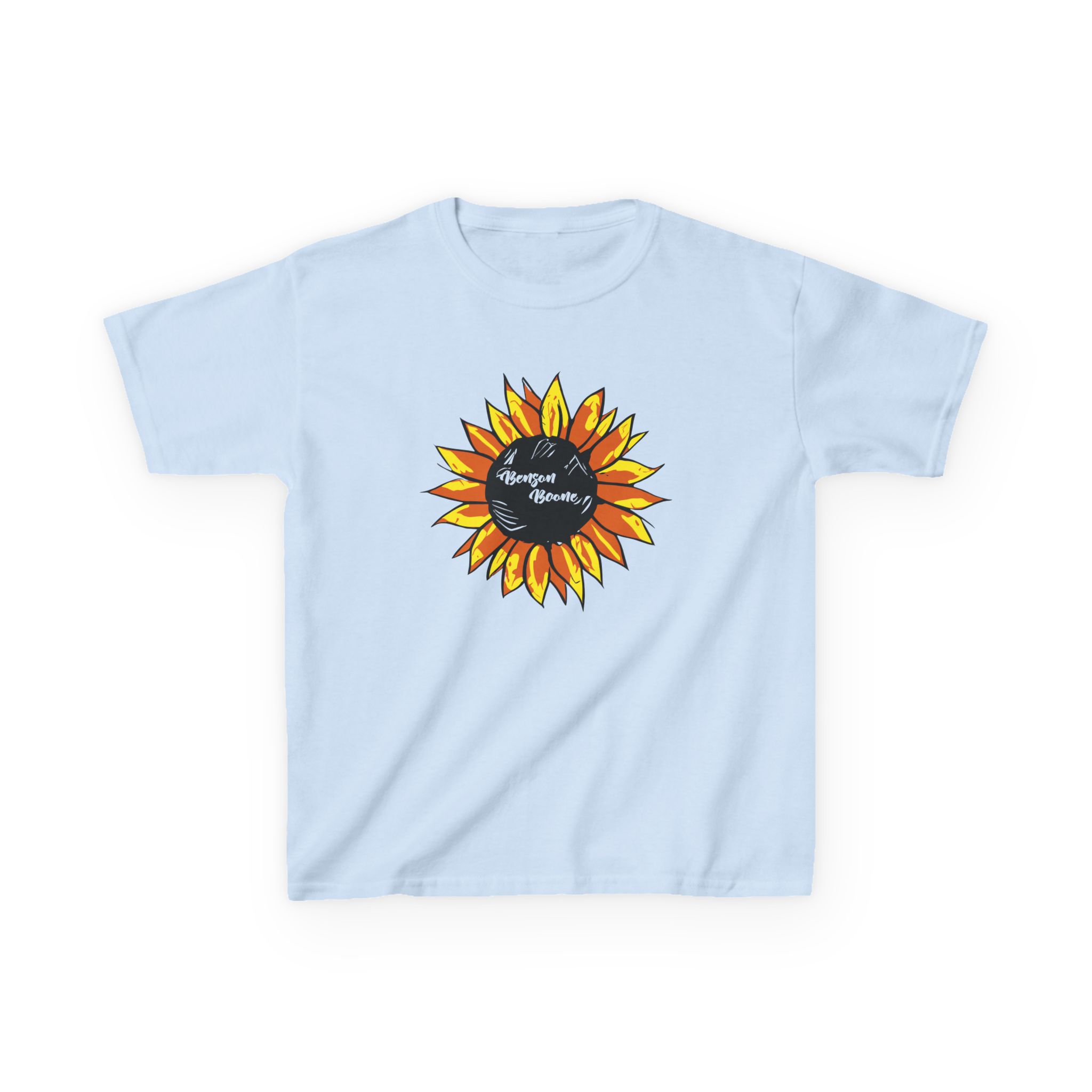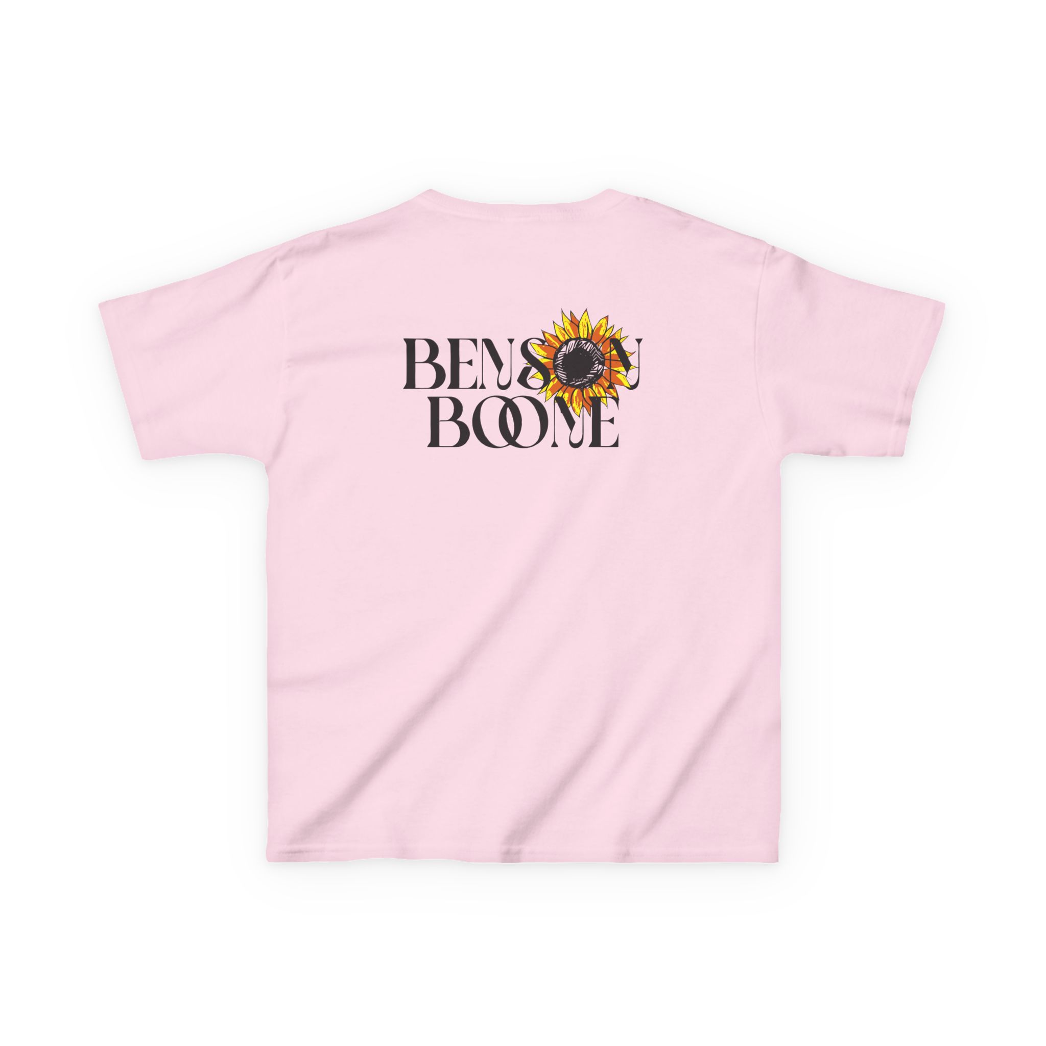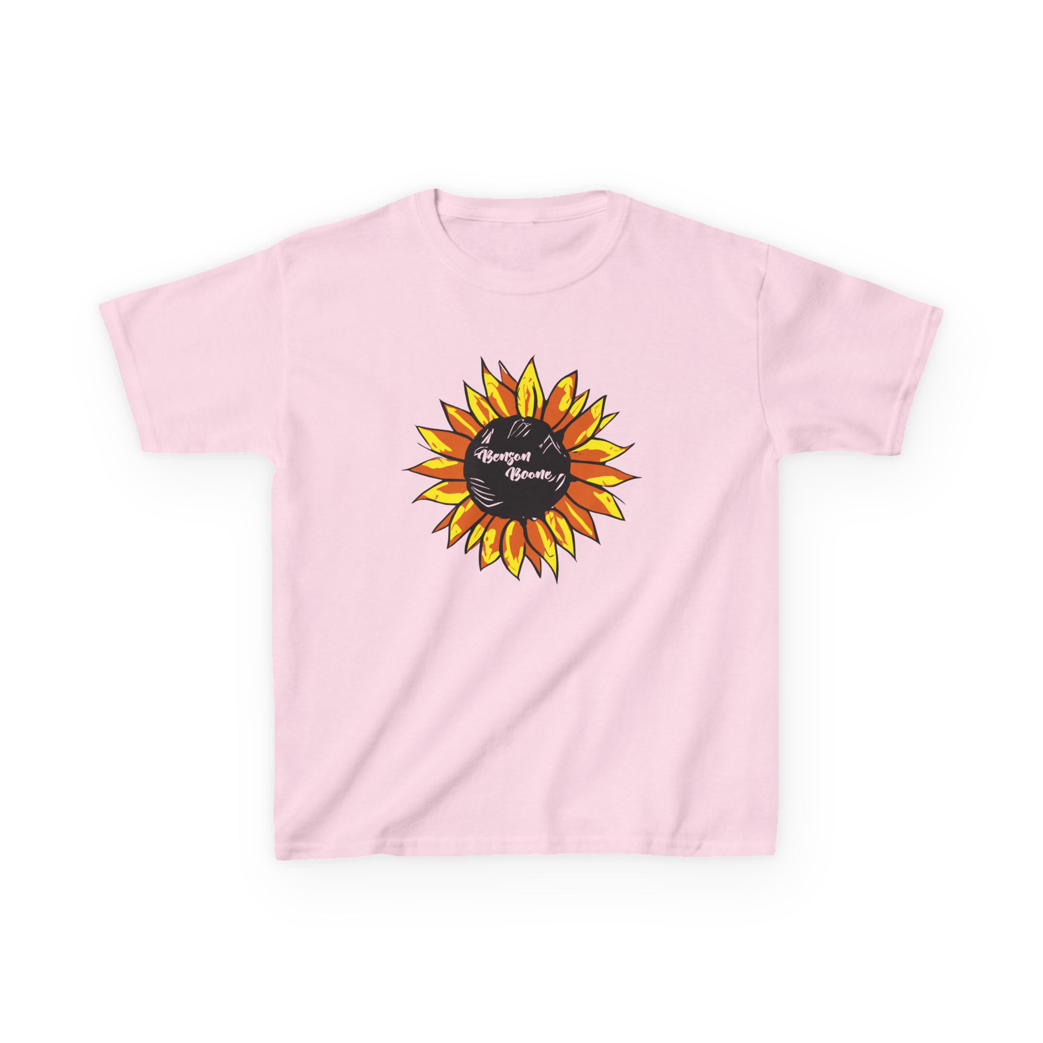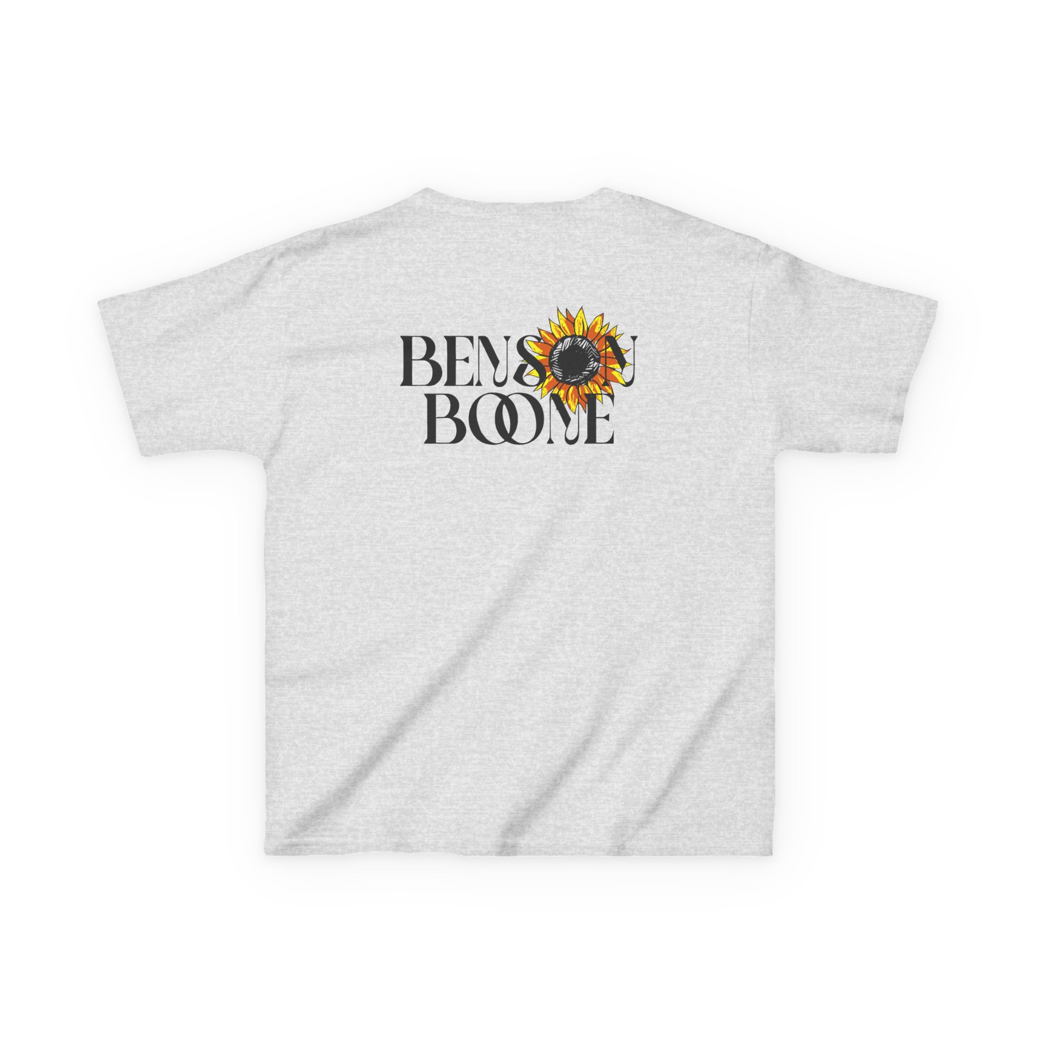 The kids Benson Boone Sunflower heavy cotton tee is perfect for everyday use. The fabric is 100% cotton for solid colors. Polyester is included for heather-color variants. These fabrics are prime materials for printing. The shoulders have twill tape for improved durability. The collar is curl resistant due to ribbed knitting. There are no seams along the sides.